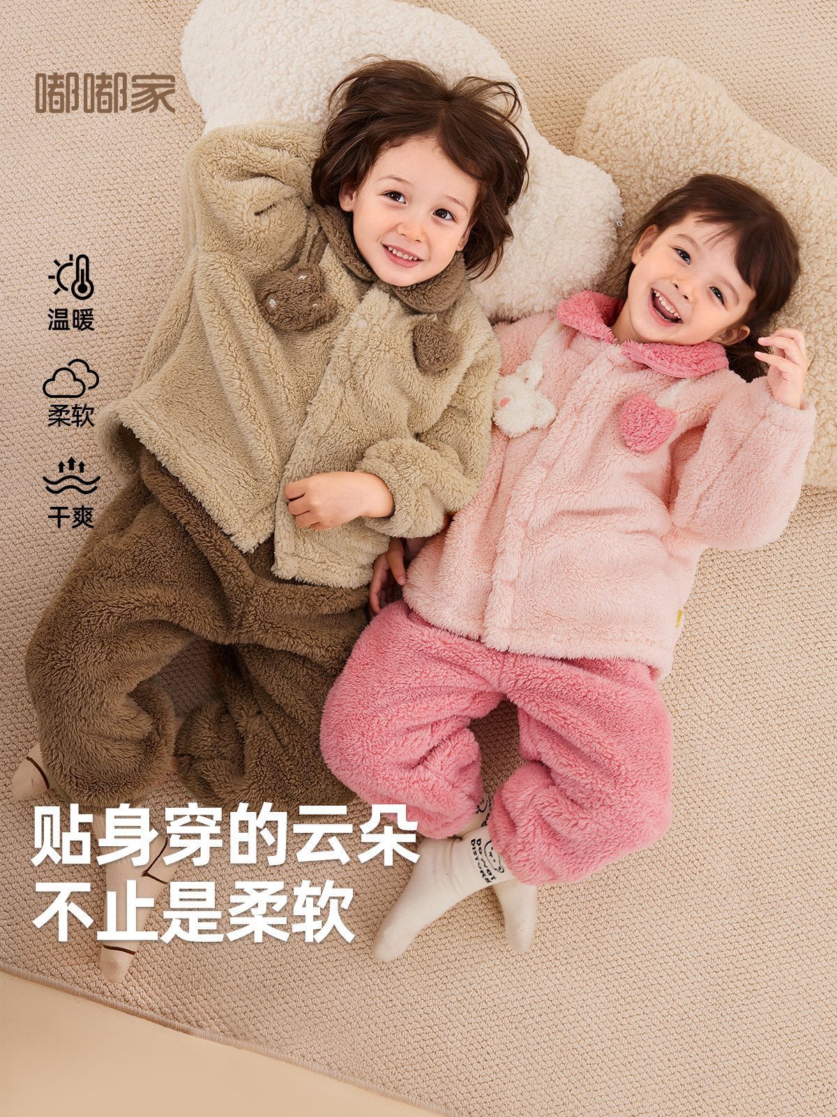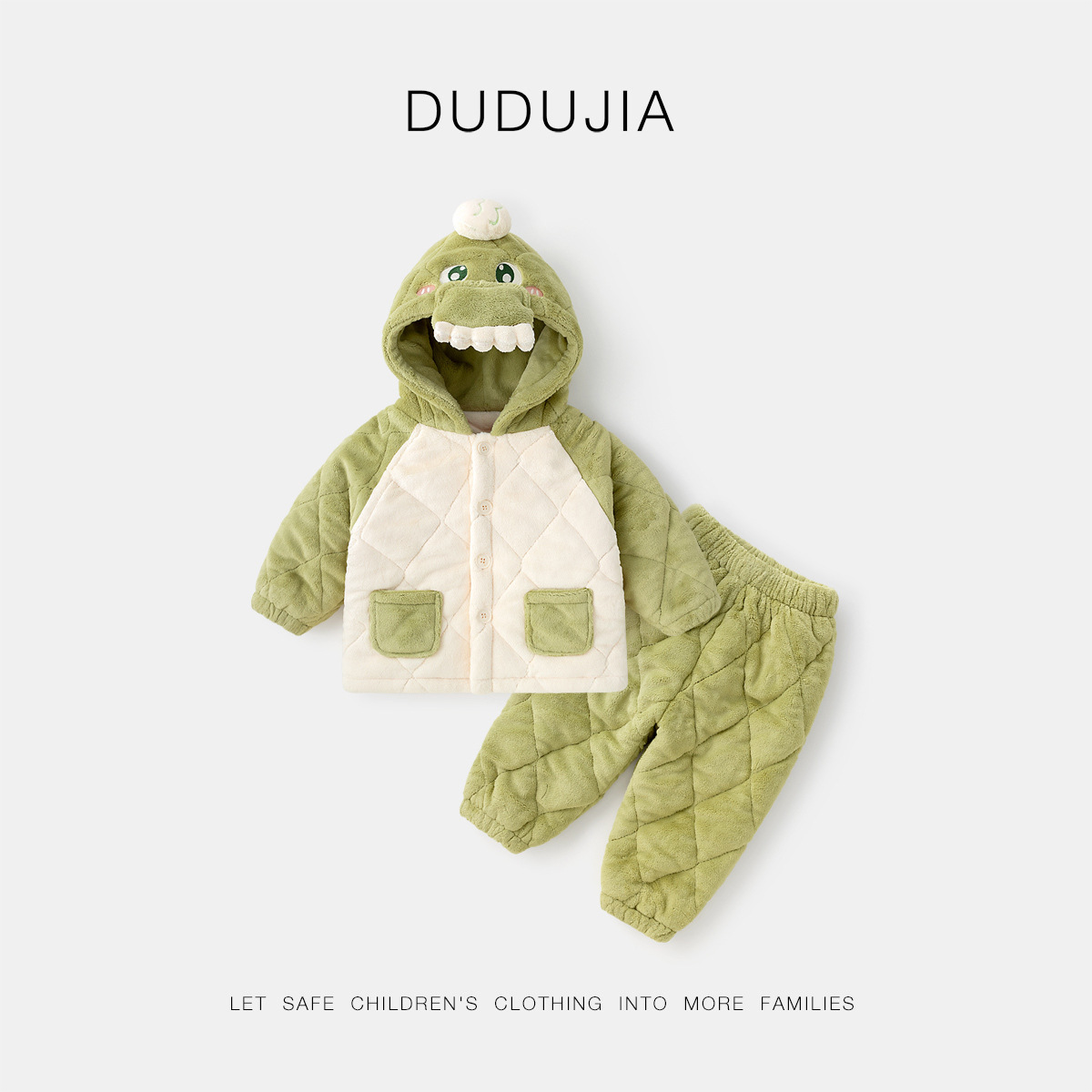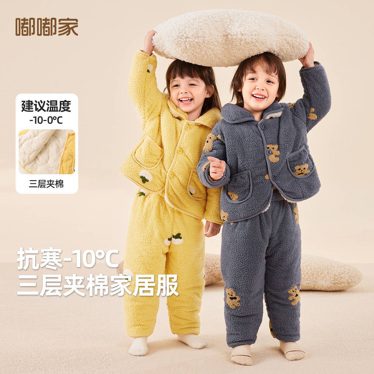 [두꺼운 홈 의류 컬렉션 2] 낙서 소년 두꺼운 파자마 겨울 여자 홈 옷 투피스 아동복