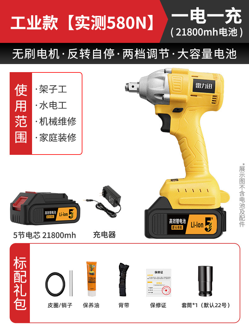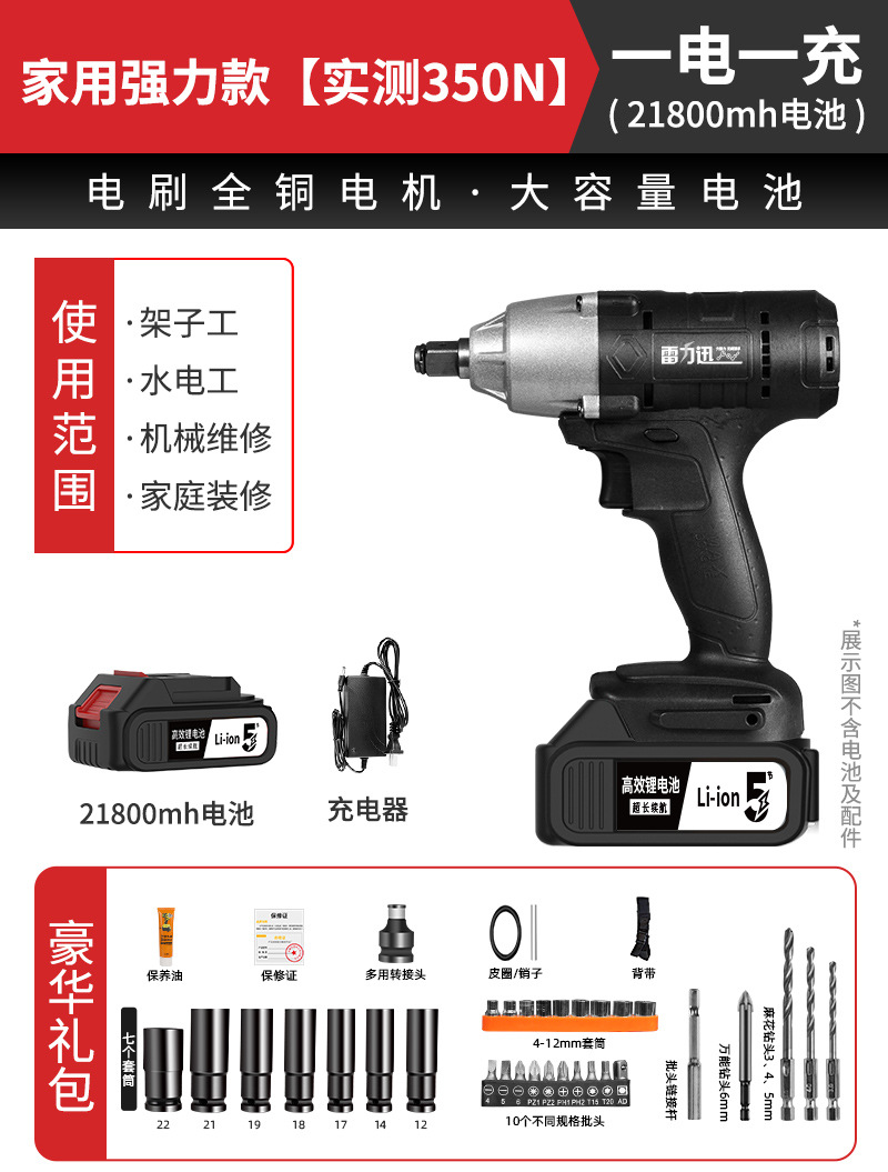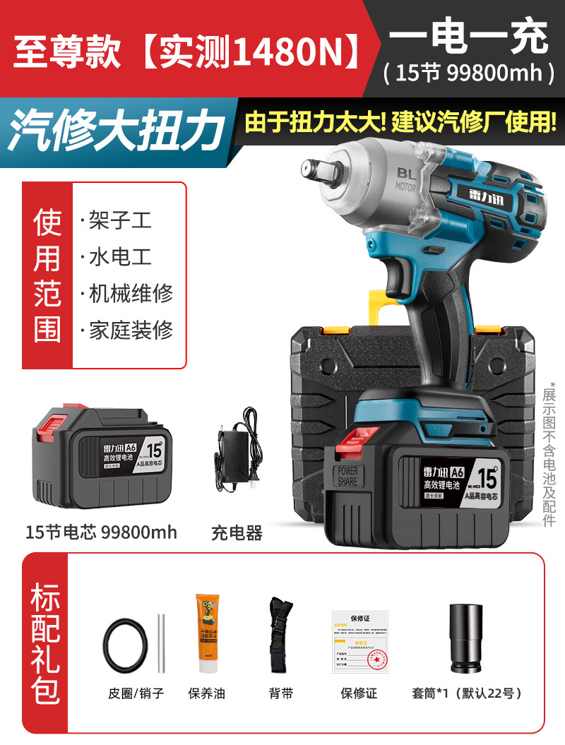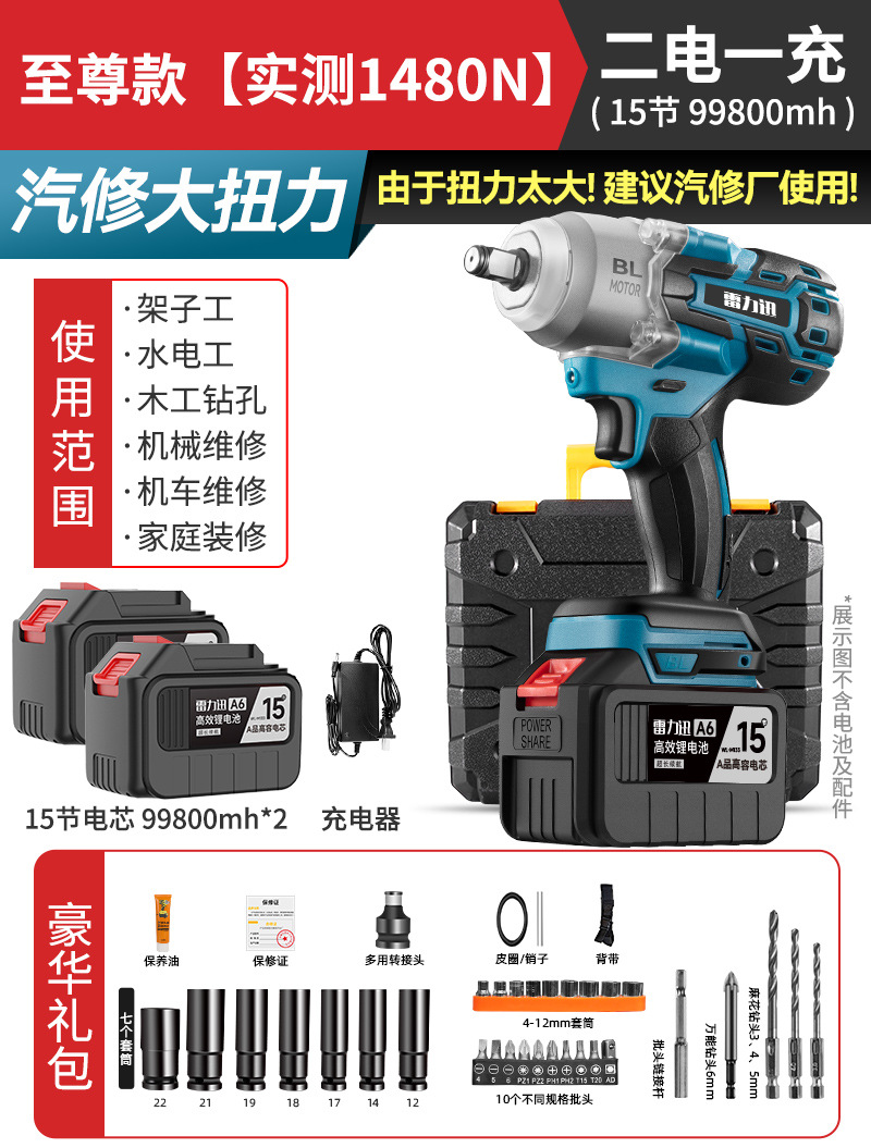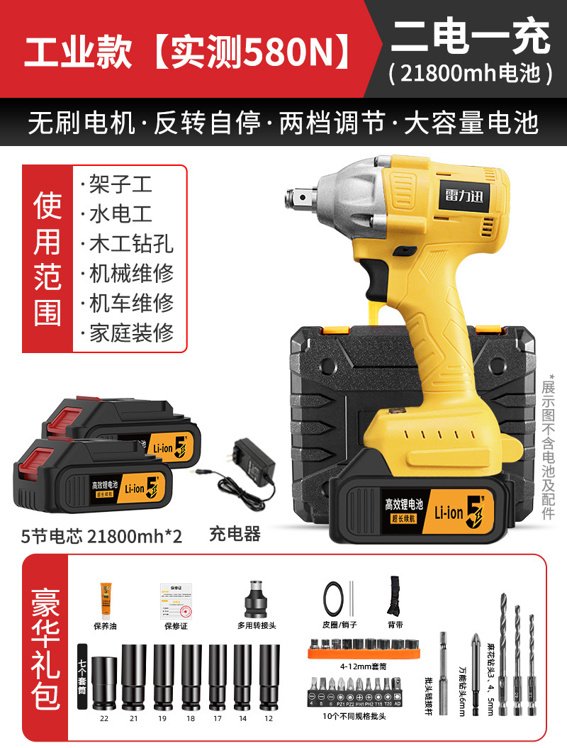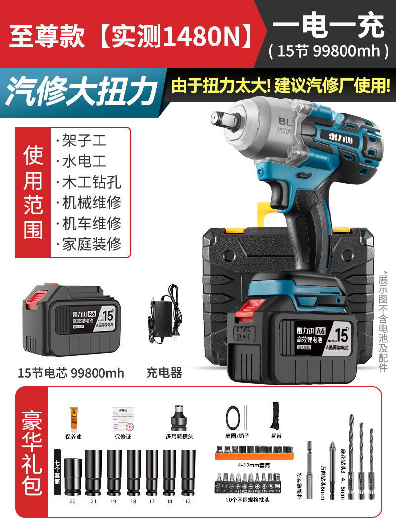 Lei Li Xun 브러시리스 전기 렌치 대형 토크 리튬 배터리 공기 총 대피소 충격 충전 렌치 강력한 전기 렌치