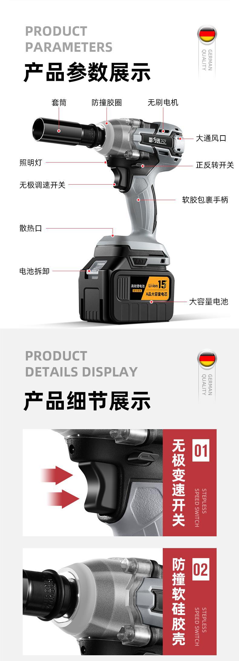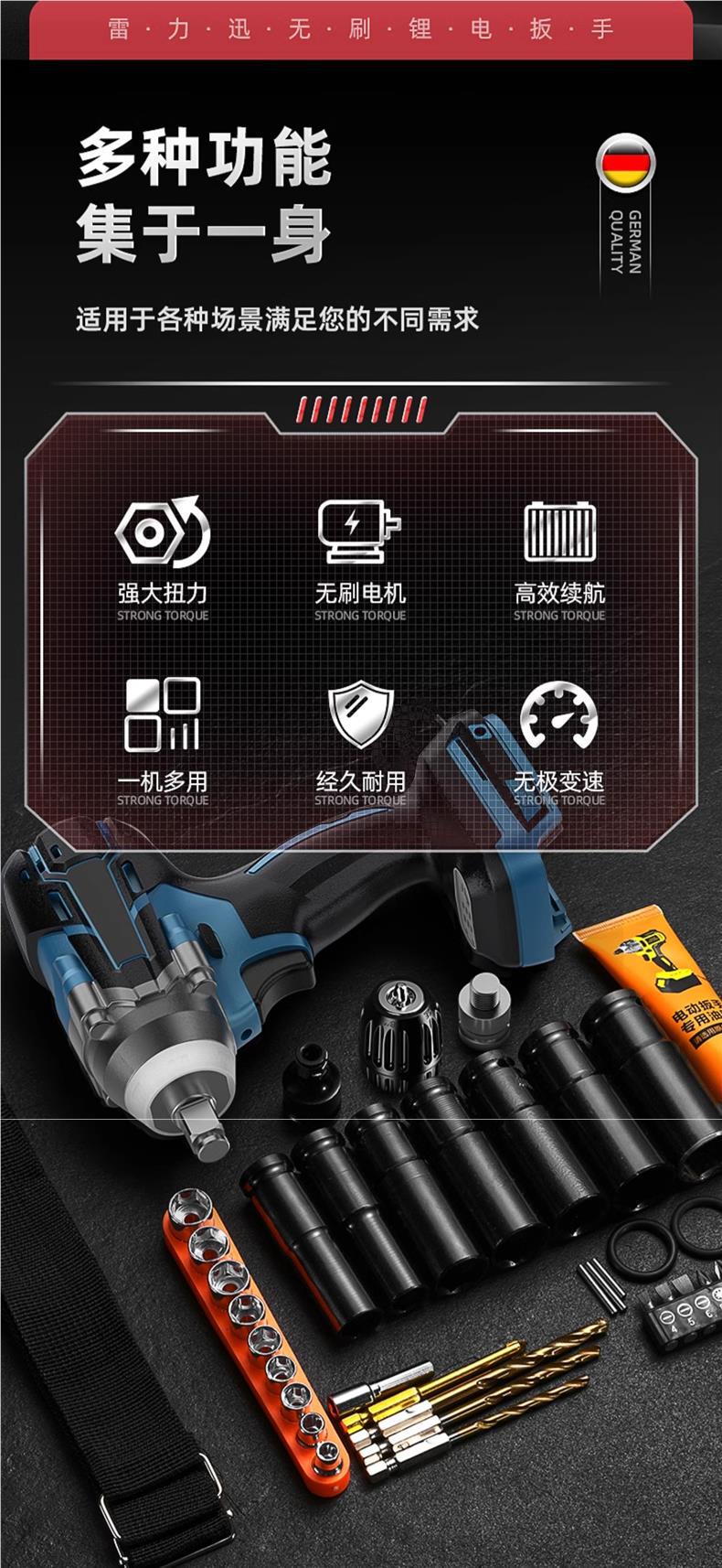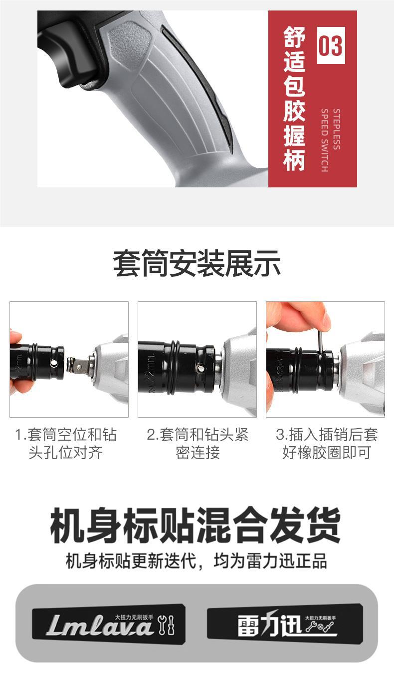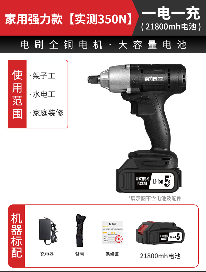 Lei Li Xun 브러시리스 전기 렌치 대형 토크 리튬 배터리 공기 총 대피소 충격 충전 렌치 강력한 전기 렌치
