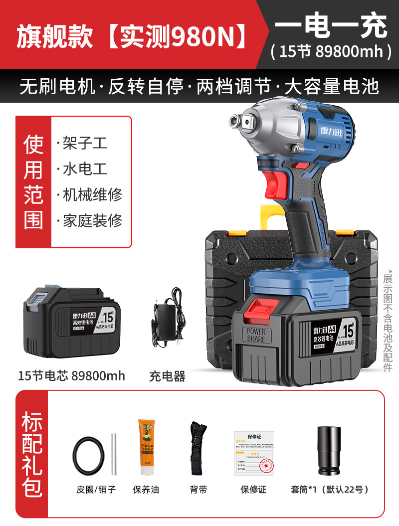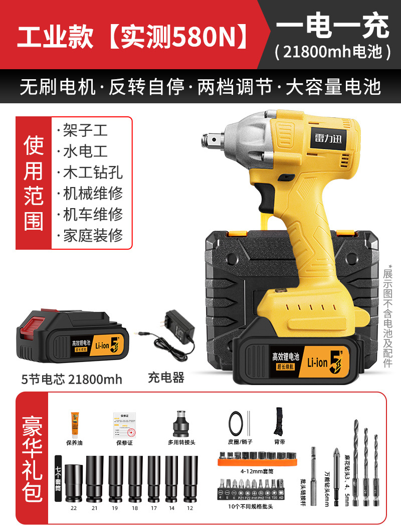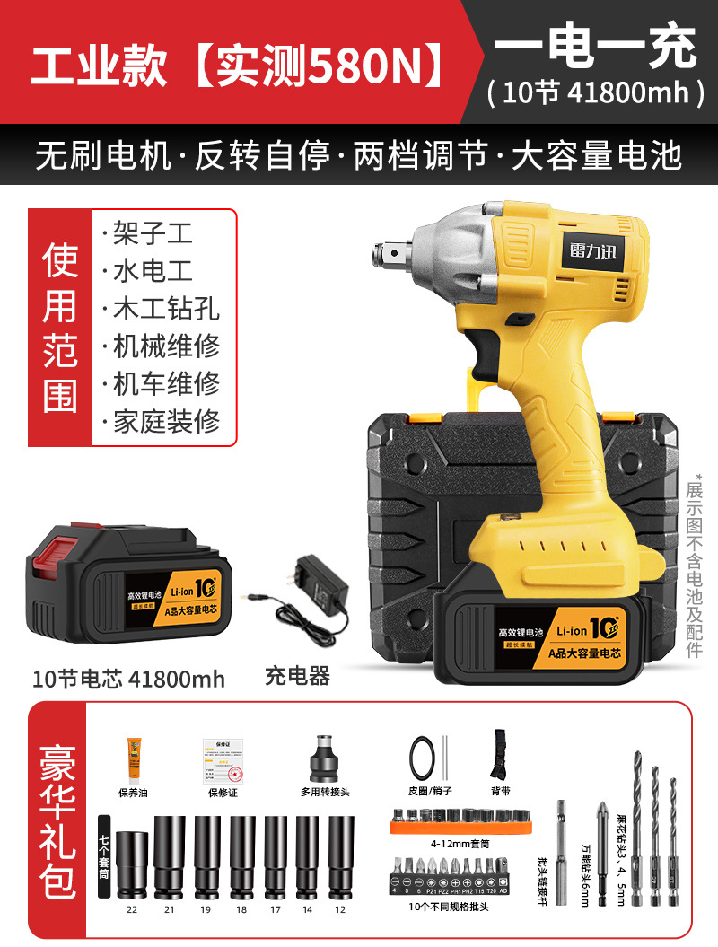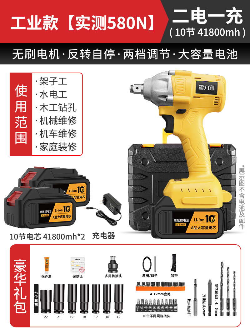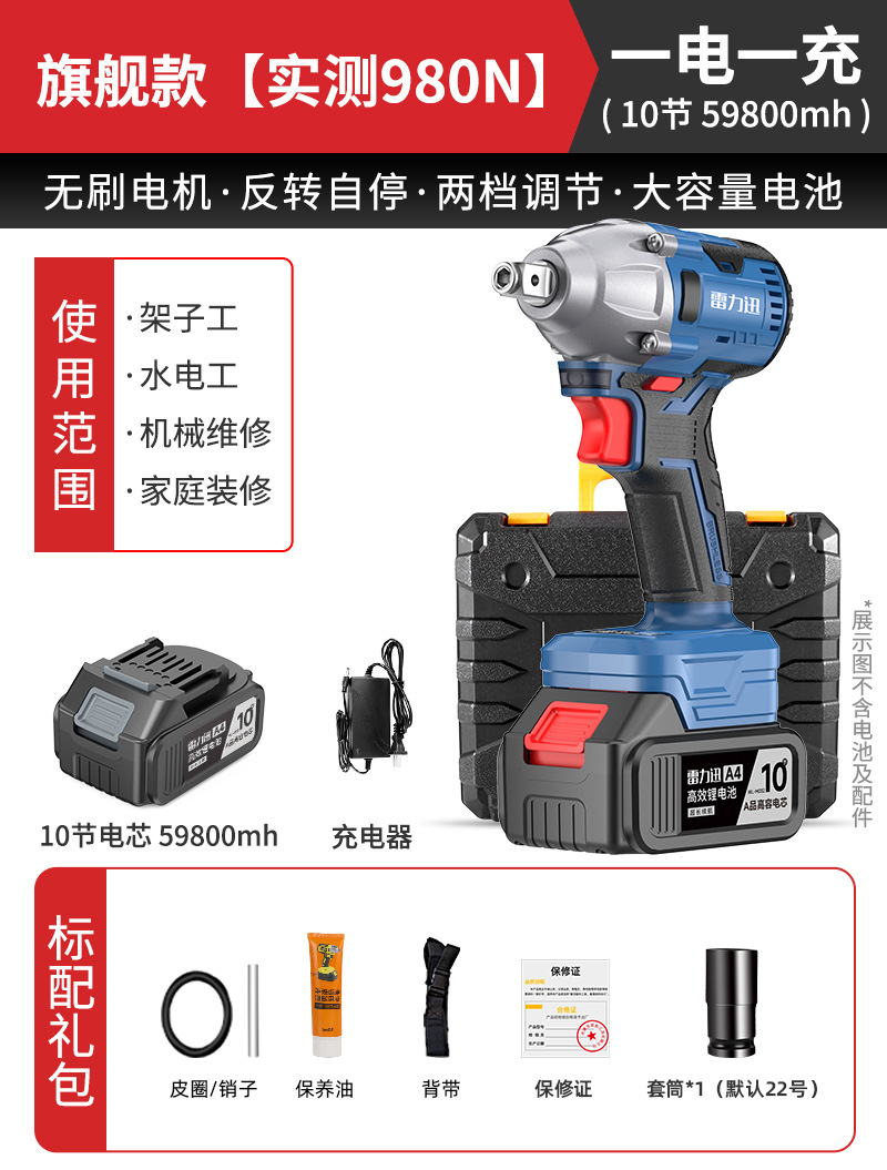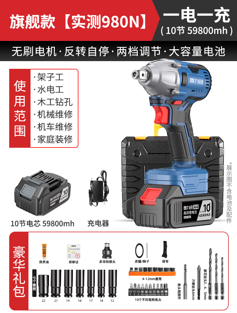 Lei Li Xun 브러시리스 전기 렌치 대형 토크 리튬 배터리 공기 총 대피소 충격 충전 렌치 강력한 전기 렌치스토어 가기