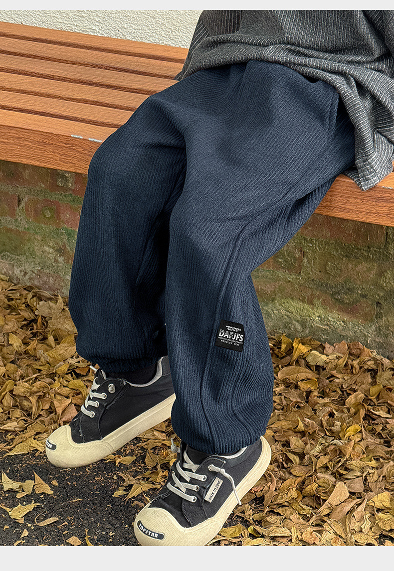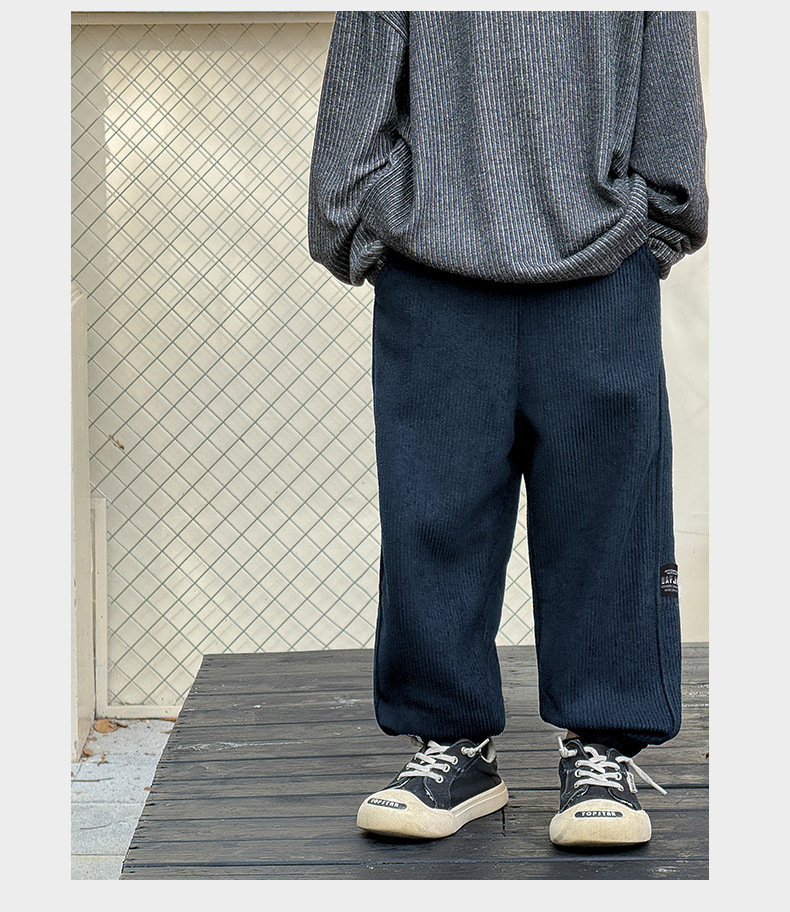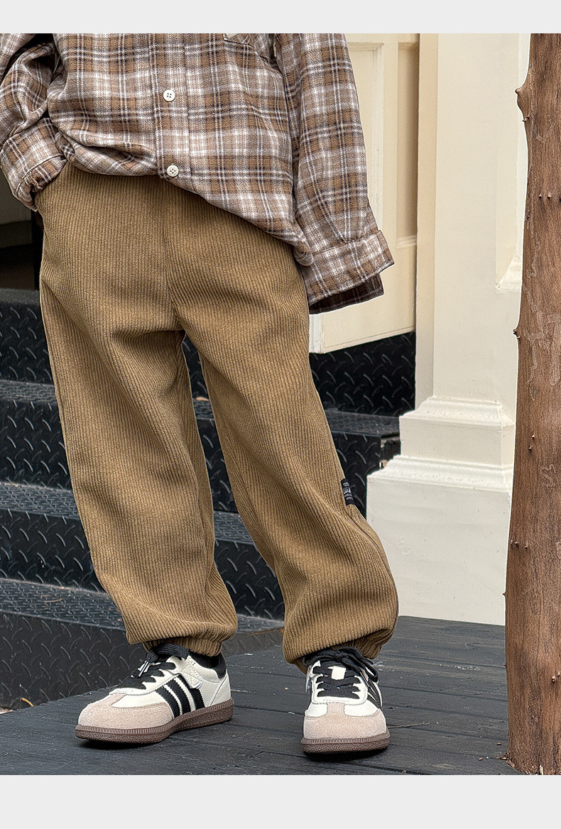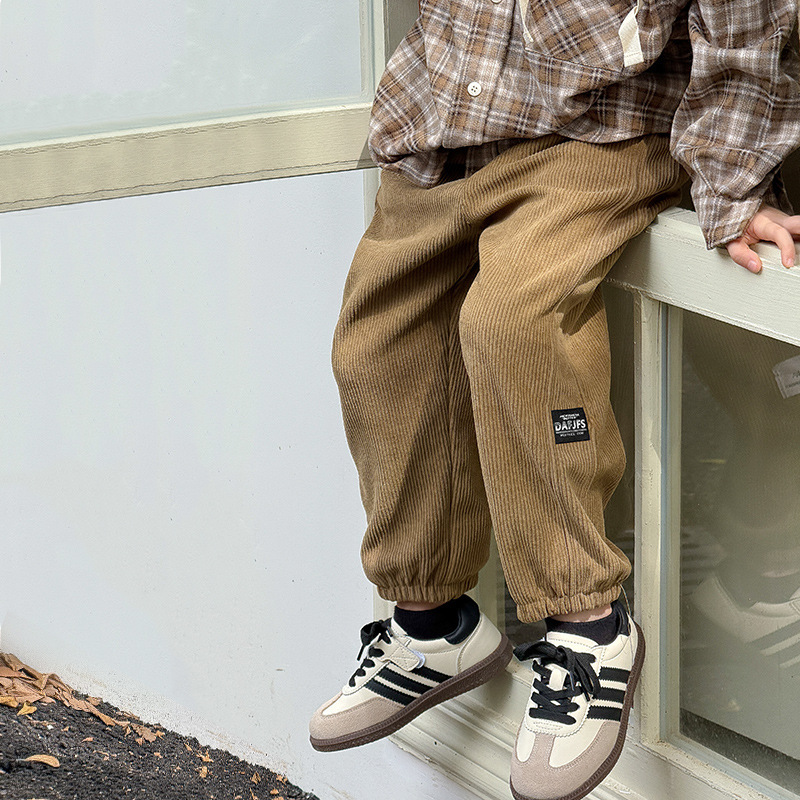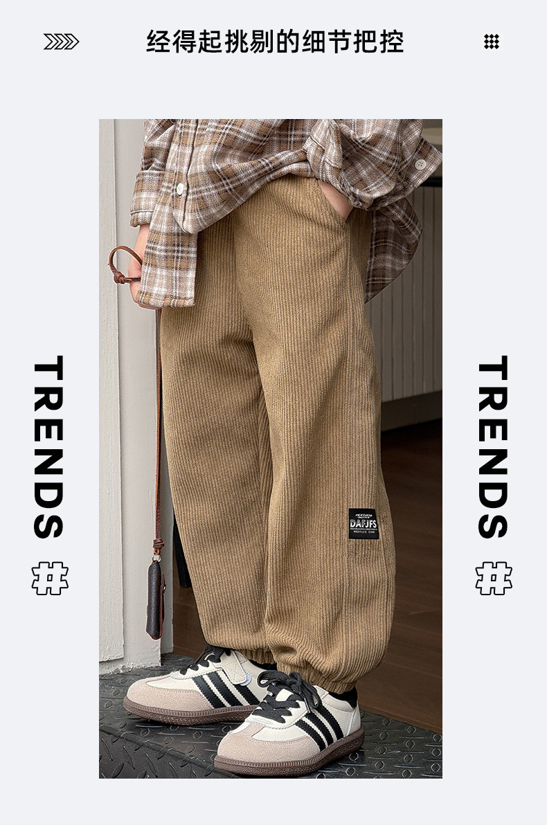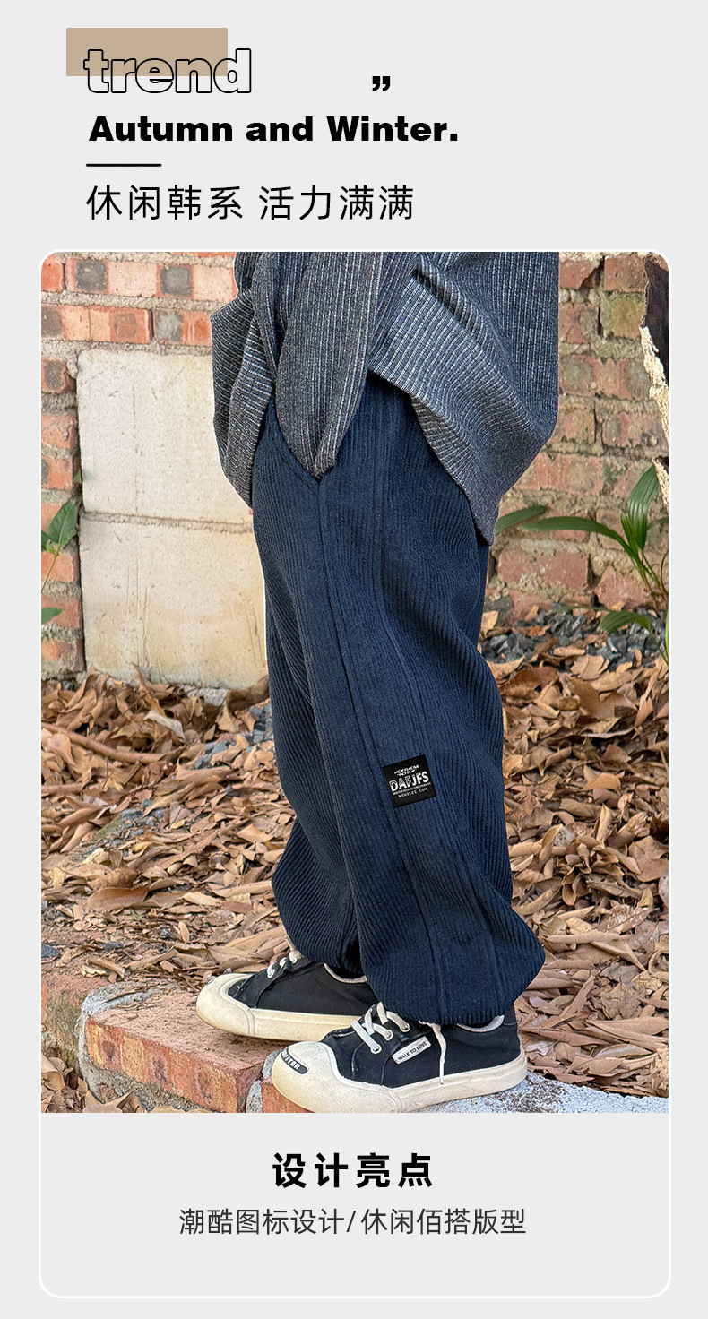어린이 소년 바지 2024 년 가을과 겨울 새로운 코듀로이 기모 바지 소년 느슨한 올 매치 스포츠 바지