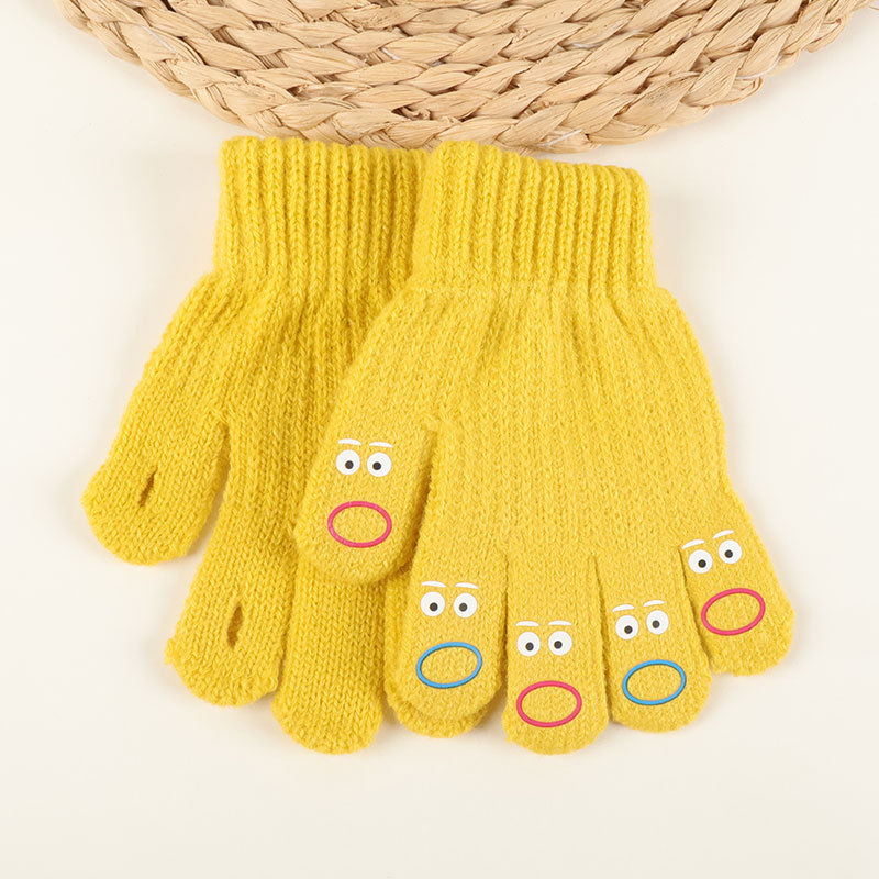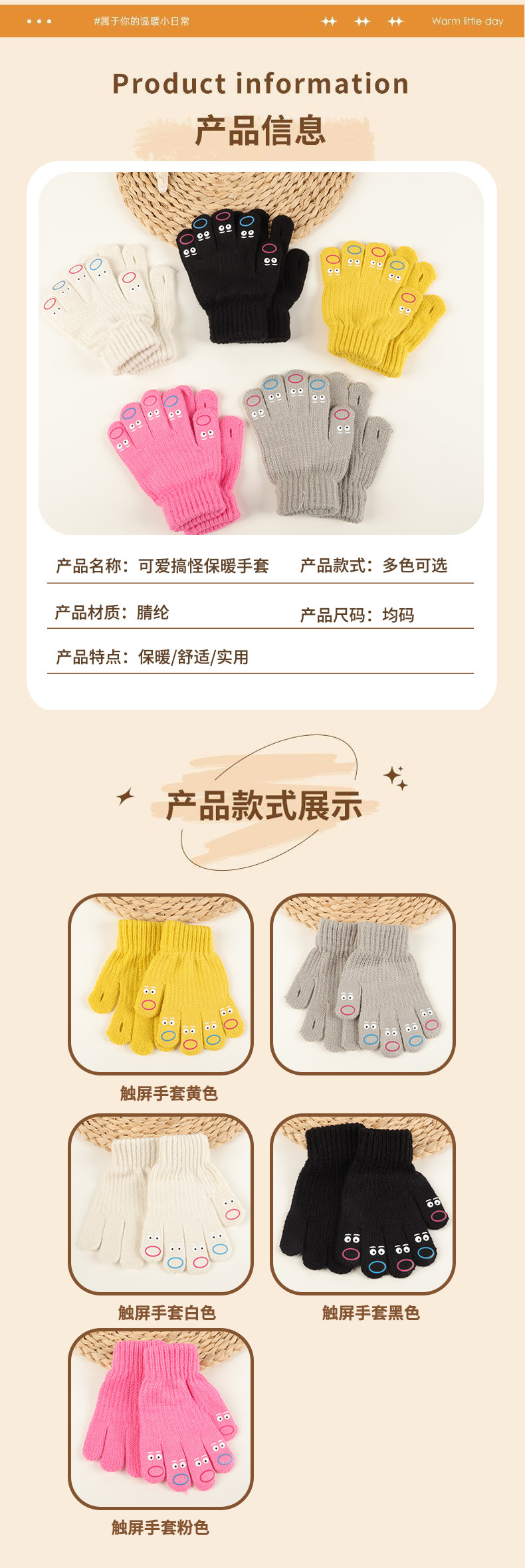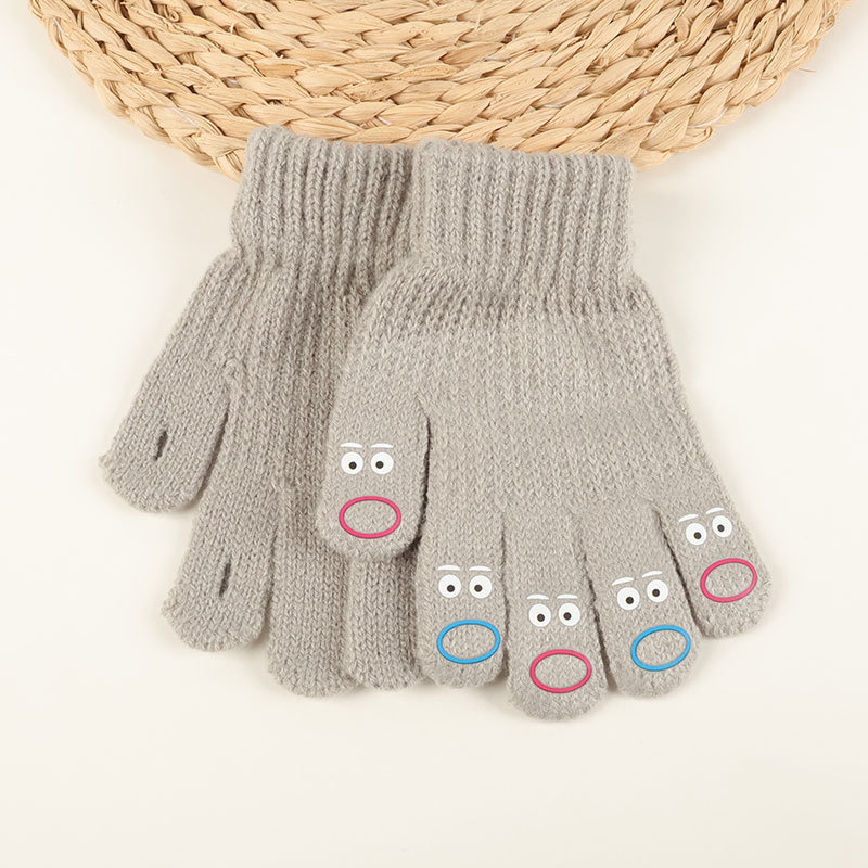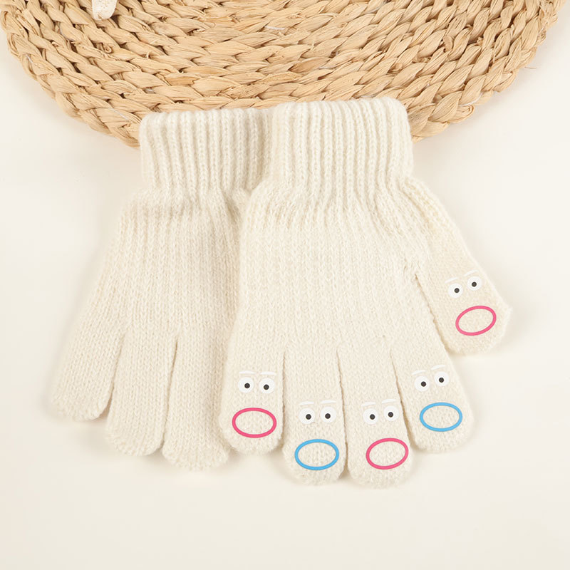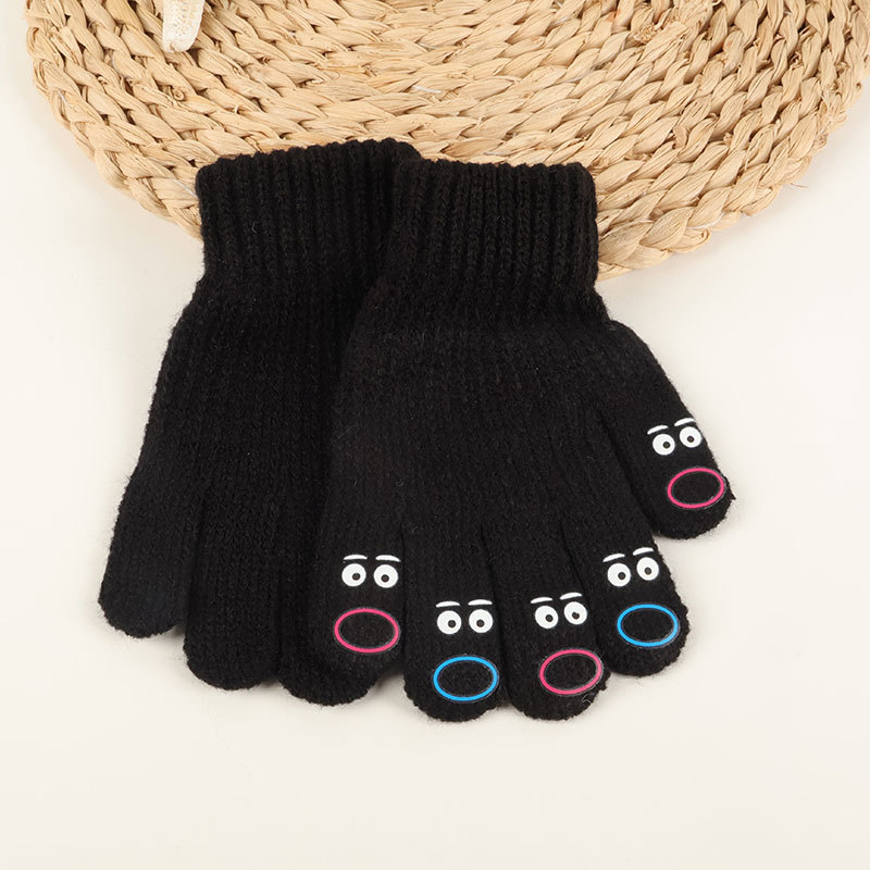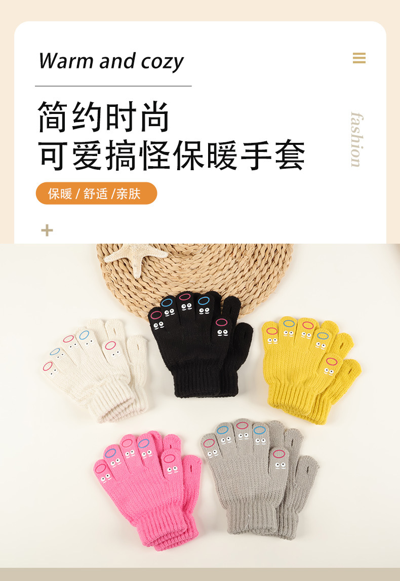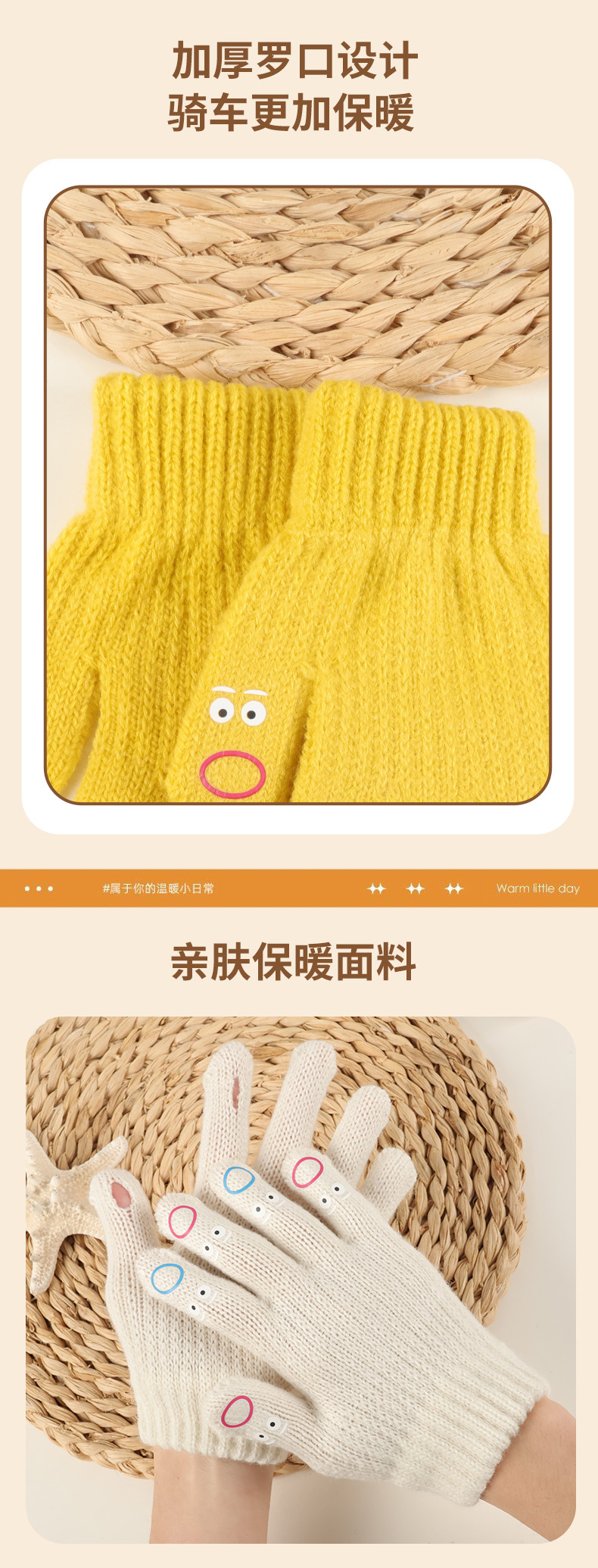귀엽고 재미 있고 추악하고 귀여운 표현 터치 스크린 다섯 손가락 장갑 여성의 가을과 겨울 니트 양모 따뜻한 승마 학생
