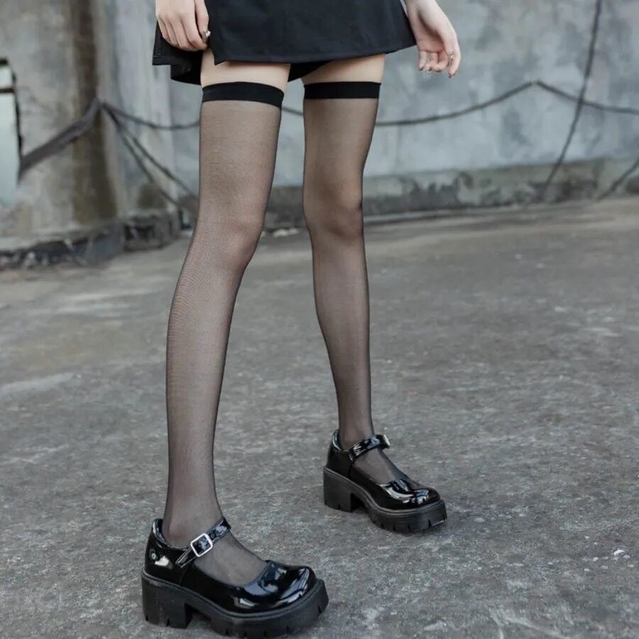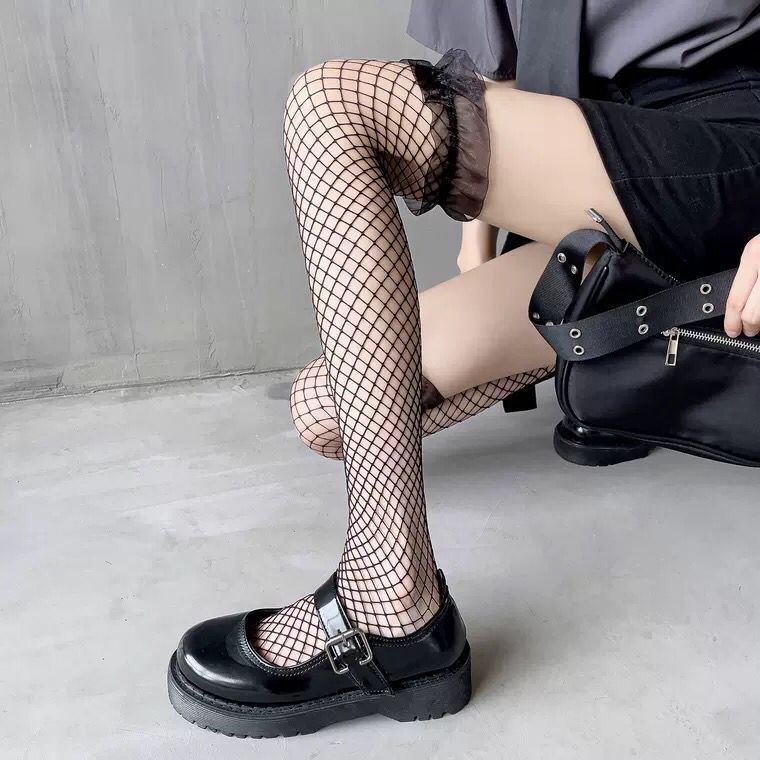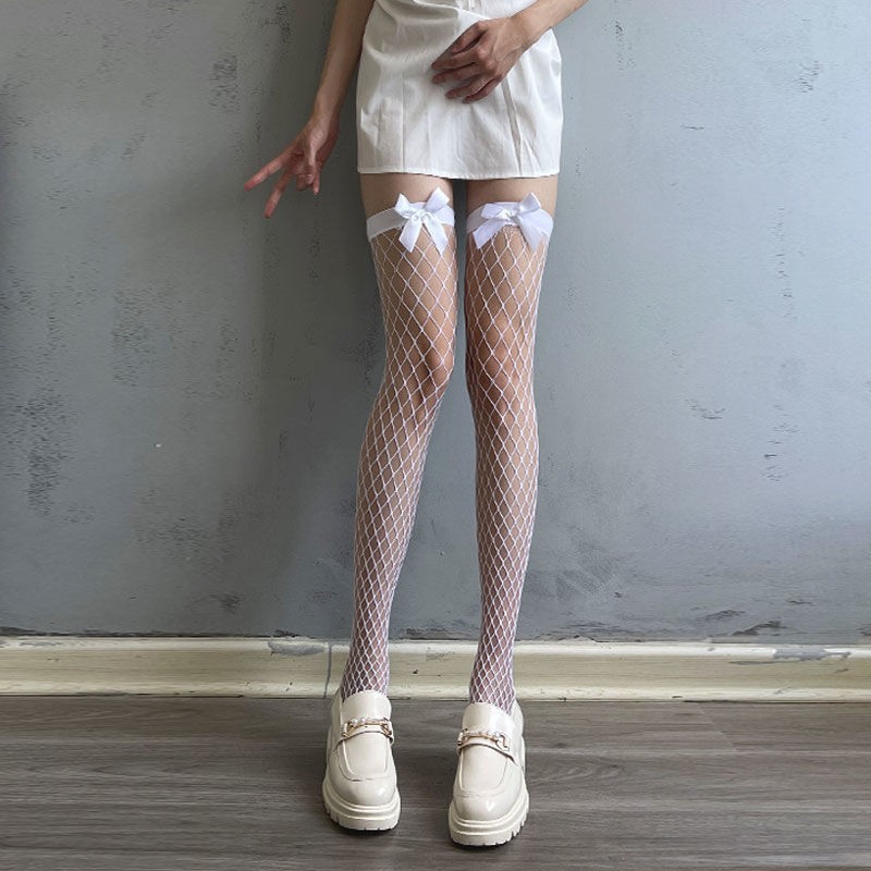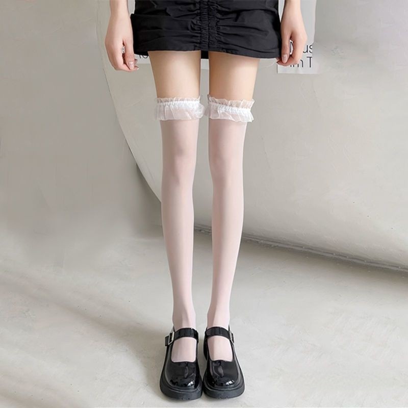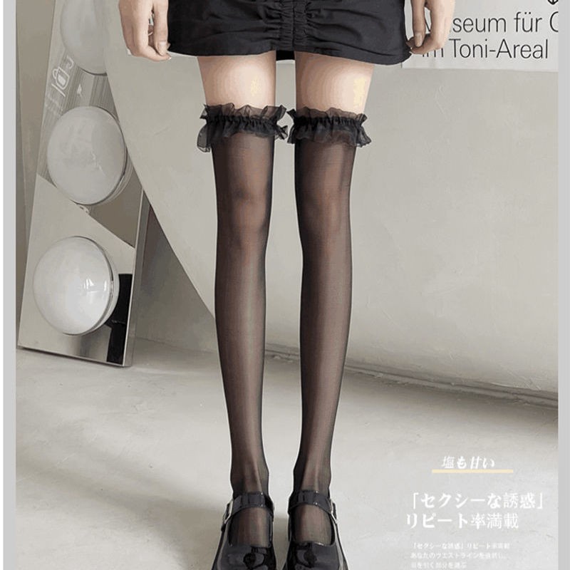 실크 스타킹 검은 색 깨진 하프 메쉬 레이스 긴 튜브 위에 무릎 달콤한 귀여운 코어 회전 실크 허벅지 양말스토어 가기