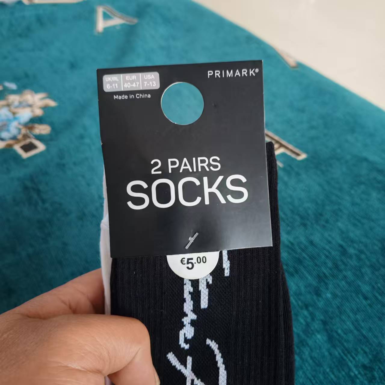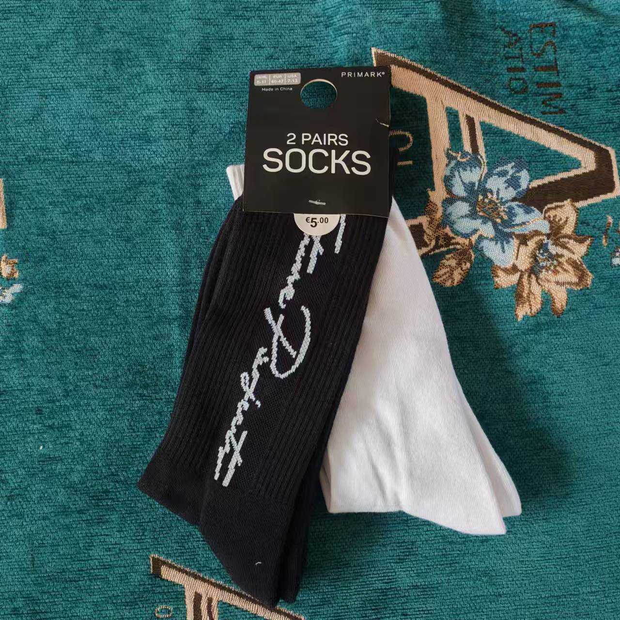 유럽과 미국의 원래 단일 조수 양말 높은 흑백 스포츠 양말 수건 바닥 남성 문자 트렌드 야외 양말 농구 양말