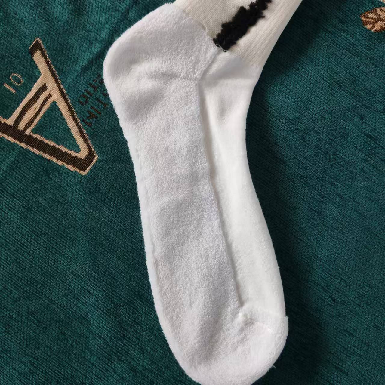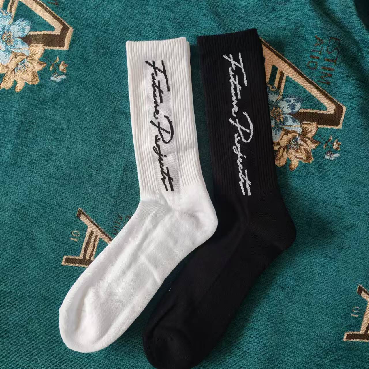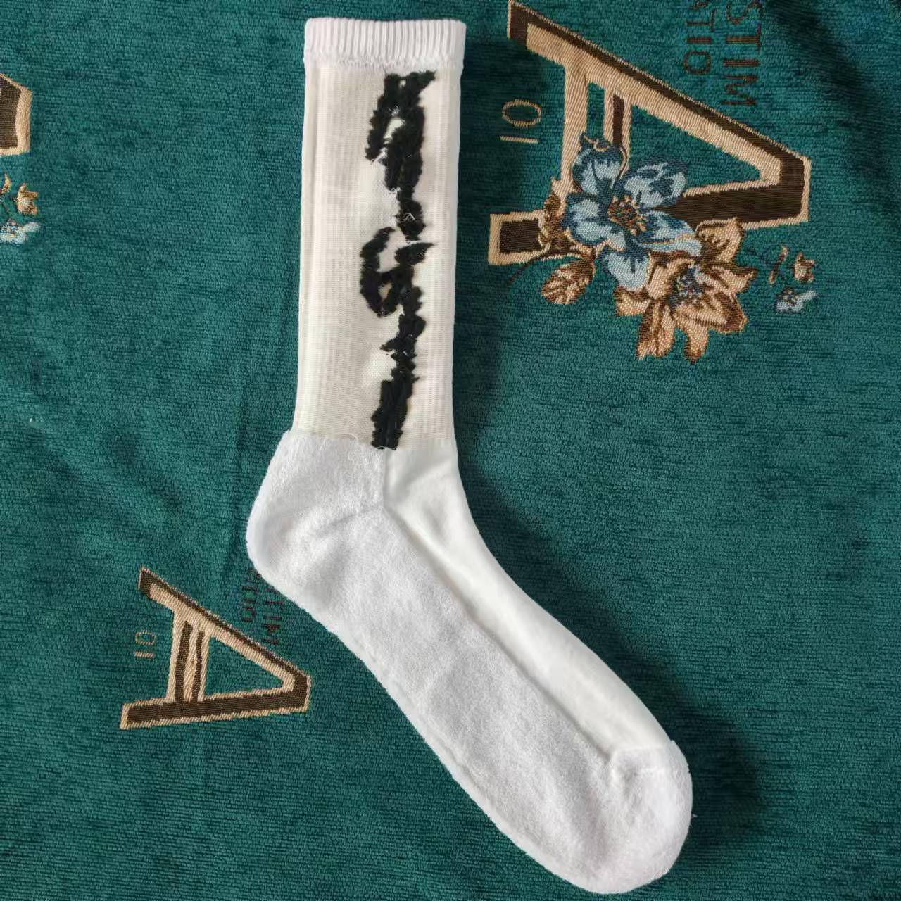 유럽과 미국의 원래 단일 조수 양말 높은 흑백 스포츠 양말 수건 바닥 남성 문자 트렌드 야외 양말 농구 양말스토어 가기