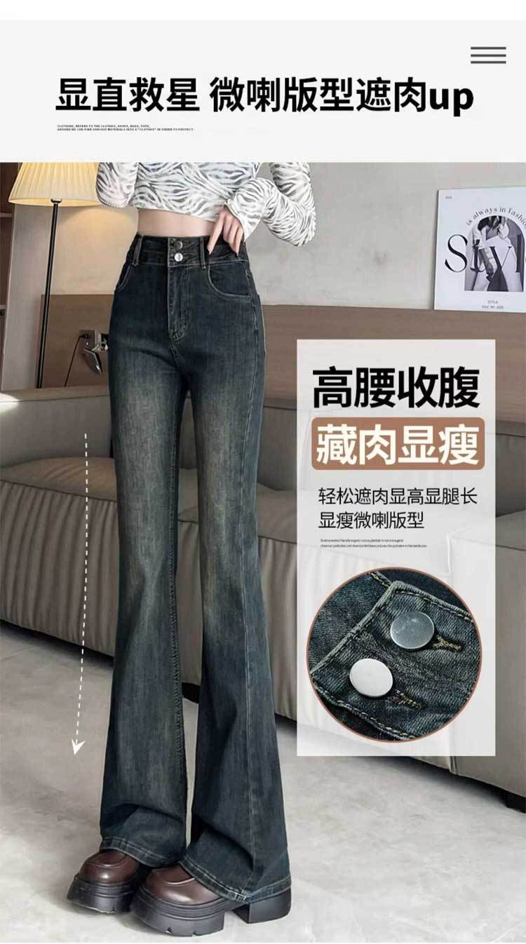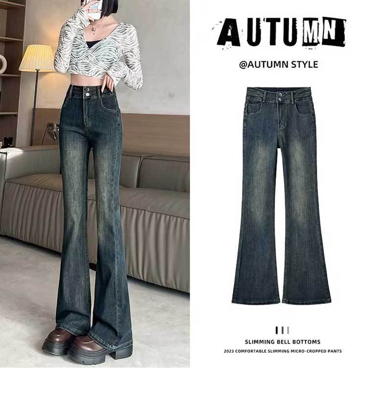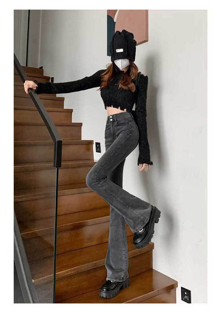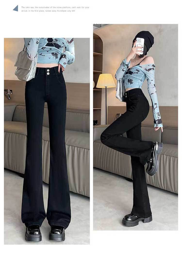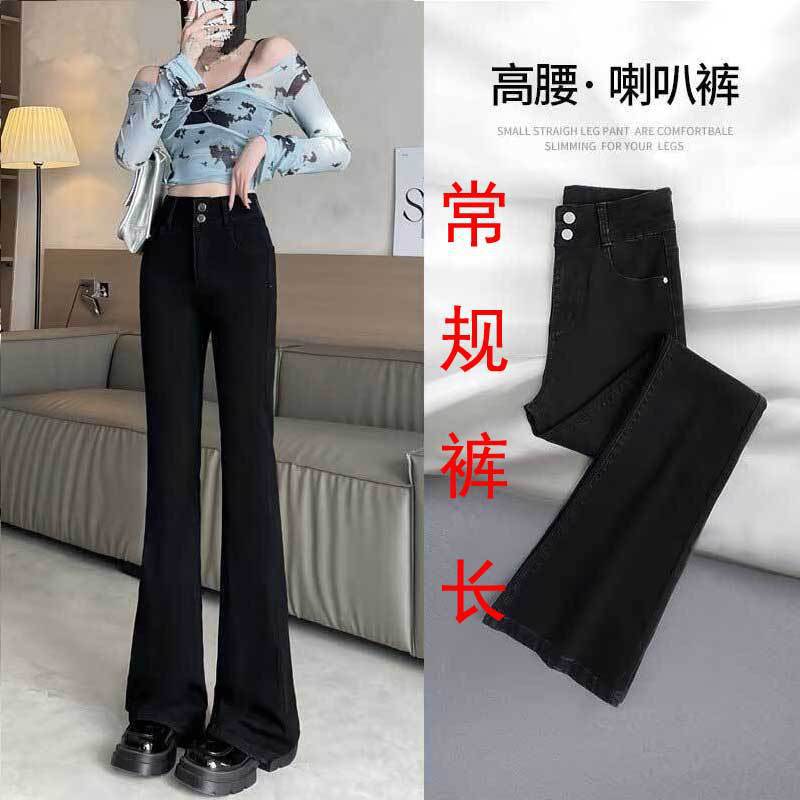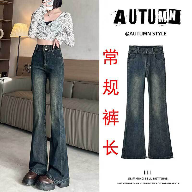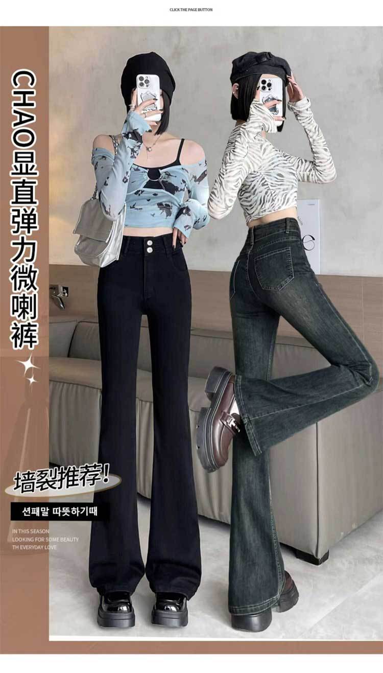 시멘트 재 약한 청바지 여성의 봄과 가을 높은 허리 슬리밍 작은 복고풍 딥 호른 바지 검은 국경스토어 가기