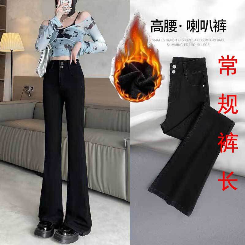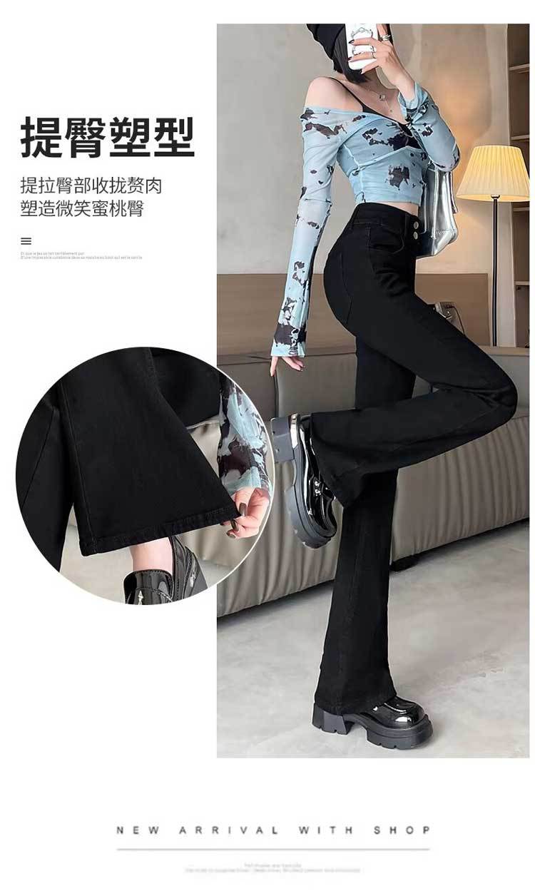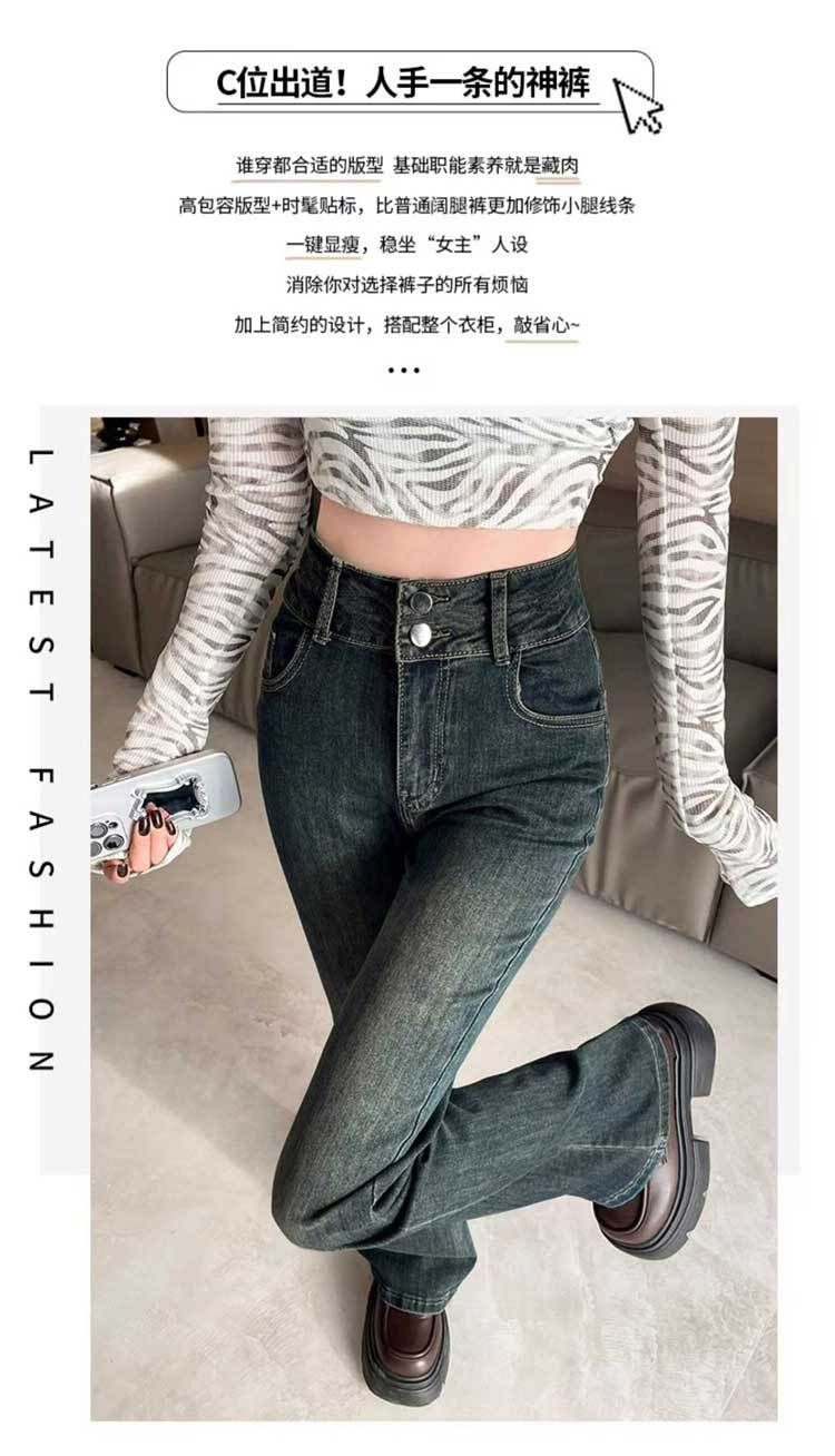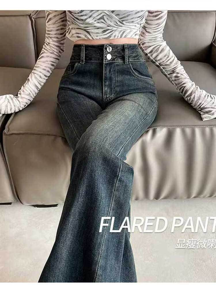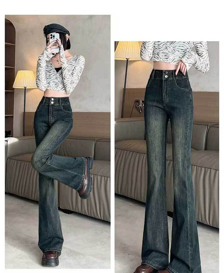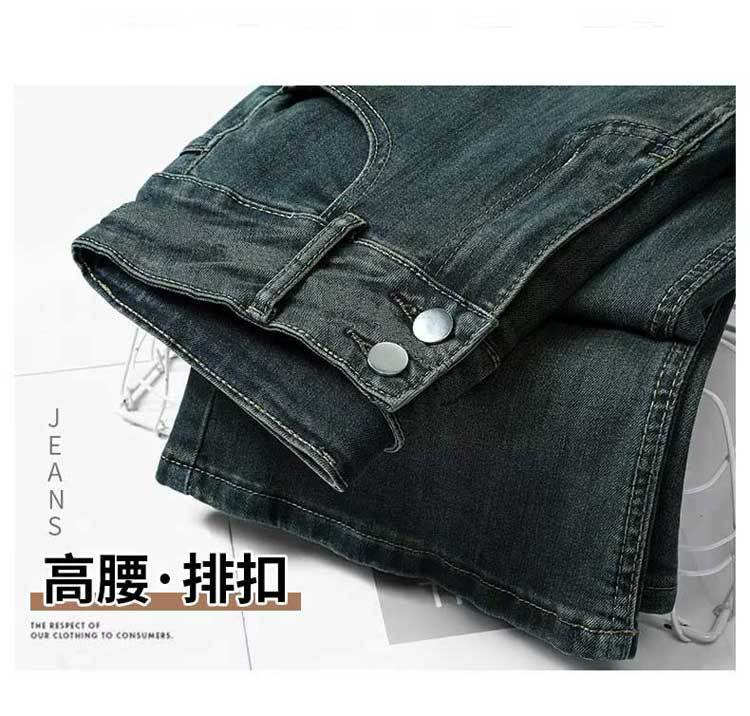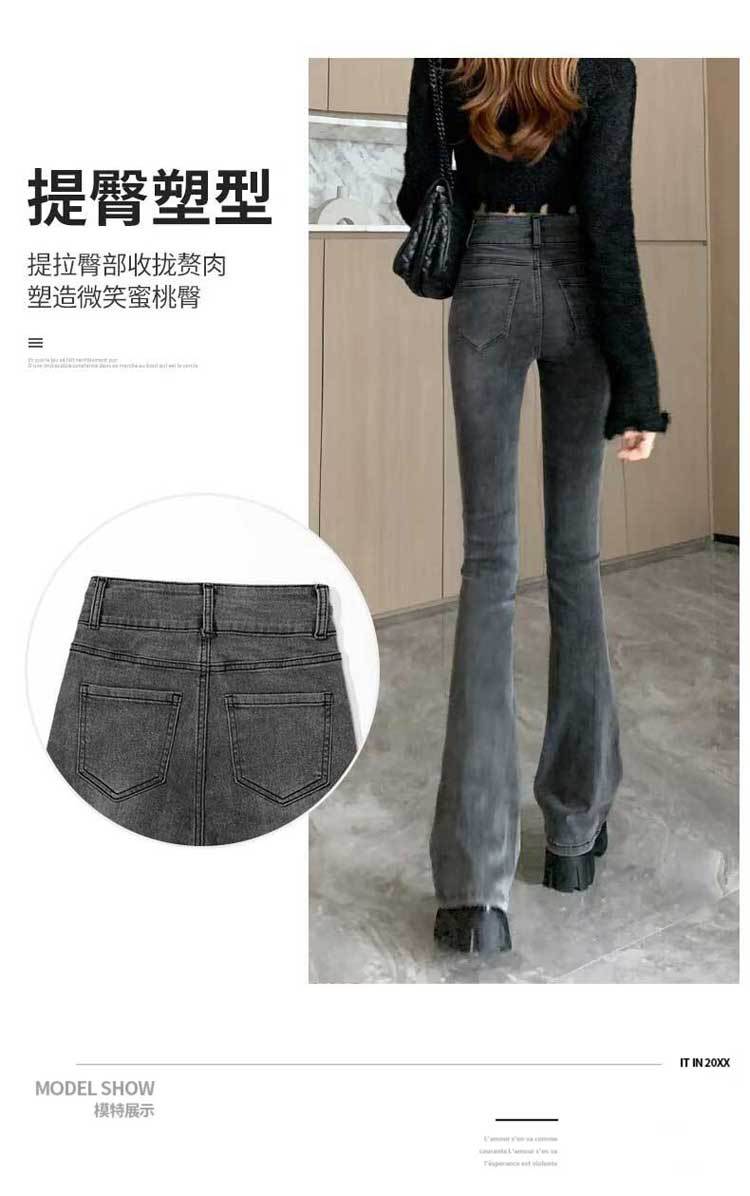 시멘트 재 약한 청바지 여성의 봄과 가을 높은 허리 슬리밍 작은 복고풍 딥 호른 바지 검은 국경스토어 가기