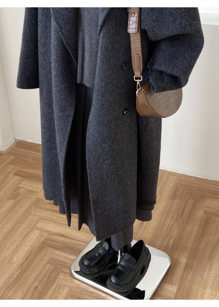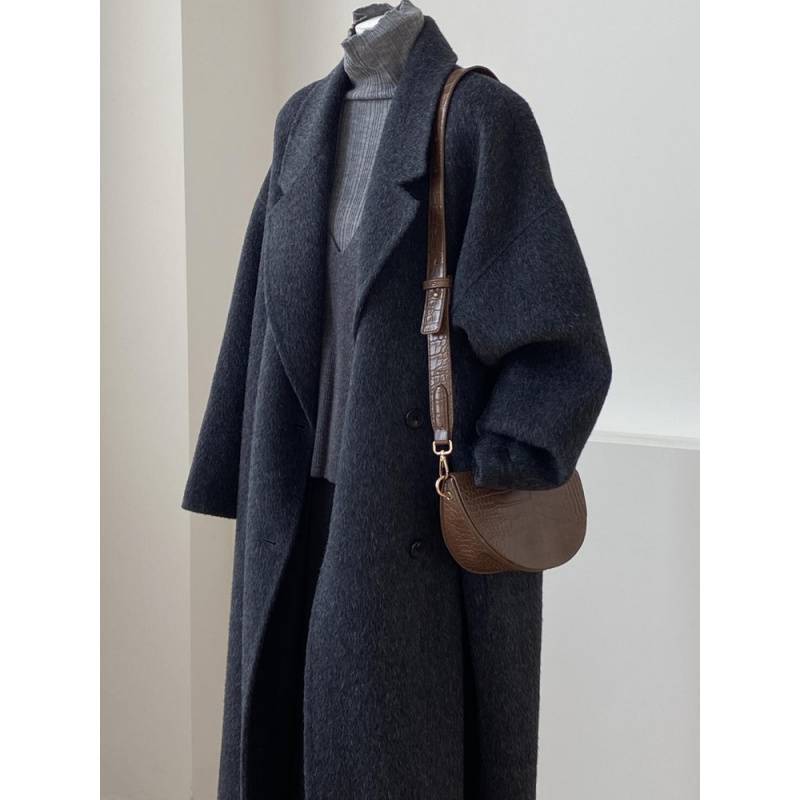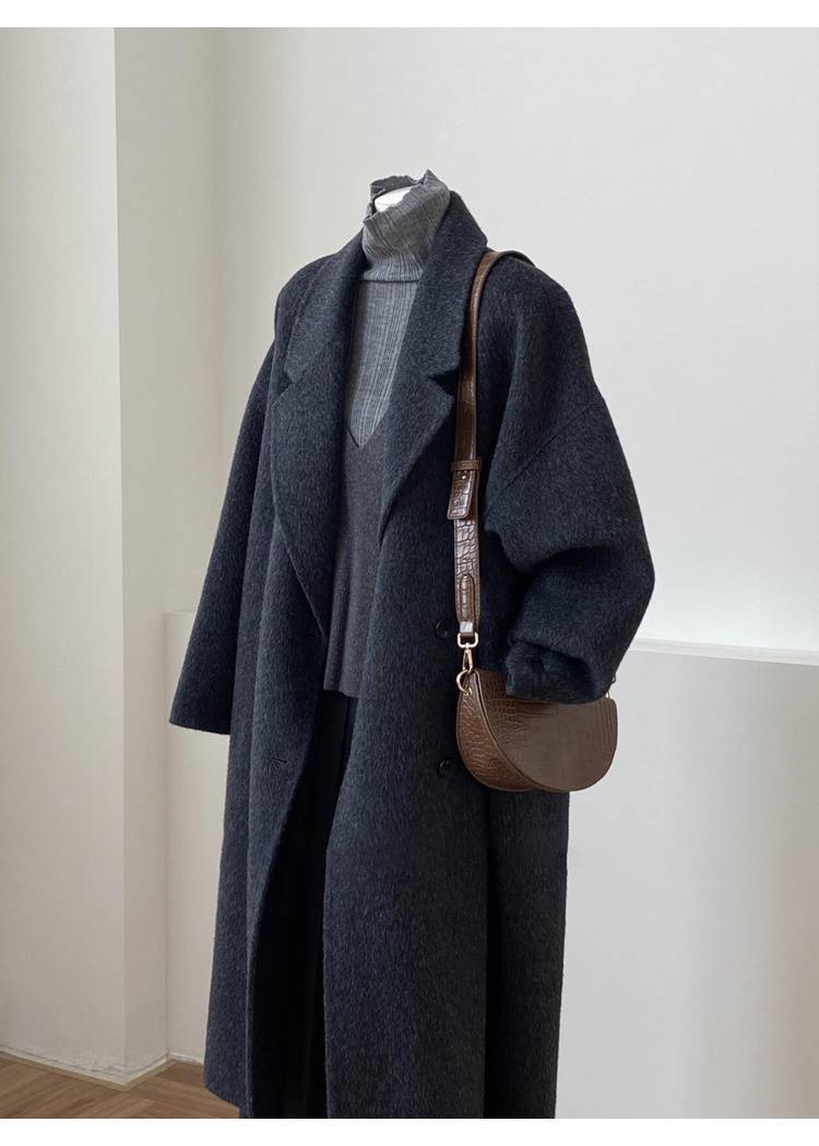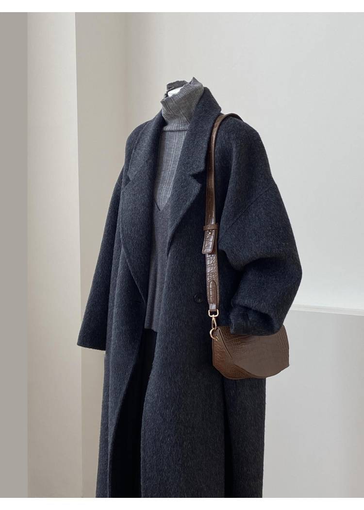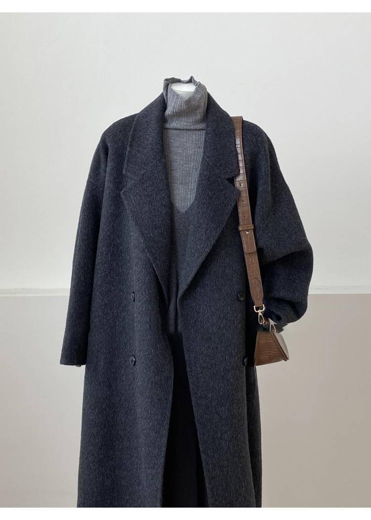 Temixin 2024 디자인 센스 우아한 모직 코트 느슨한 가을과 겨울 새로운 중간 길이의 유행 두꺼운 코트 트렌디