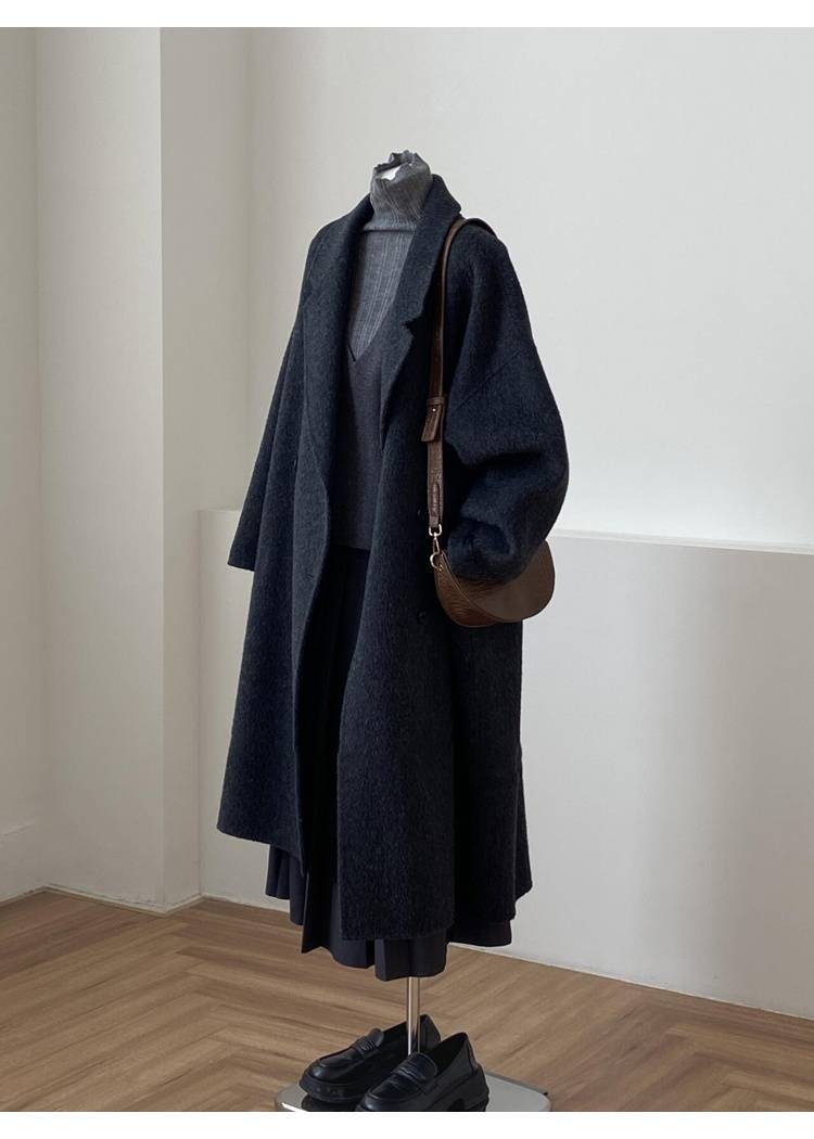 Temixin 2024 디자인 센스 우아한 모직 코트 느슨한 가을과 겨울 새로운 중간 길이의 유행 두꺼운 코트 트렌디스토어 가기