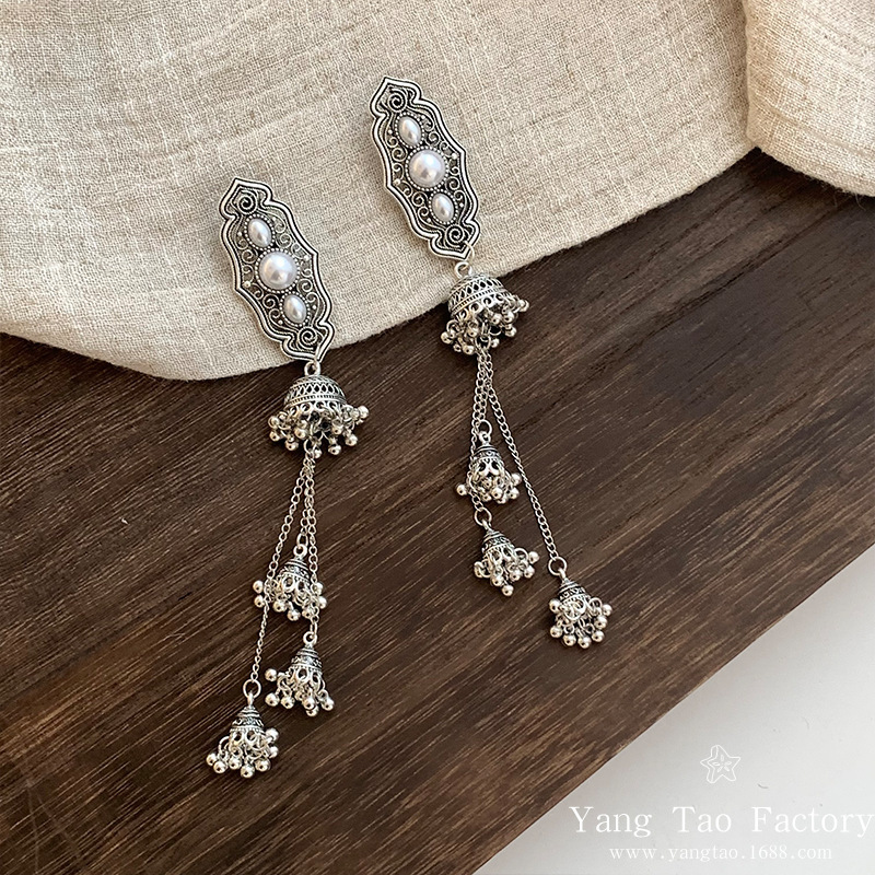 수제 DIY 홈 메이드 Yi Mengling 같은 스타일 실버 술 헤어 액세서리 민족 스타일 헤어핀 사이드 클립 뱅 클립 여행스토어 가기