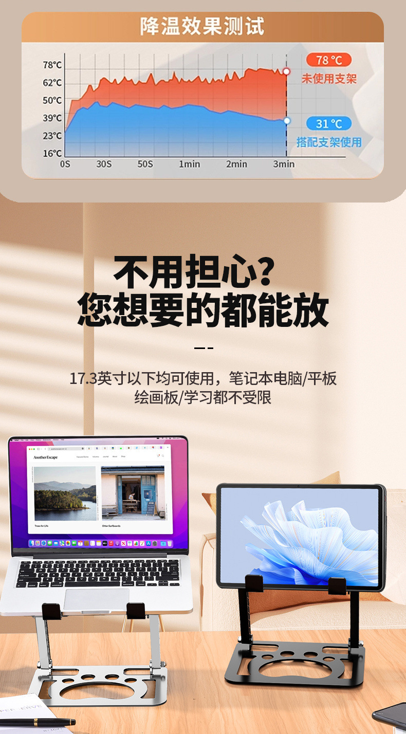 금속 플랫 플레이트 지원 프레임 접이식 열 발산 선반 노트북 스탠드 휴대용 리프팅 및 가열