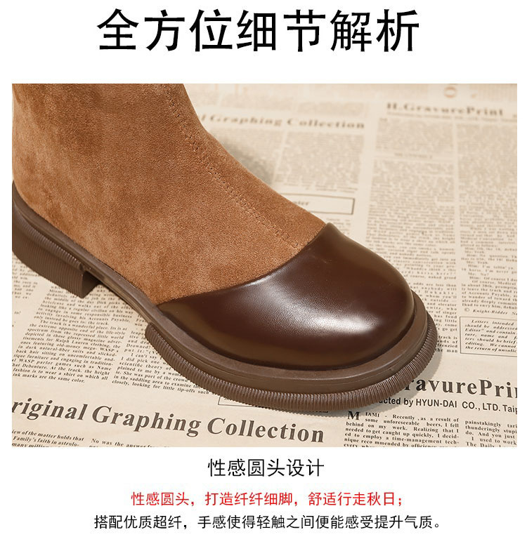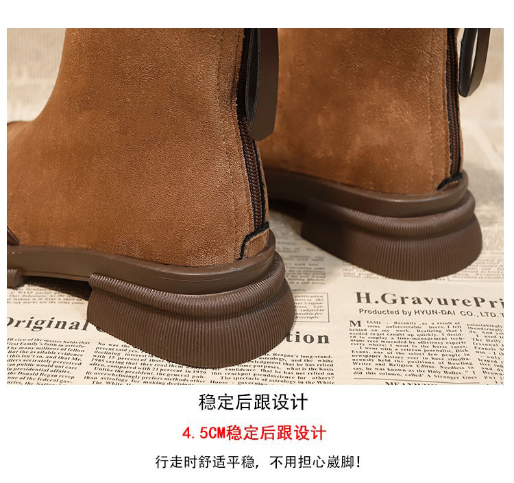 빈티지 스웨이드 스티칭 스퀘어 힐 쇼트 부츠 싱글 부츠 2024 가을 및 겨울 새로운 스트레치 부츠 리어 지퍼 강화 마틴 부츠