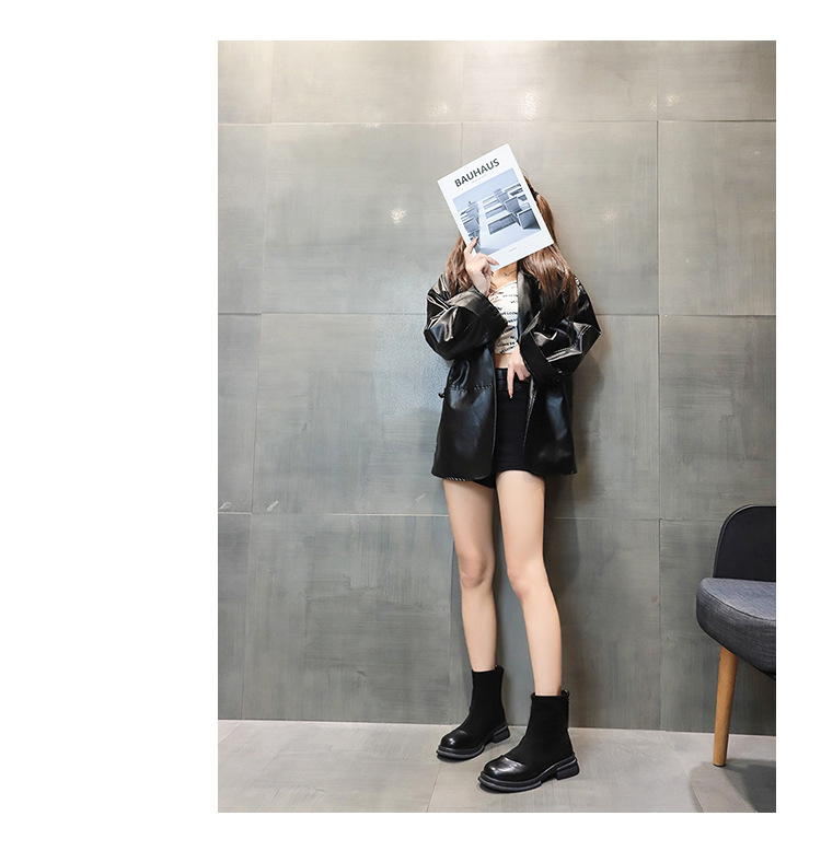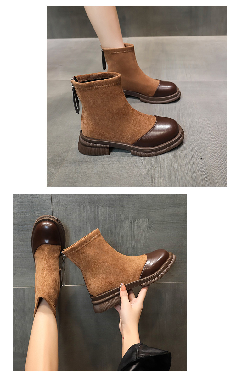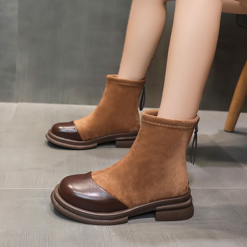 빈티지 스웨이드 스티칭 스퀘어 힐 쇼트 부츠 싱글 부츠 2024 가을 및 겨울 새로운 스트레치 부츠 리어 지퍼 강화 마틴 부츠스토어 가기