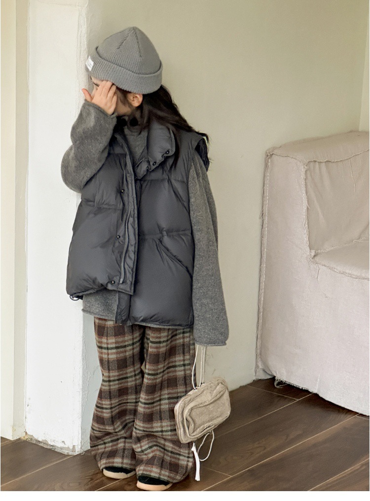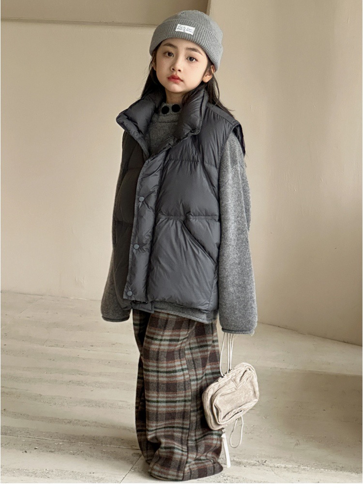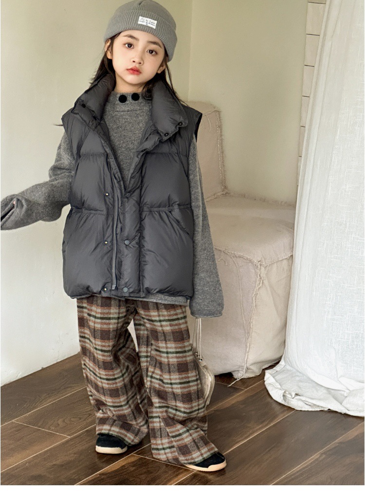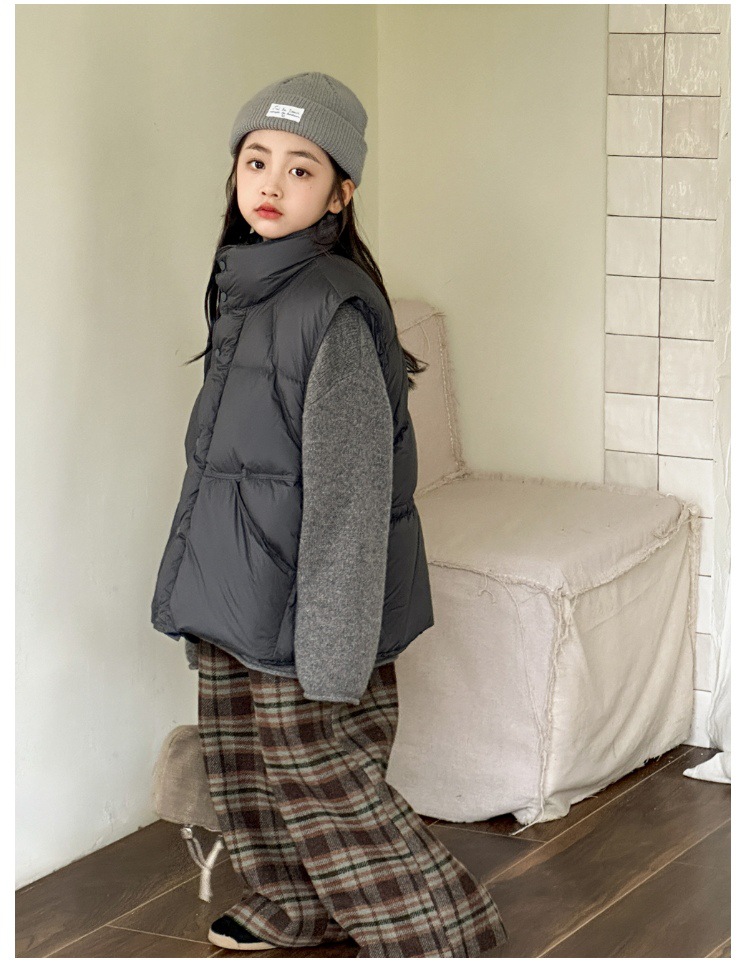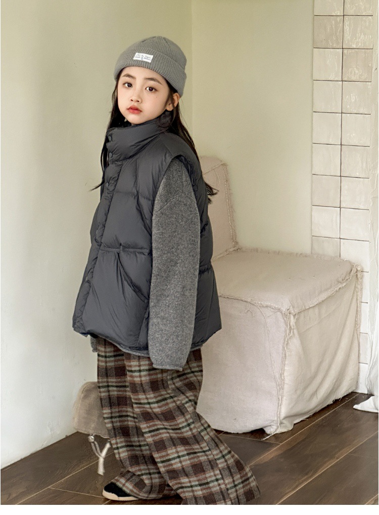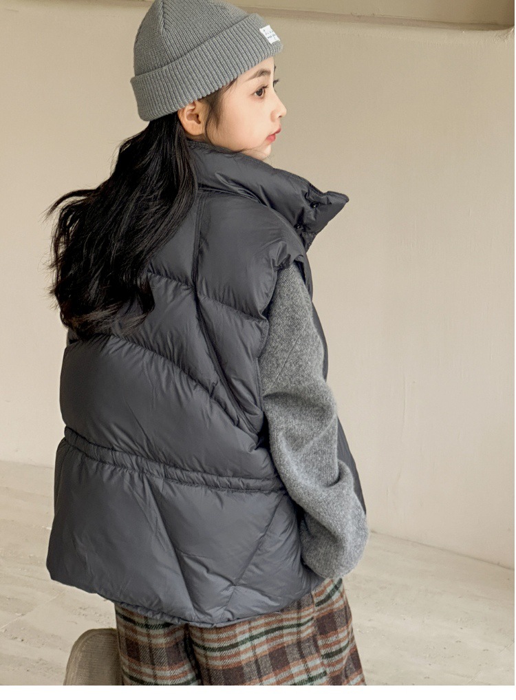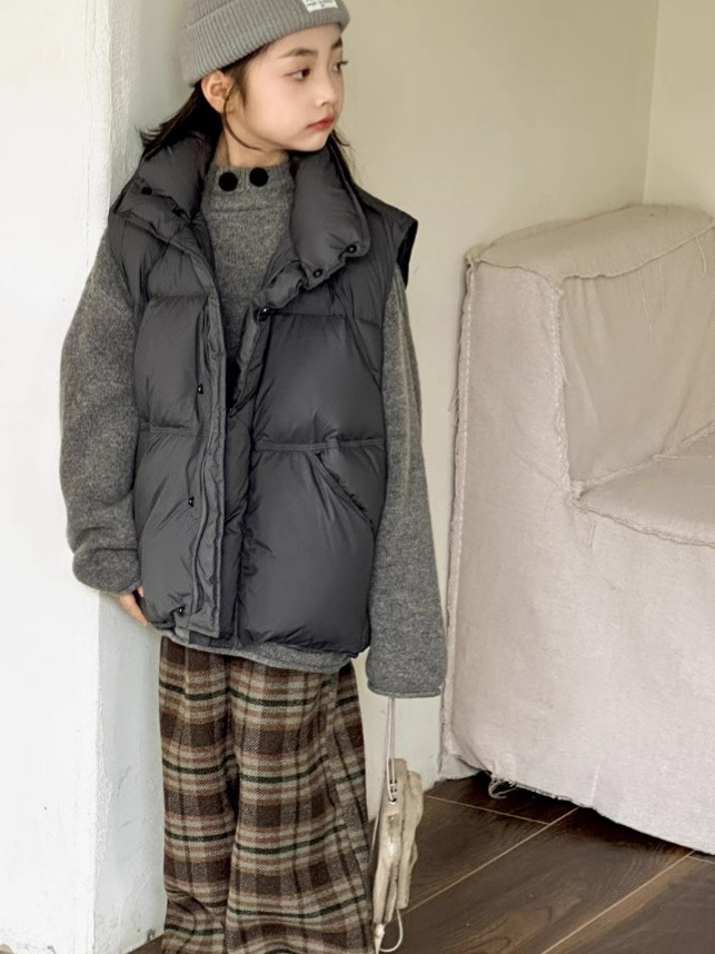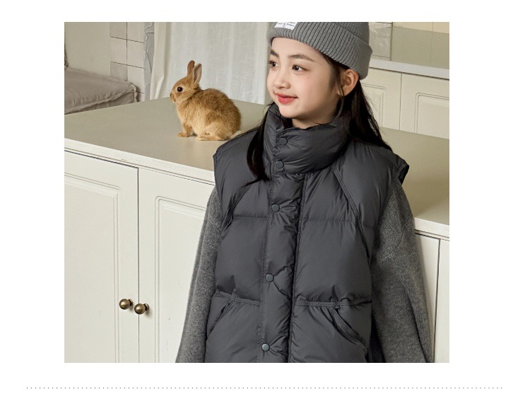 어린이 다운 조끼 가을과 겨울 소녀 두꺼운 조끼 겨울 새 스타일 중대형 어린이 화이트 덕 다운 재킷 코트를 입고