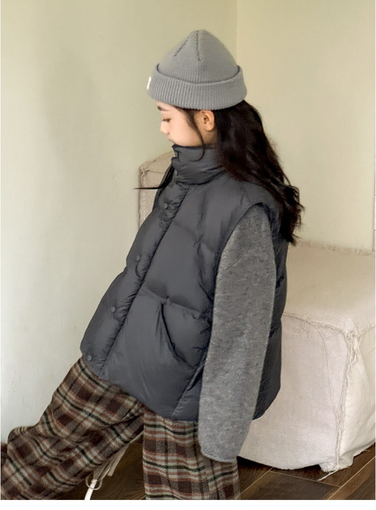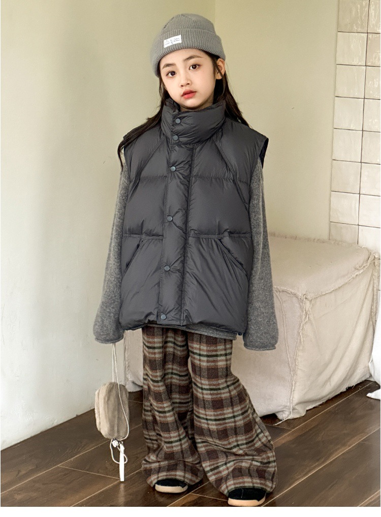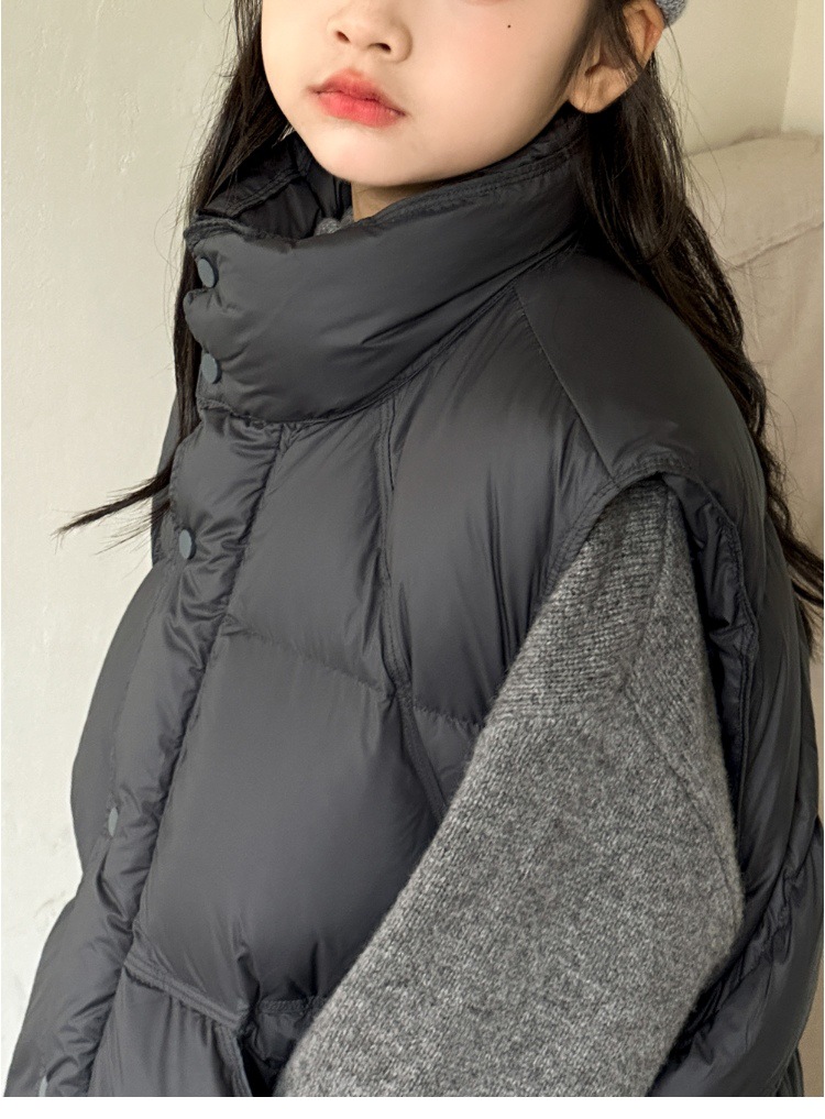 어린이 다운 조끼 가을과 겨울 소녀 두꺼운 조끼 겨울 새 스타일 중대형 어린이 화이트 덕 다운 재킷 코트를 입고스토어 가기