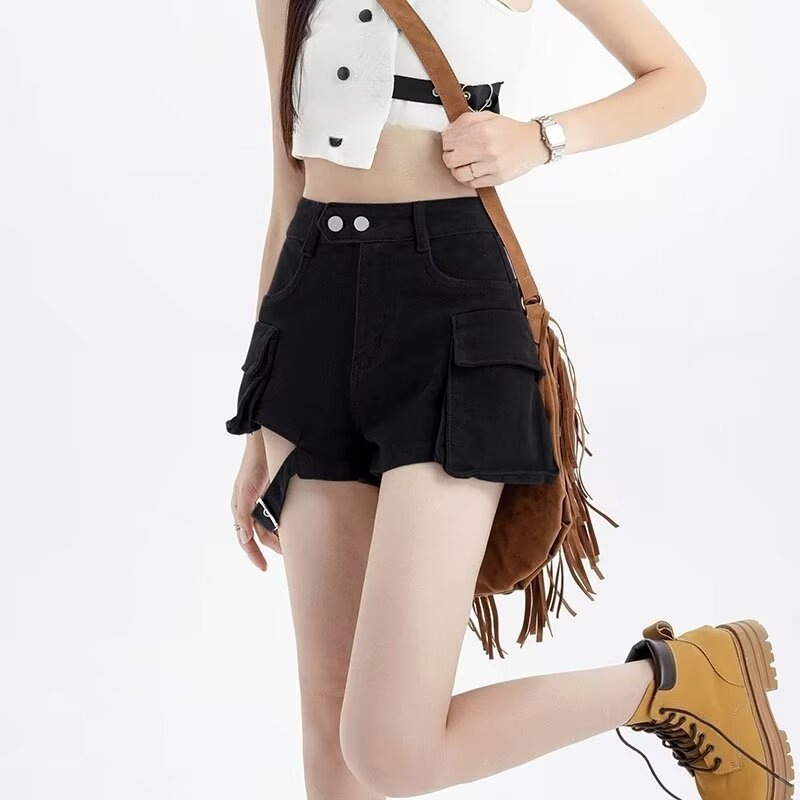 스트레치 청바지 높은 허리 슬리밍 데님 바지 타이트한 스트레이트 와이드 레그 핫 팬츠 여성의 여름 2024 새로운