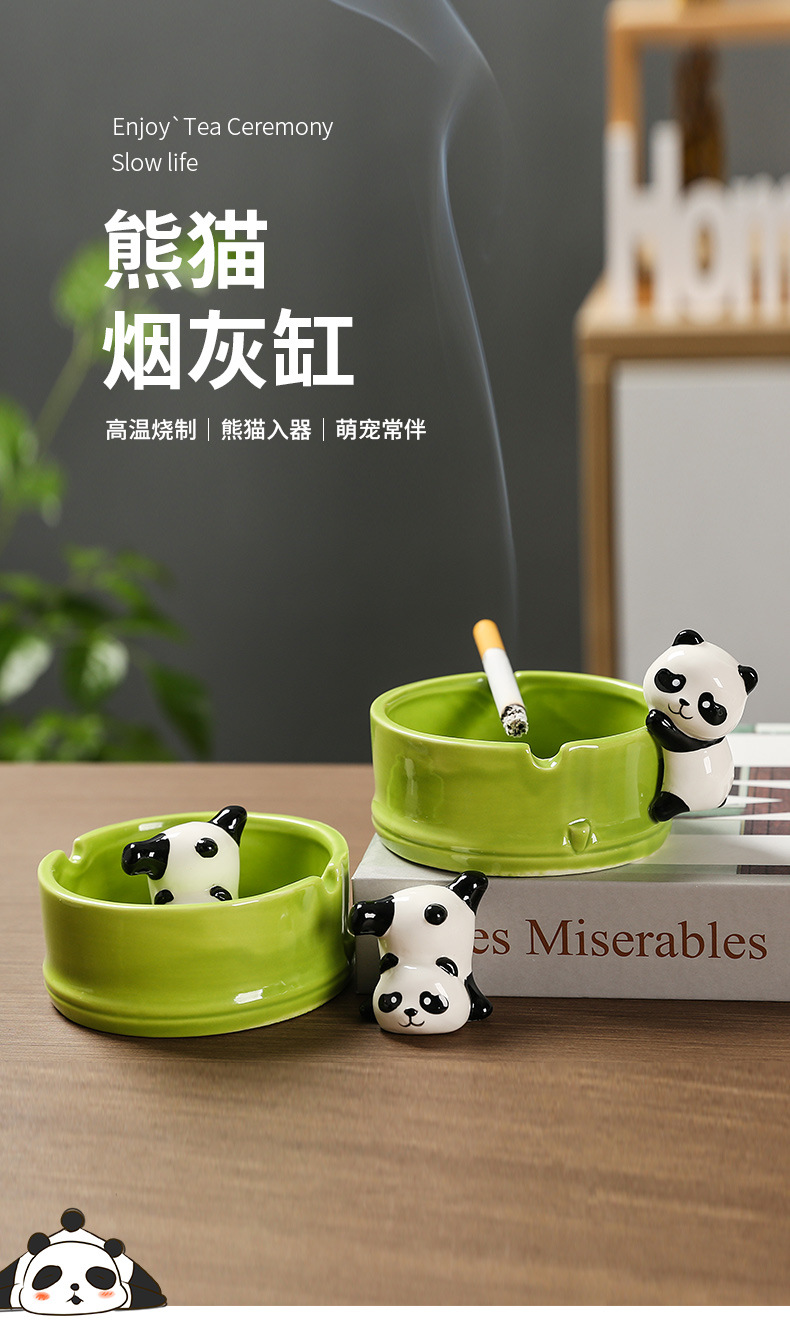 귀여운 팬더 재떨이 홈 안티 플라이 애쉬 담배 컵 사무실 거실 장식품 세련된 세라믹 재떨이