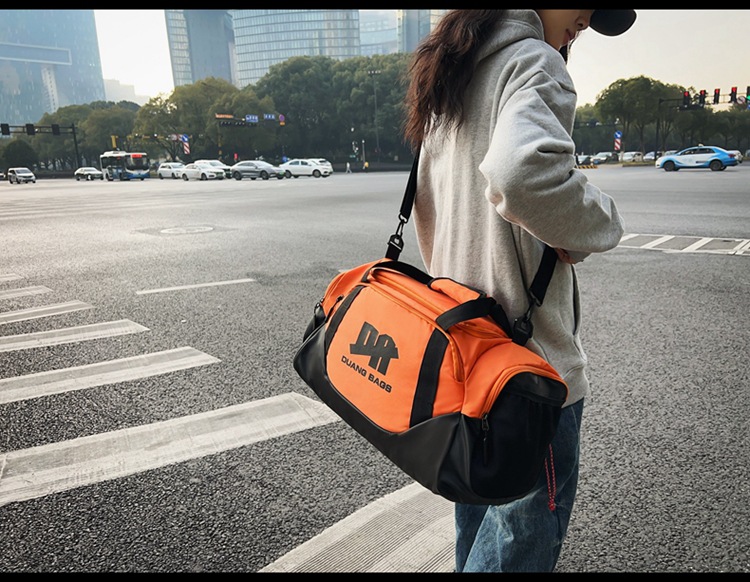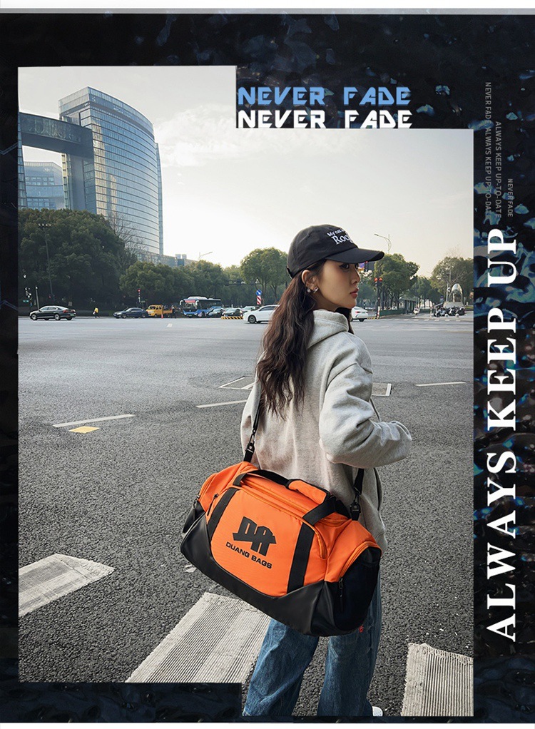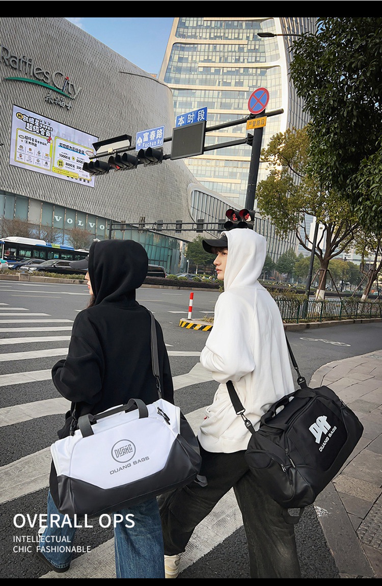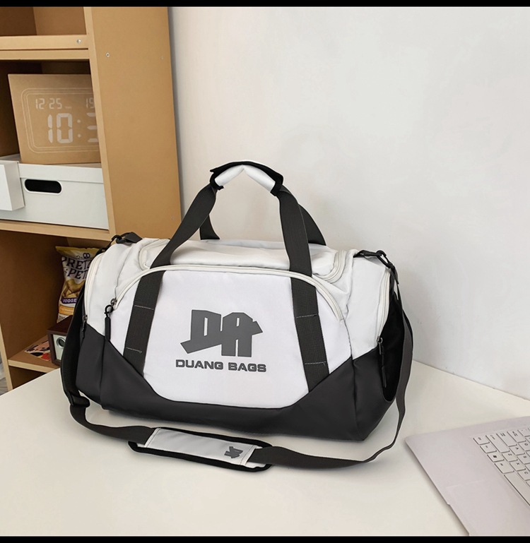 편리한 어깨 크로스 바디 여행 가방 컬러 블록 피트니스 가방 대용량 편지 인쇄 경량 건조 및 젖은 별도의 수하물 가방