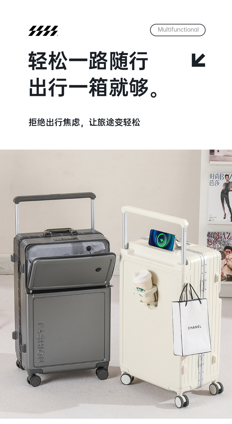 공장 넓은 당기기 가방 여성 다기능 전면 개방 2024 새로운 20 인치 탑승 상자 비밀번호 여행 상자