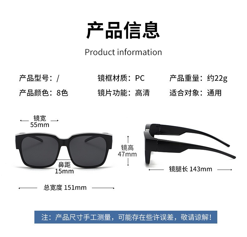 근시용 사각 선글라스 세트, 대형 프레임, 소형 운전, 패셔너블하고 편리하며 매우 선명한 자외선 차단 선글라스