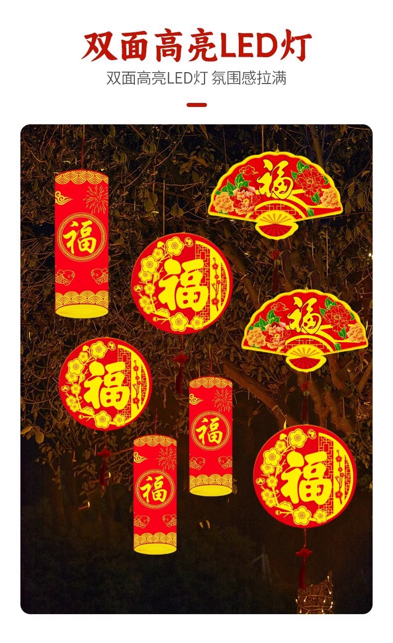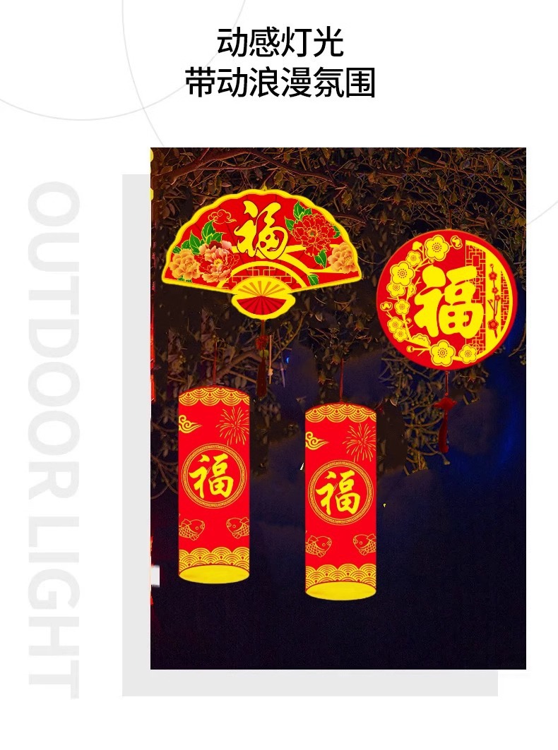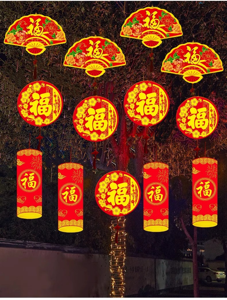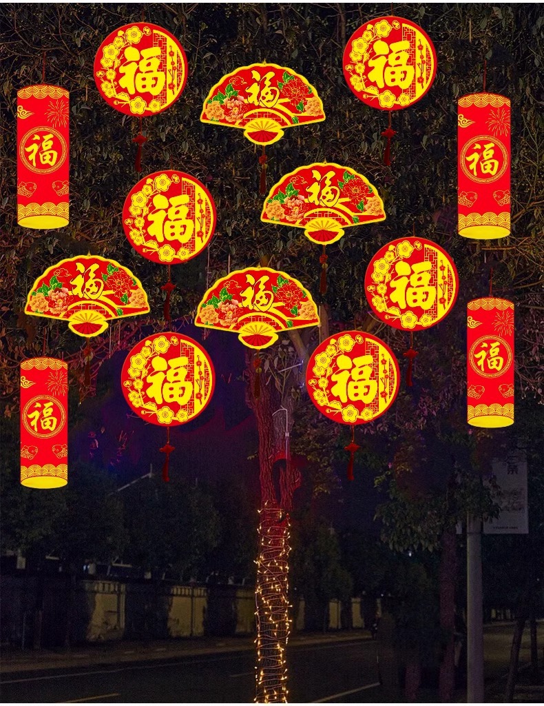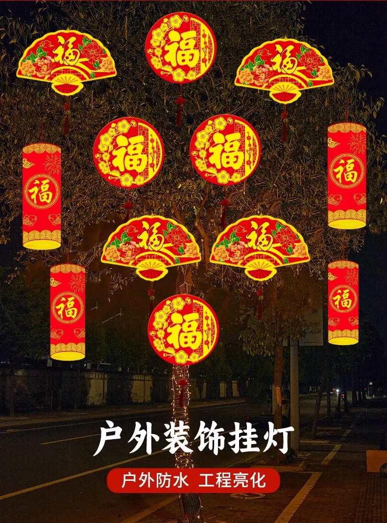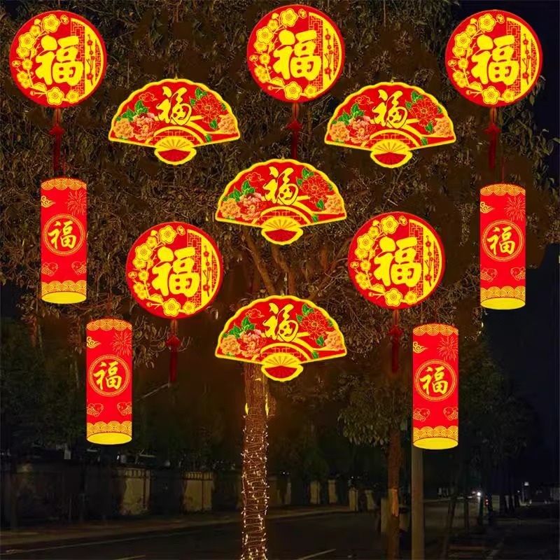 Led 라운드 포춘 조명 설날 장식 조명 야외 빛나는 폭죽 조명 설날 트리 조명 모델 조명