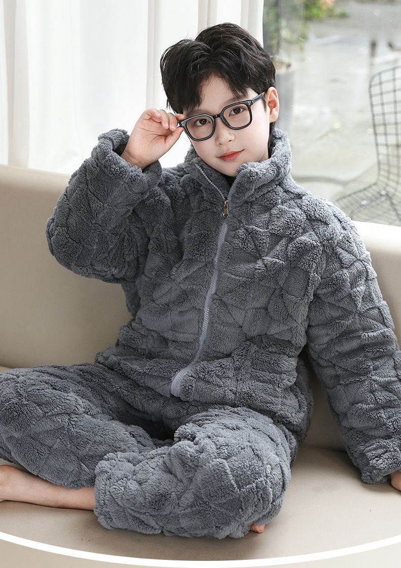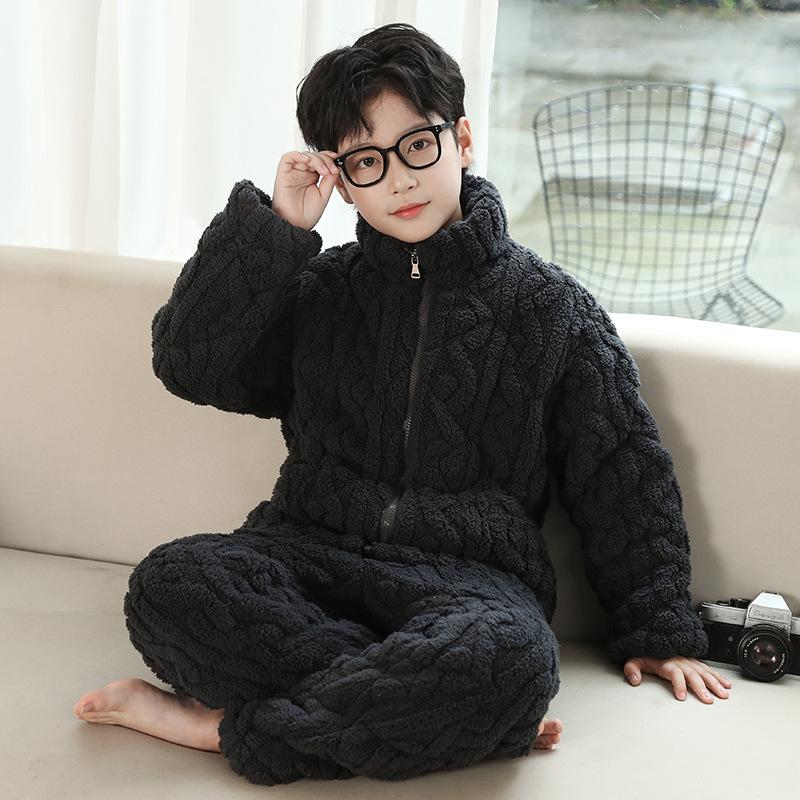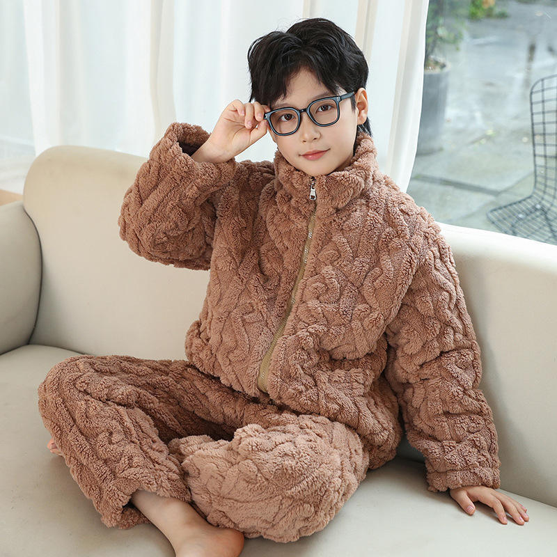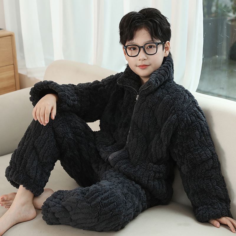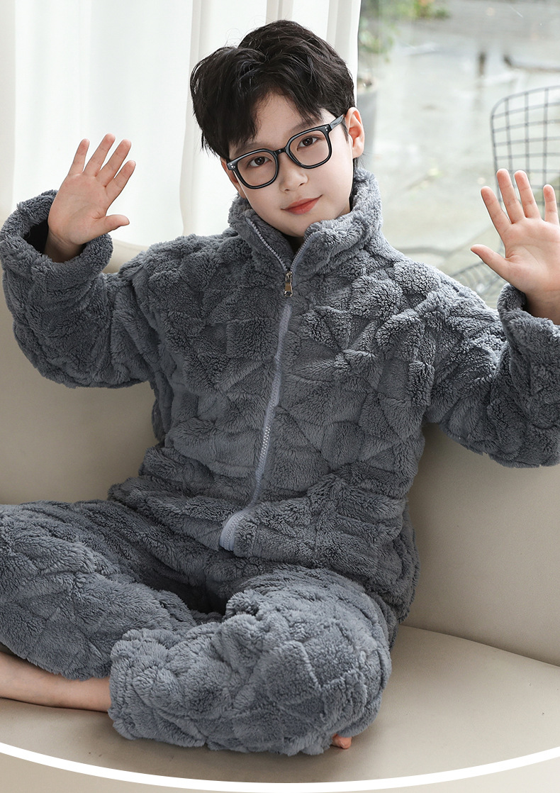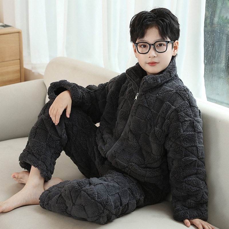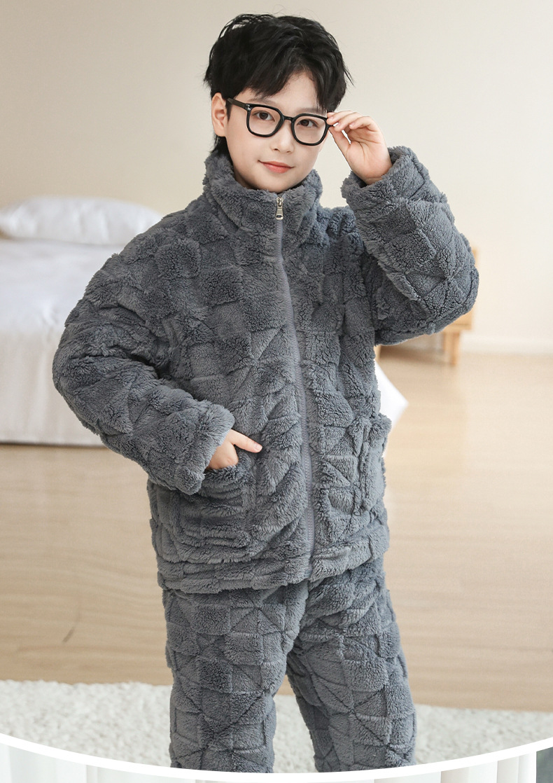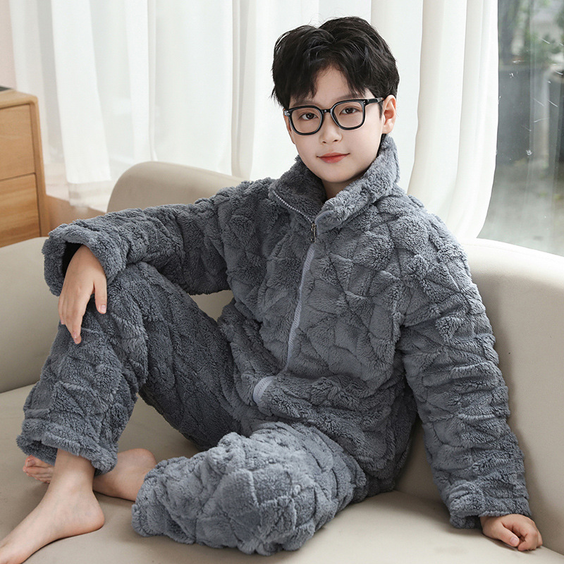 어린이 잠옷 겨울 3 층 면 두꺼운 소년의 플란넬 홈 옷 중 큰 어린이 따뜻한 옷 겨울 세트