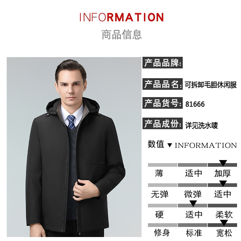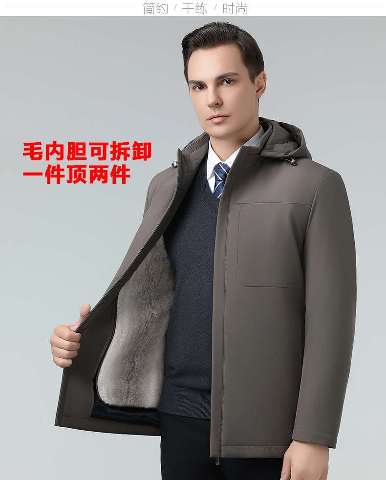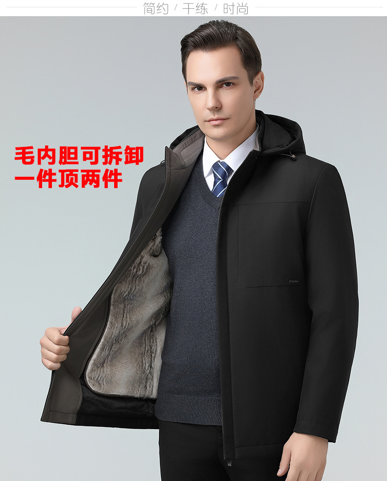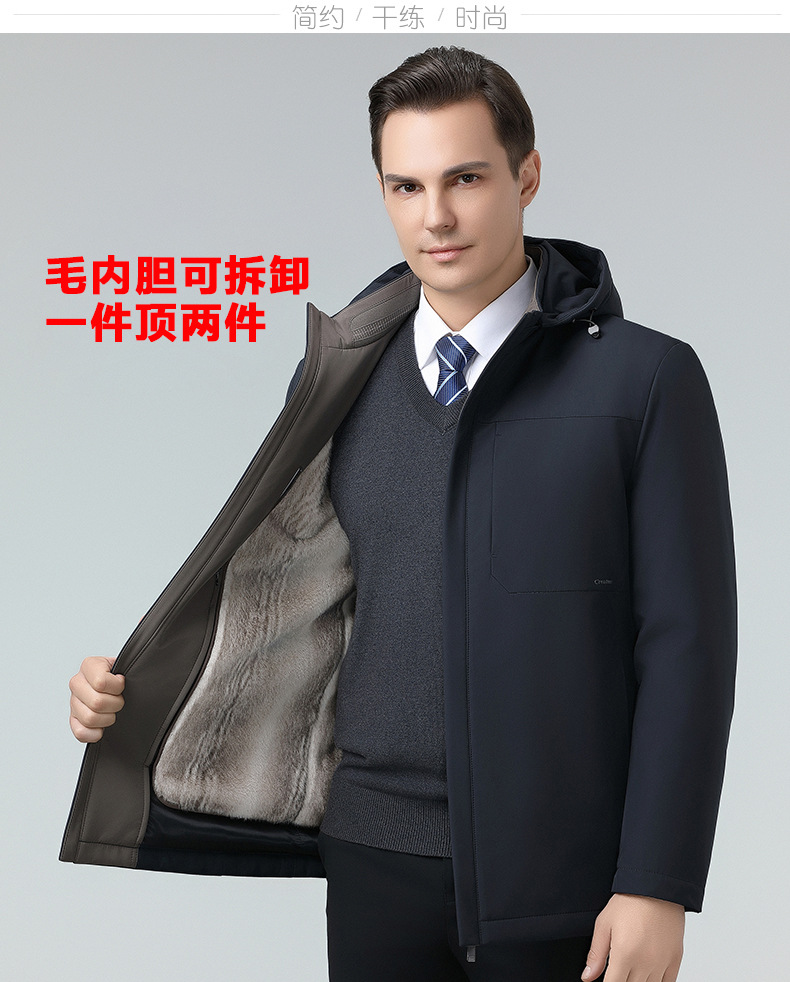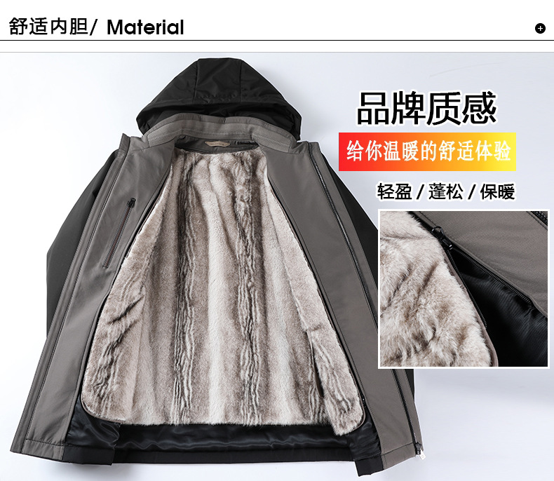 고급 가을과 겨울 짧은 중년 아빠 남자 재킷 기모 밍크 헤어 라이너 이동식 따뜻한 두꺼운 재킷