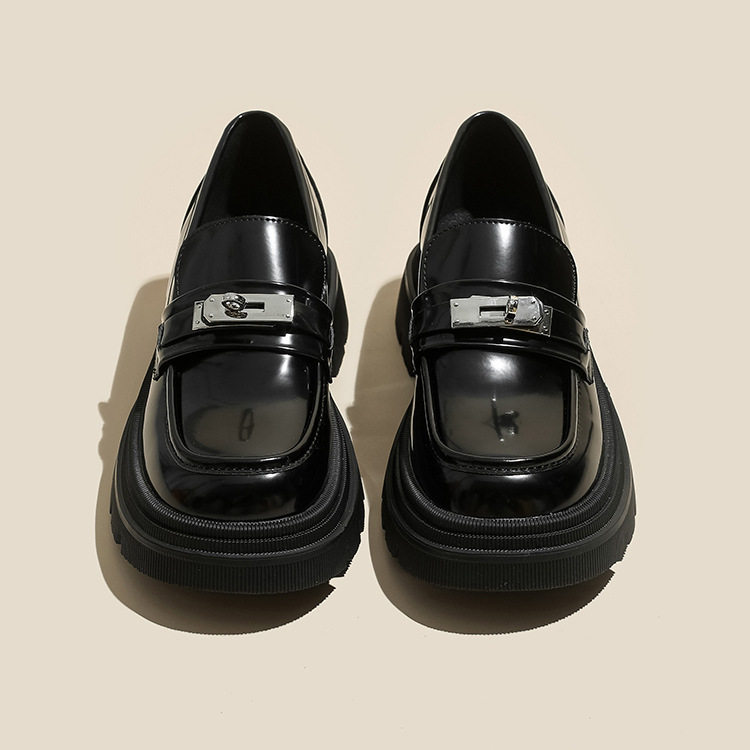 영국 스타일의 작은 가죽 신발 여성용 2024 가을 새로운 빈티지 두꺼운 싱글 레이어 신발 둥근 발가락 낮은 입 로퍼 여성 잠금스토어 가기