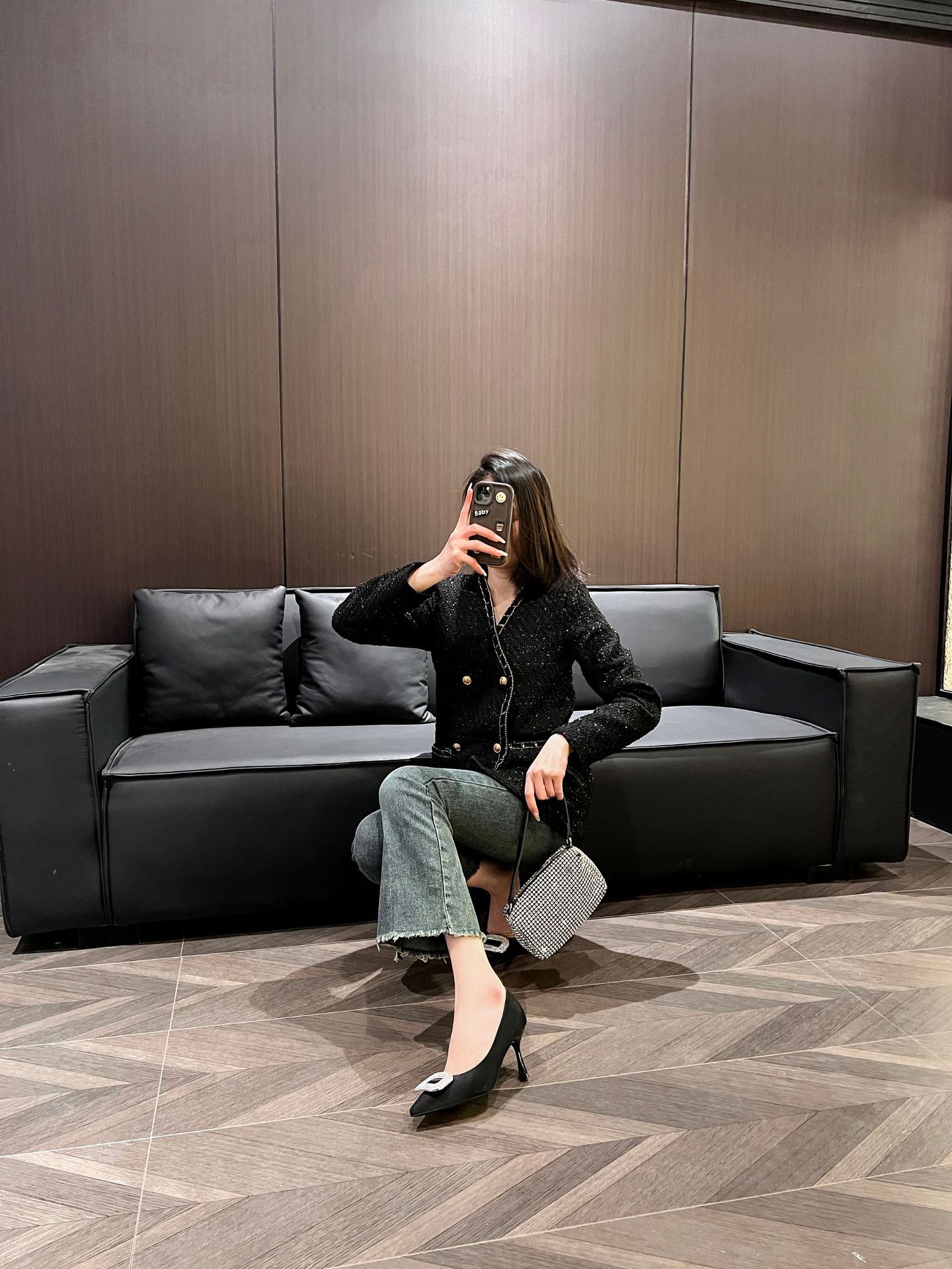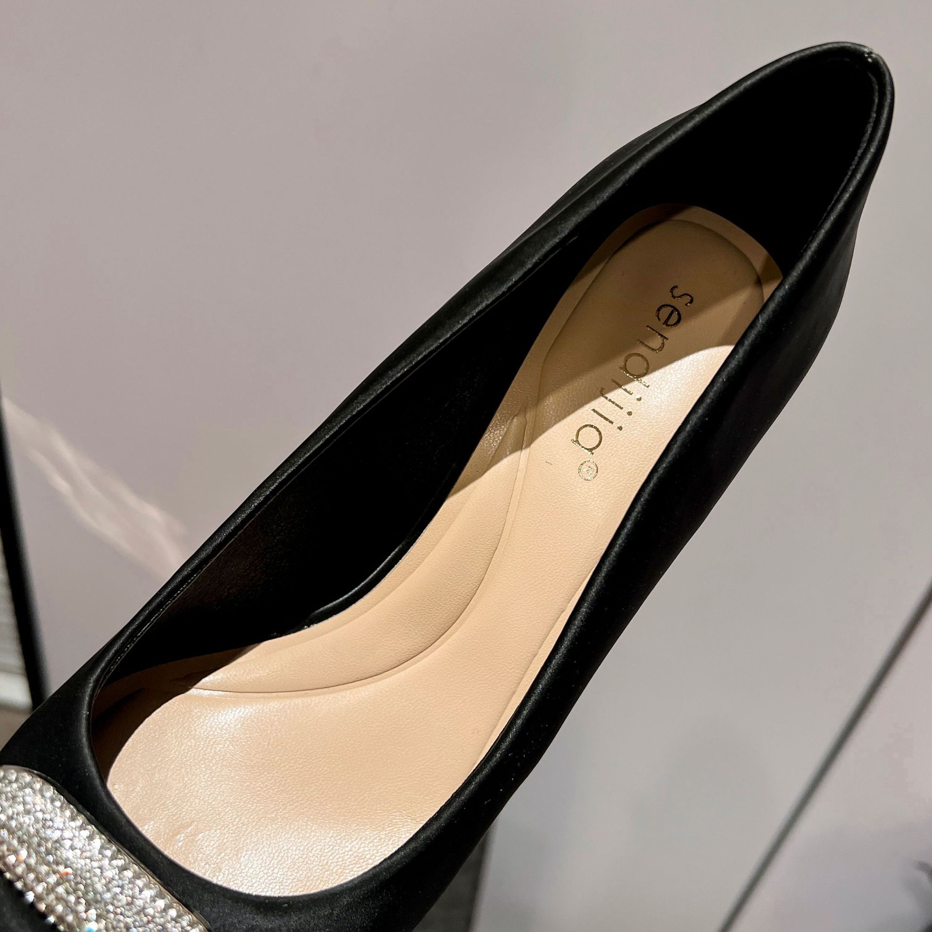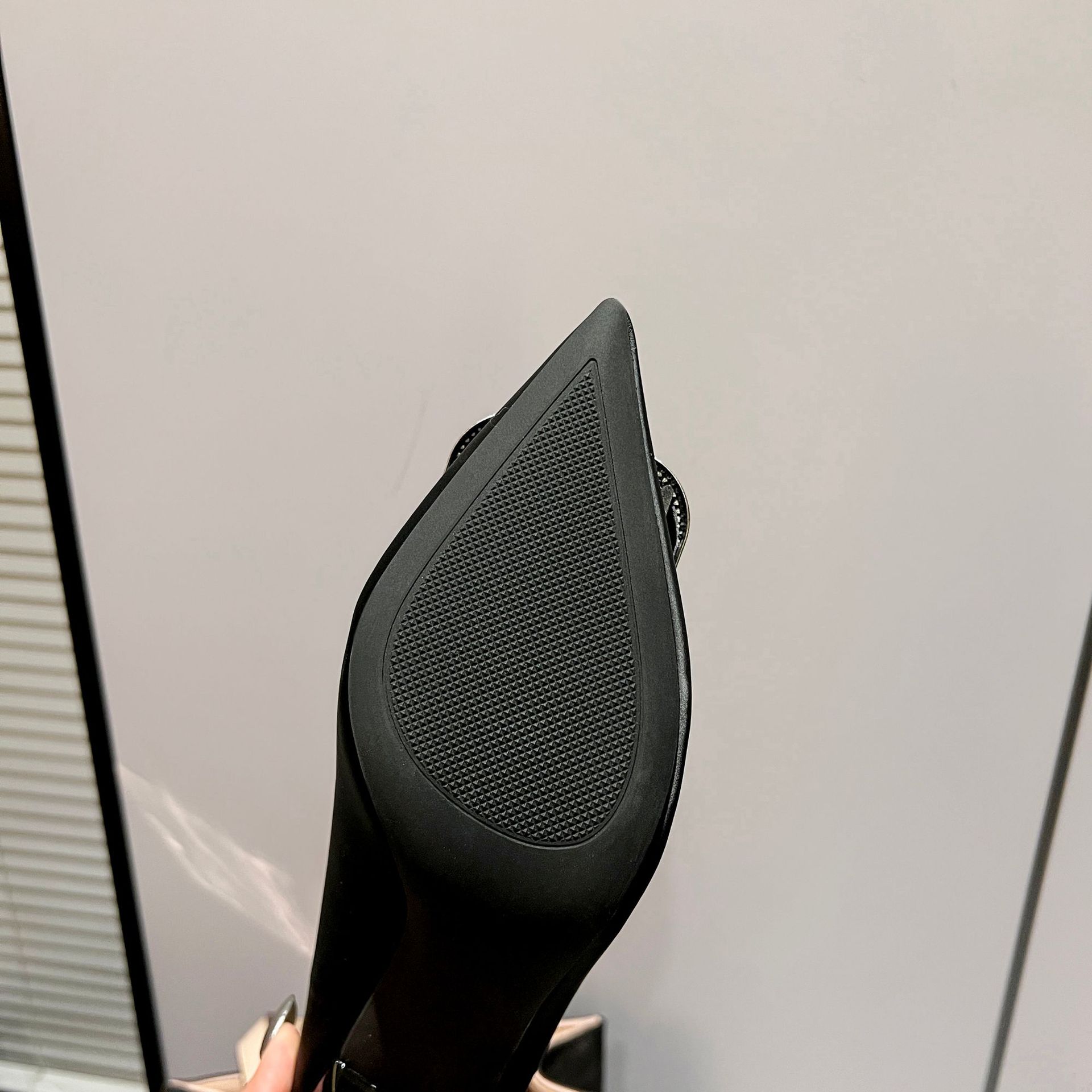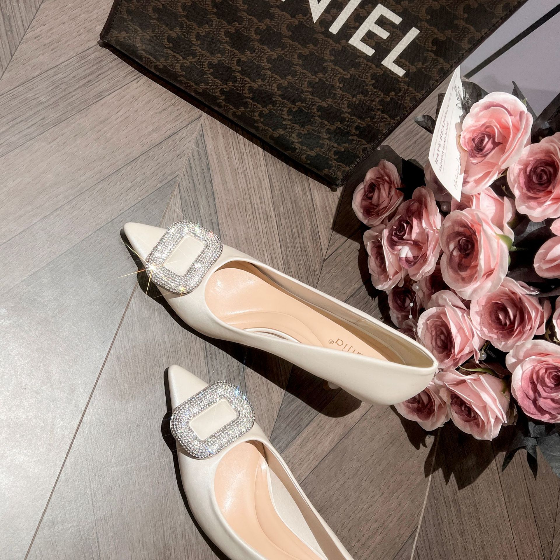 A555-8 하이힐 슈즈 여성용 2024 새로운 통근 스타일 작은 스퀘어 다이아몬드 버클 슈즈 올매치 우아한 포인팅 슈즈스토어 가기