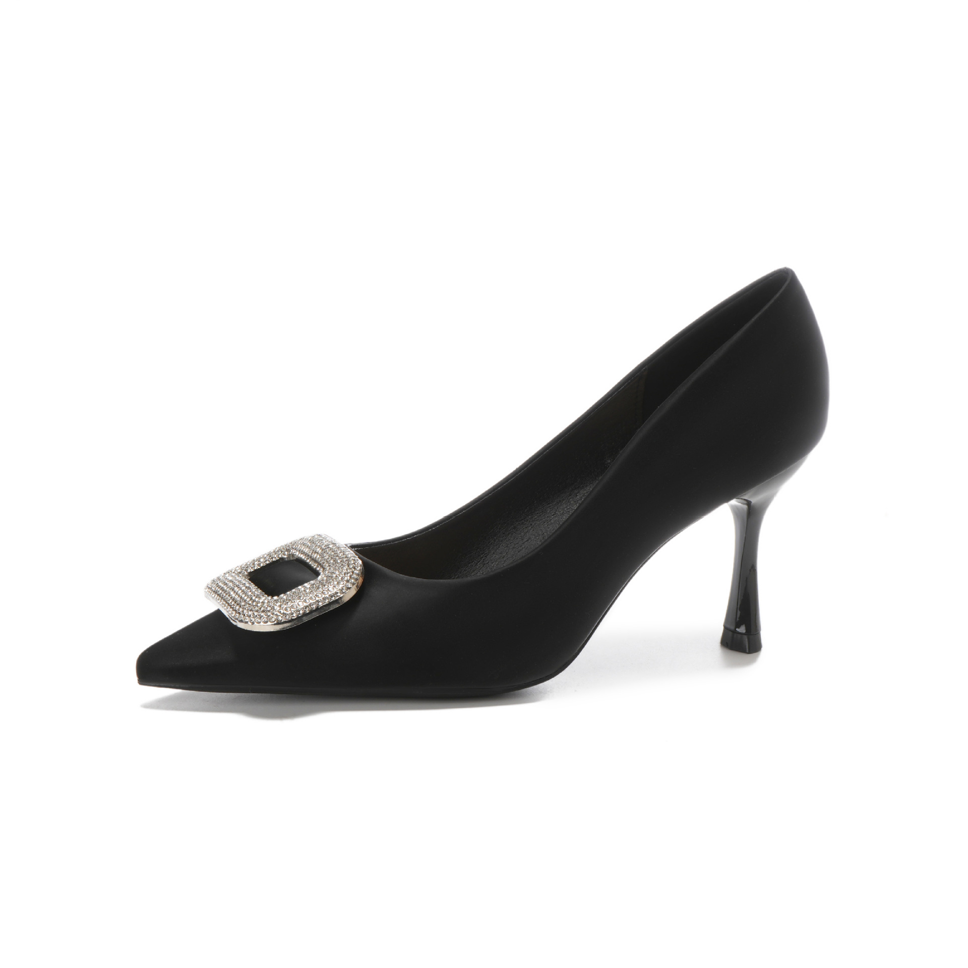 A555-8 하이힐 슈즈 여성용 2024 새로운 통근 스타일 작은 스퀘어 다이아몬드 버클 슈즈 올매치 우아한 포인팅 슈즈