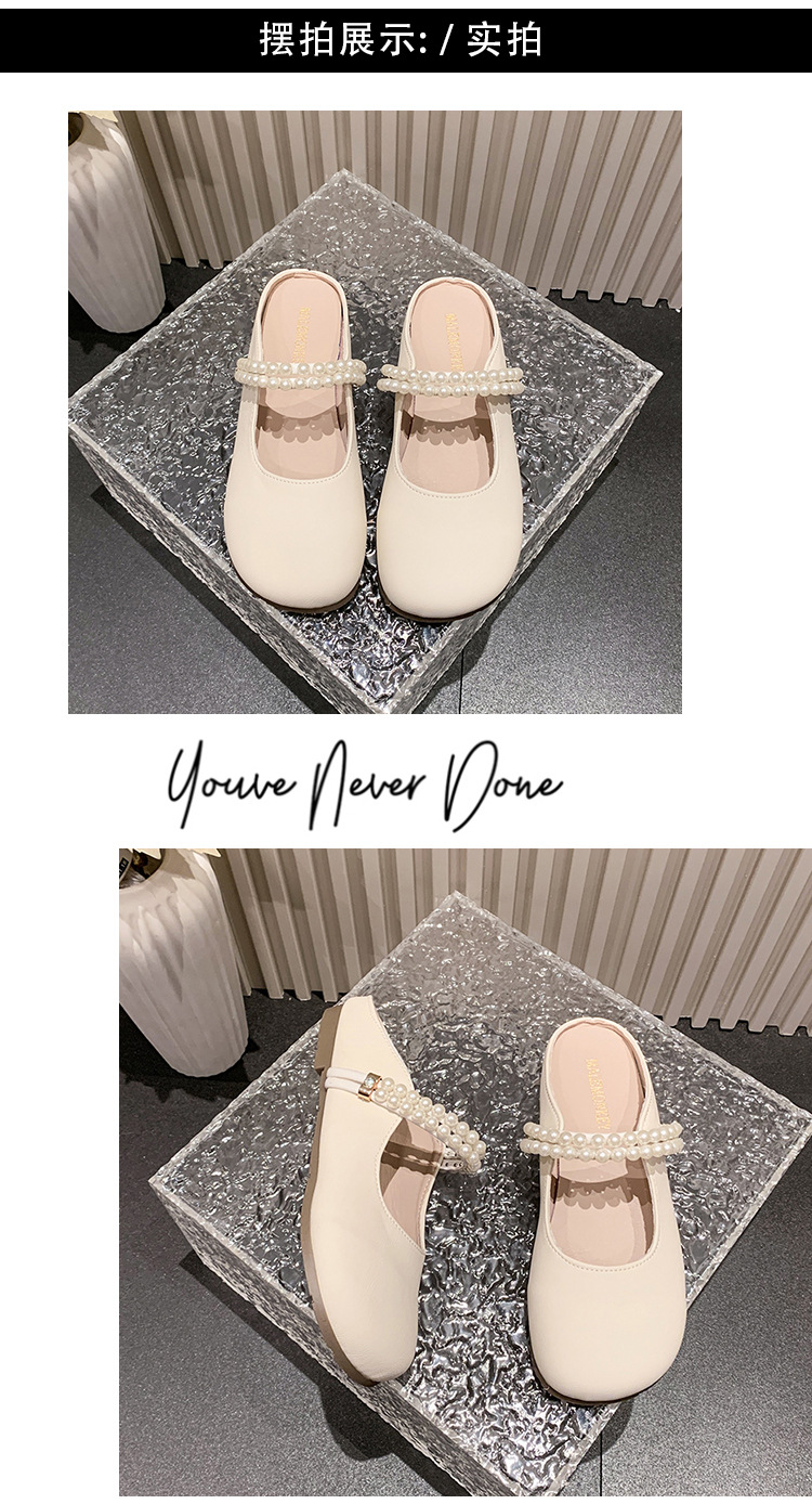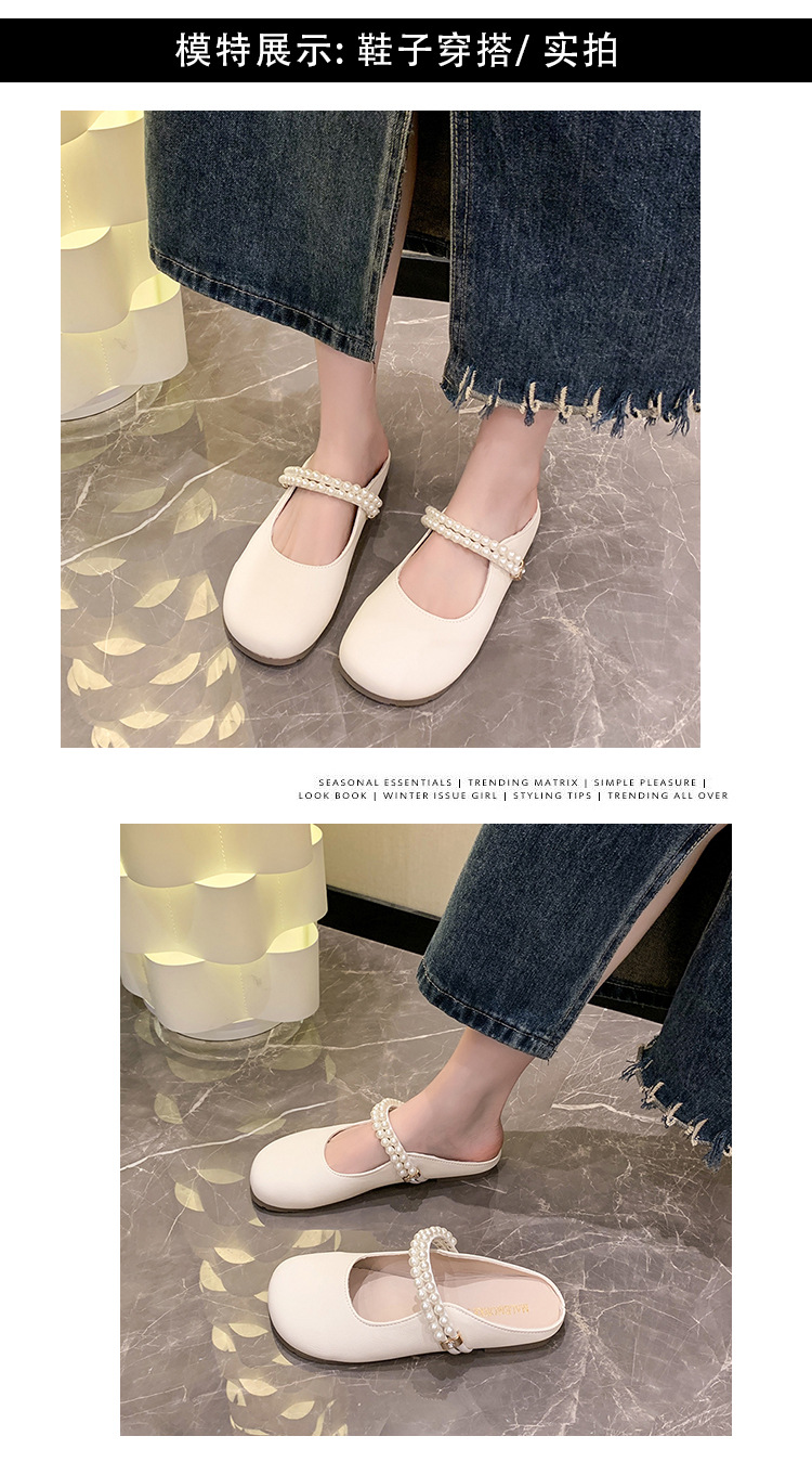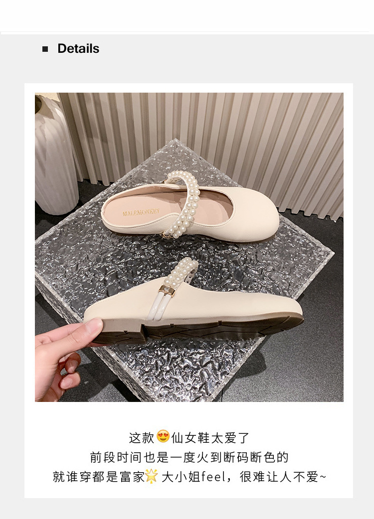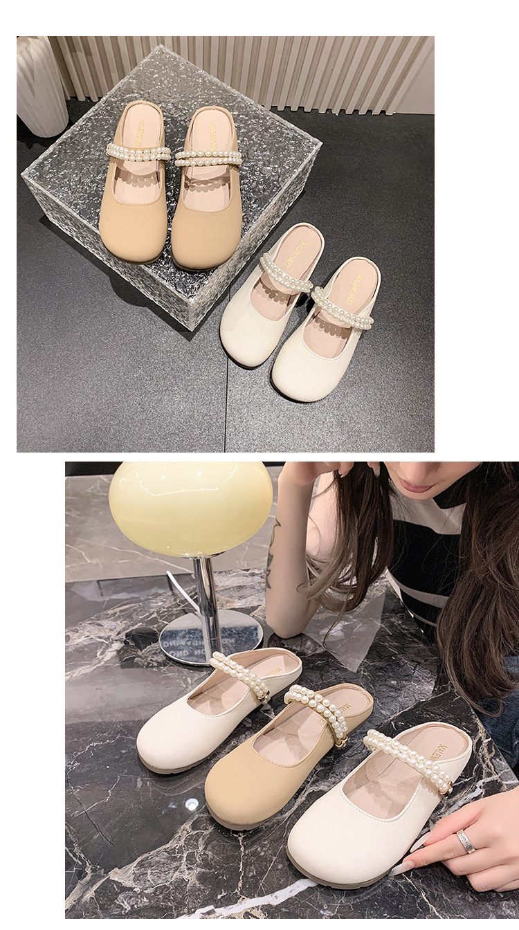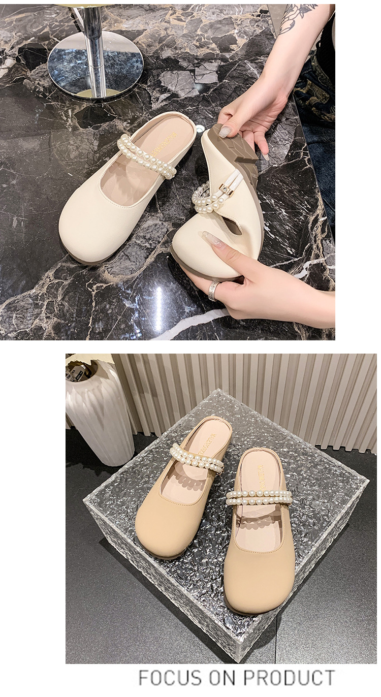 낮은 입 낮은 발 뒤꿈치 Baotou Mary Jane 신발 부드러운 바닥 진주 비니 슬리퍼 여성 외부 착용 2024 여름 부드러운 가죽 슬리퍼