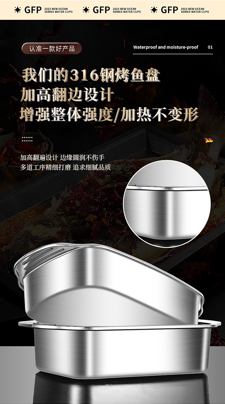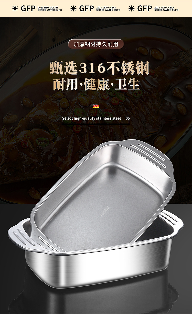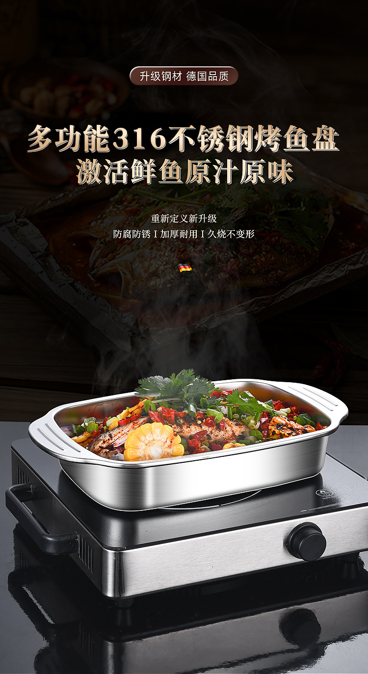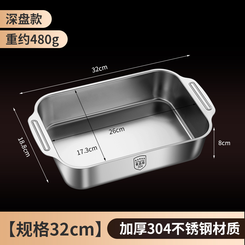 316 스테인레스 스틸 생선 구이 접시 가정용 생선 구이 특수 베이킹 팬 두껍고 심화 된 트레이 사각형 접시 디너 플레이트 식품 등급