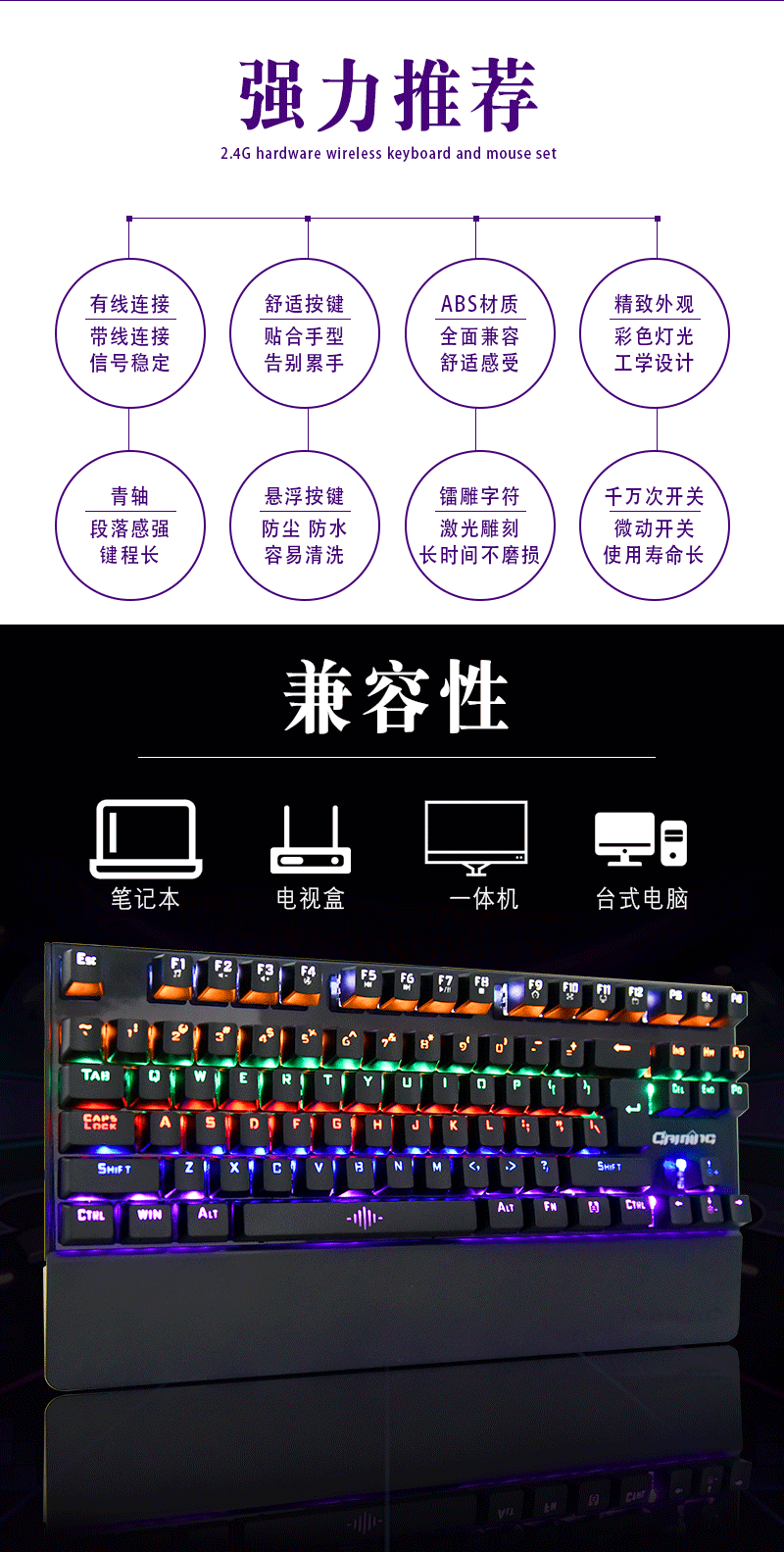 2、我们支持OEM,ODM,支持一件代发、小批量批发、键帽镭雕丝印、公司品牌定制等。
