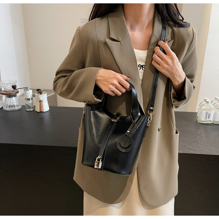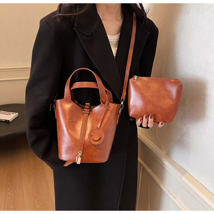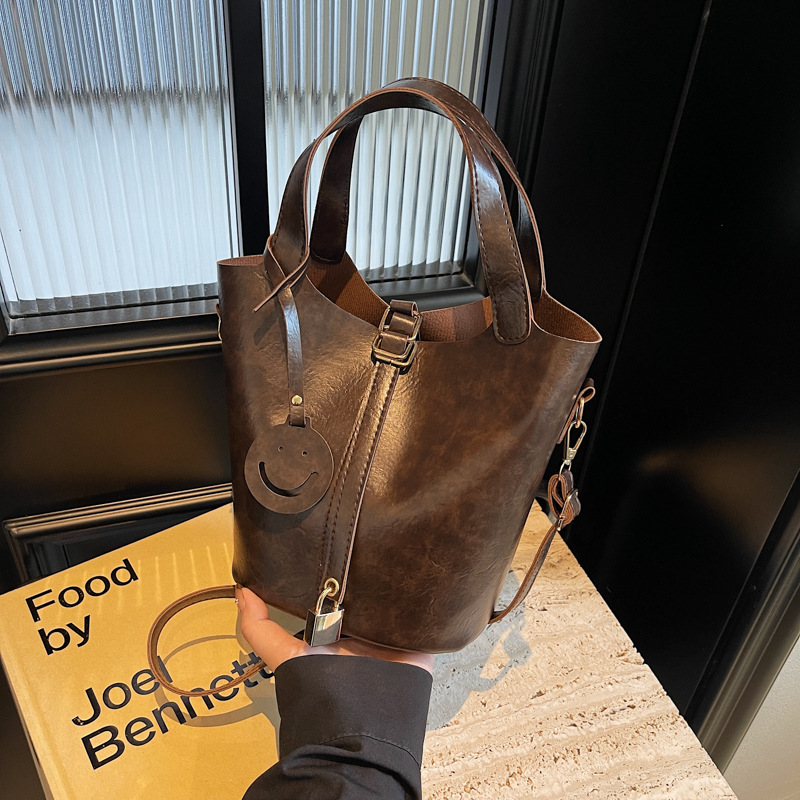 Maillard Vintage 핸드 헬드 야채 바구니 가방 여성의 가을과 겨울 2024 새로운 유행 유행 양동이 가방 모든 매치 크로스 바디 백