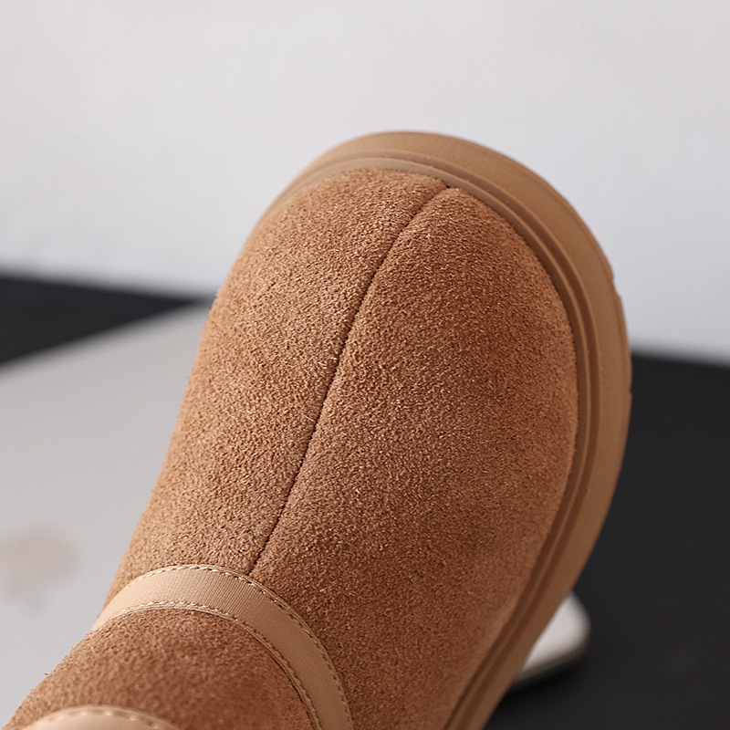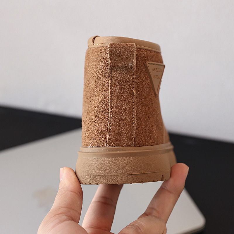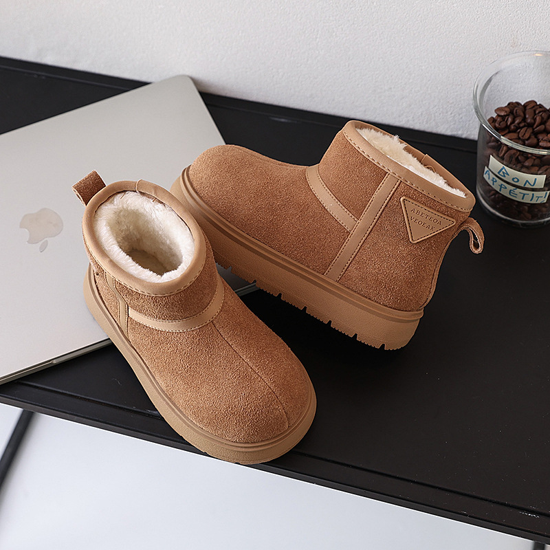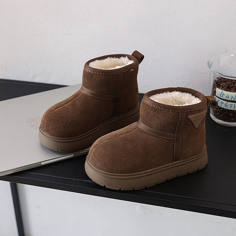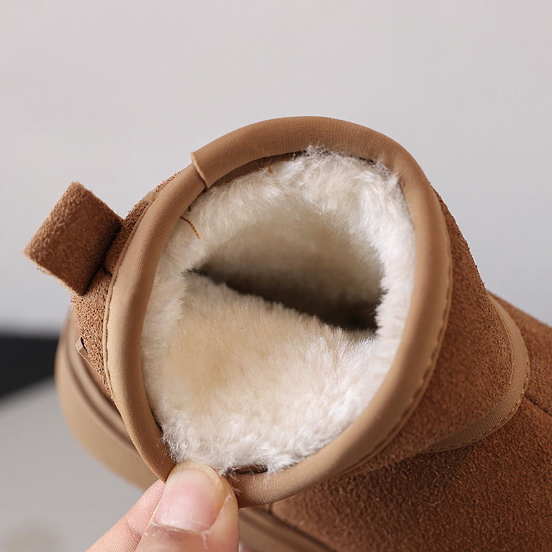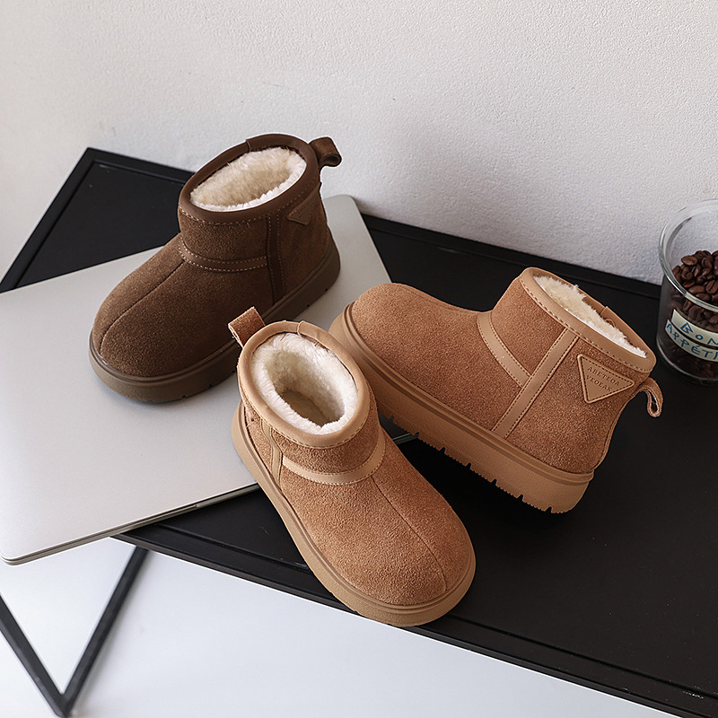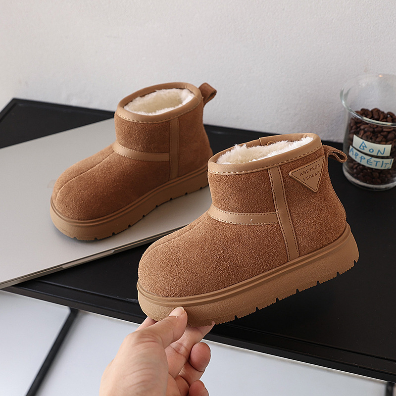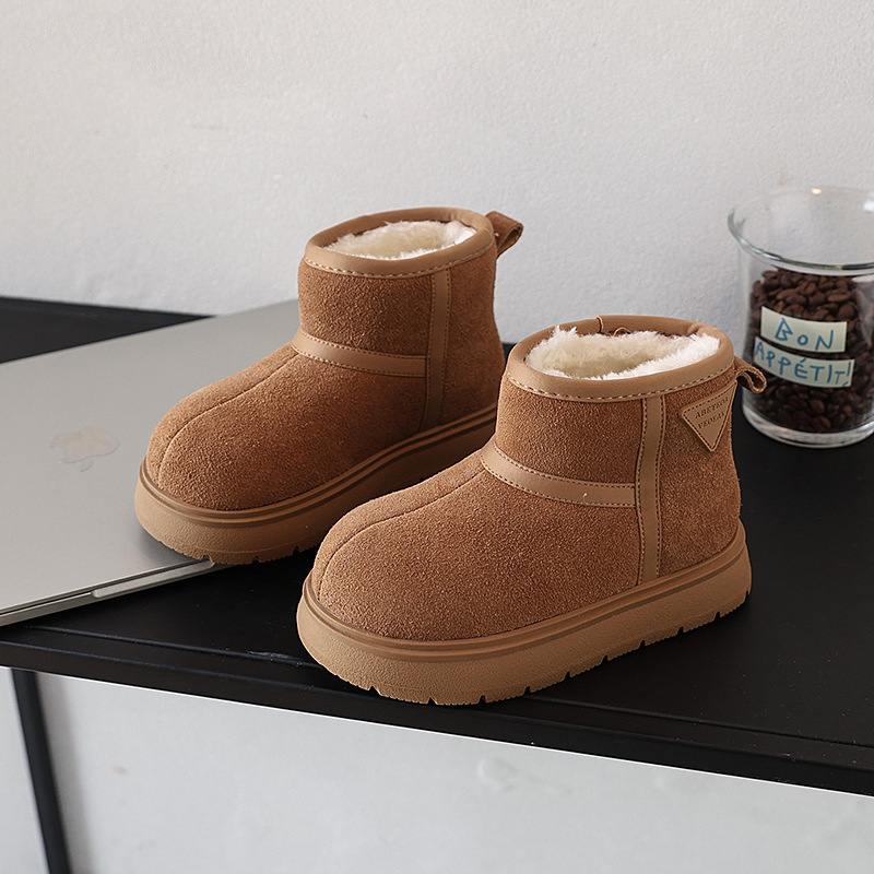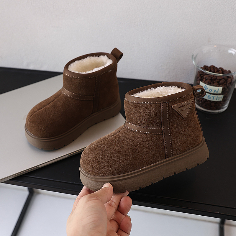 어린이 눈 부츠 2024 겨울 폭발 소녀 큰 머리 가죽 스노우 부츠 아이들의 두꺼운 따뜻한 눈 코튼