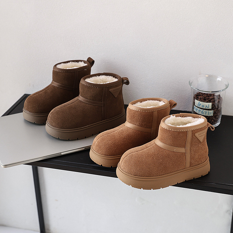 어린이 눈 부츠 2024 겨울 폭발 소녀 큰 머리 가죽 스노우 부츠 아이들의 두꺼운 따뜻한 눈 코튼스토어 가기