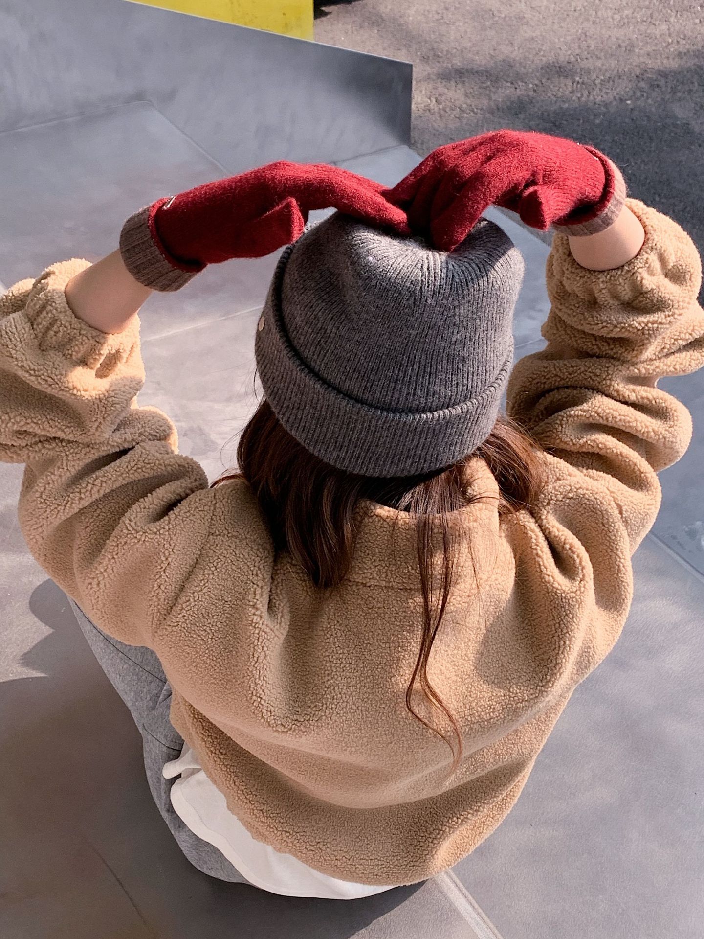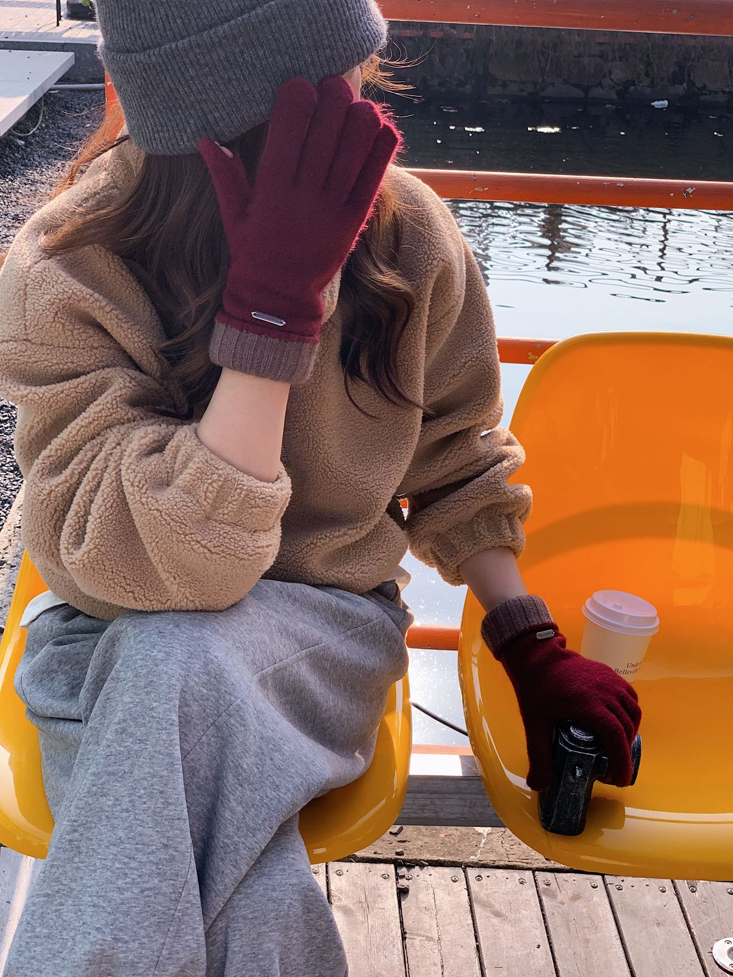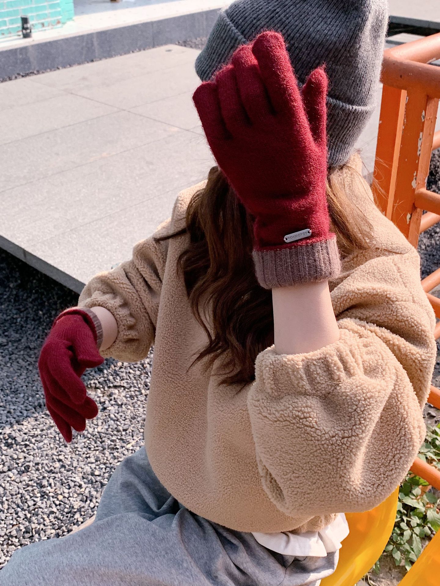 가을과 겨울 새로운 두꺼운 틈새 디자인 양 시어링 장갑 터치 스크린 유행 니트 야외 방풍 따뜻한 장갑스토어 가기