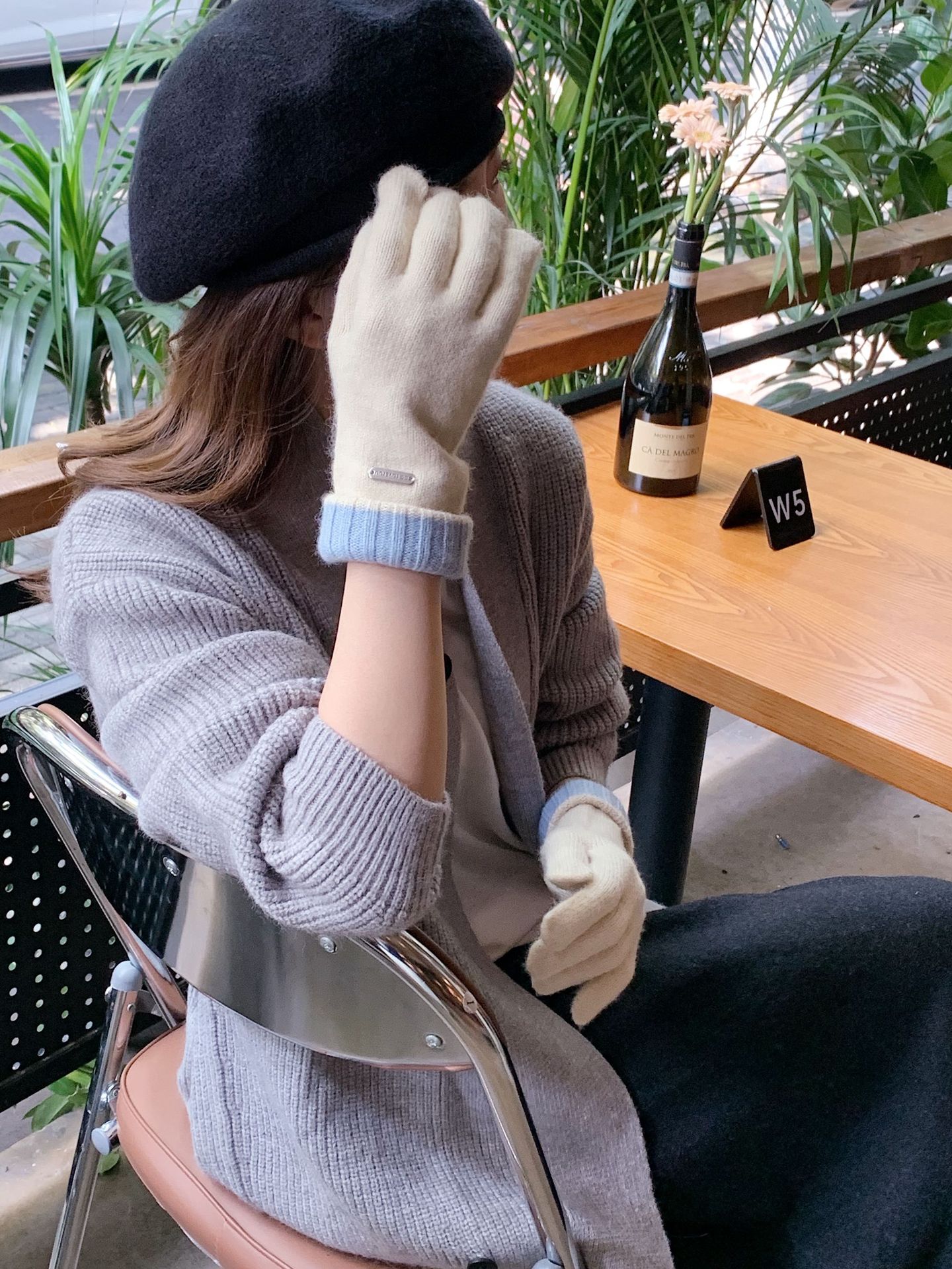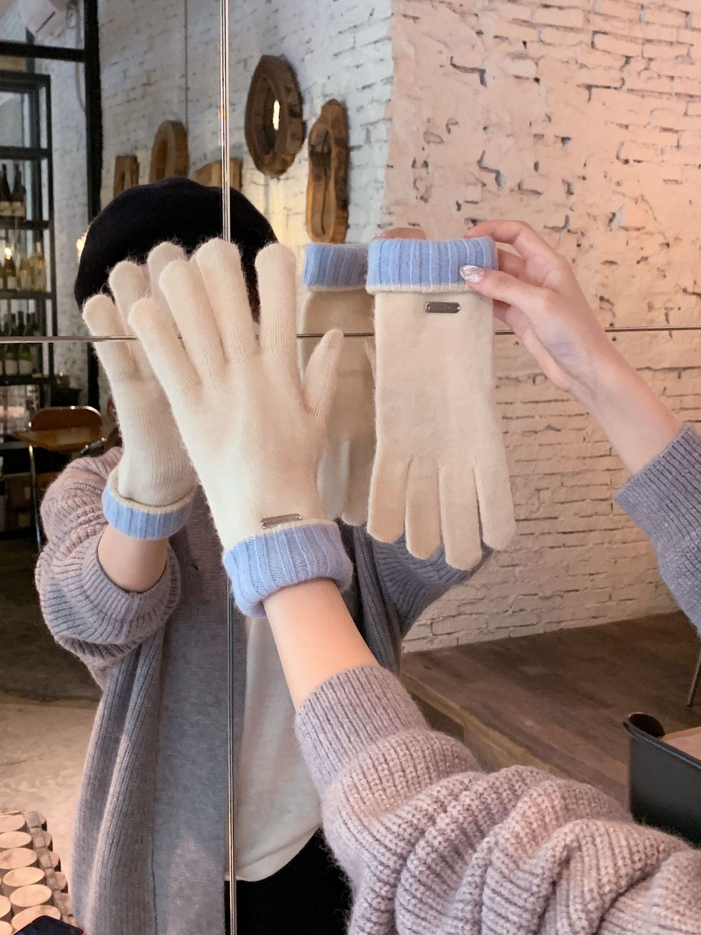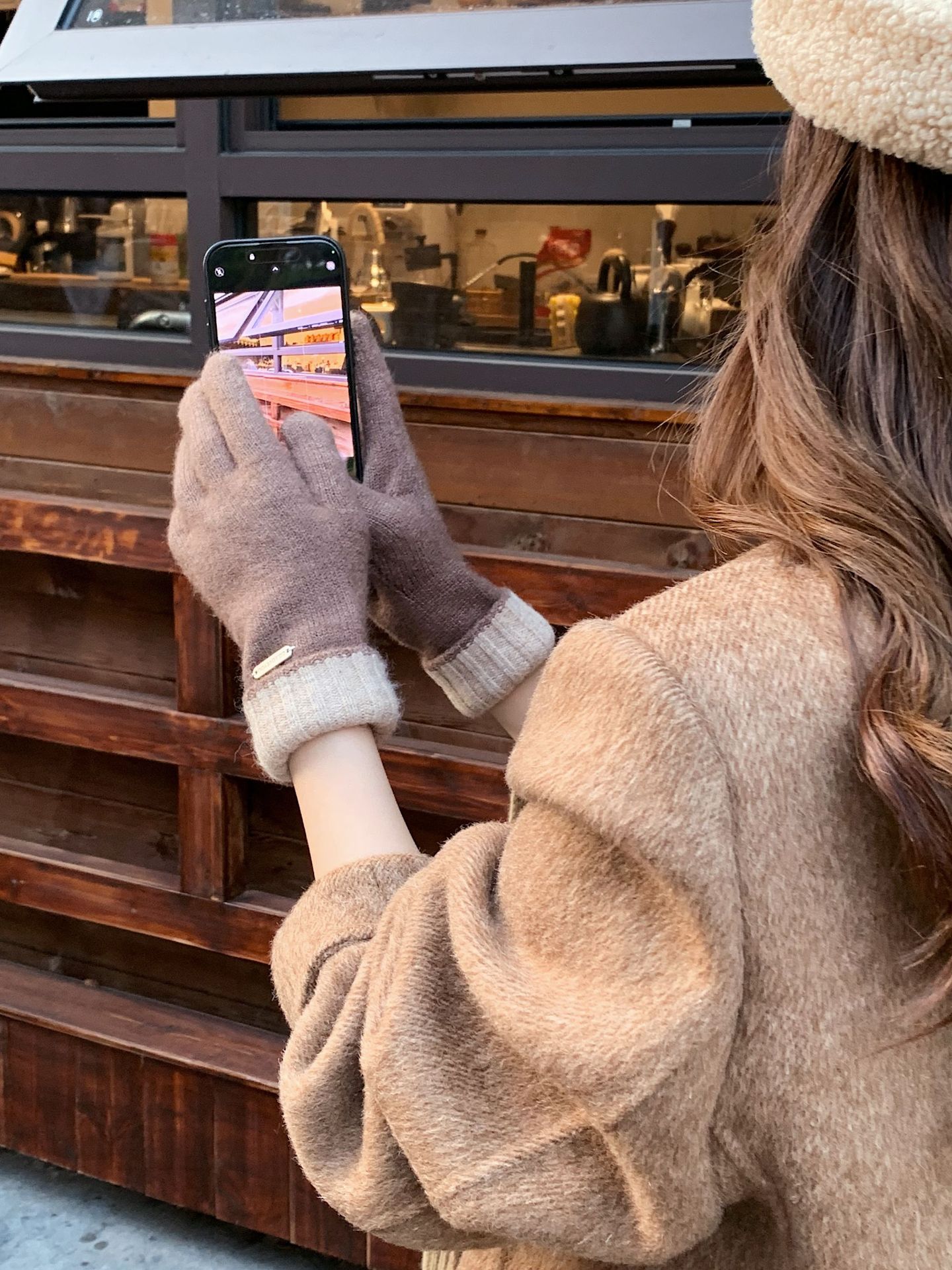 가을과 겨울 새로운 두꺼운 틈새 디자인 양 시어링 장갑 터치 스크린 유행 니트 야외 방풍 따뜻한 장갑스토어 가기