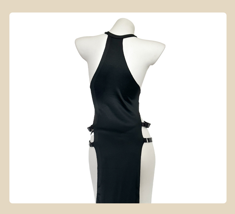새로운 섹시한 속옷, 순수한 욕망, 높은 트임의 롱 스커트, 치파오 스타일 잠옷, 여성용 핫하고 열정적인 노출 없는 유니폼 세트 8424스토어 가기