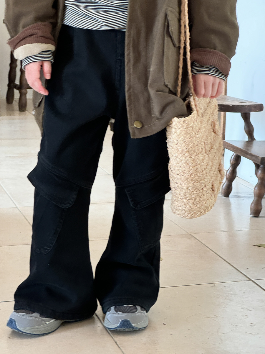 반품 불가 여아 바지 아동 겨울 기모 캐주얼 바지 미국 레트로 포켓 워크웨어 나팔바지스토어 가기
