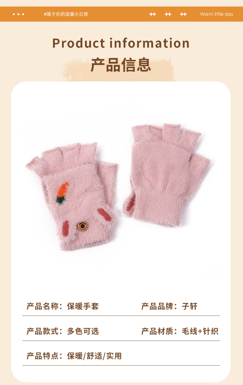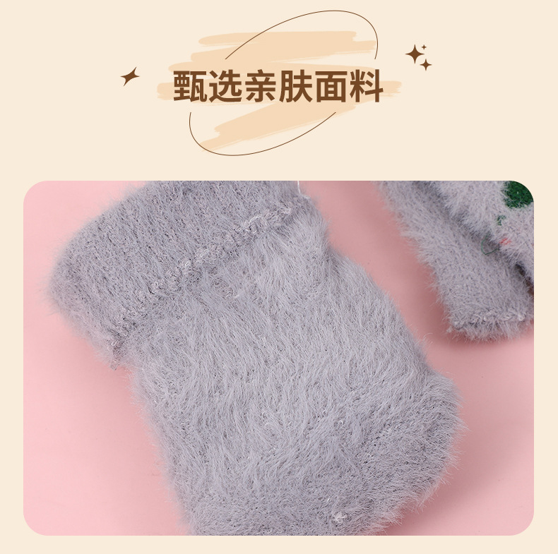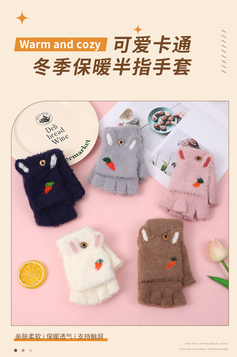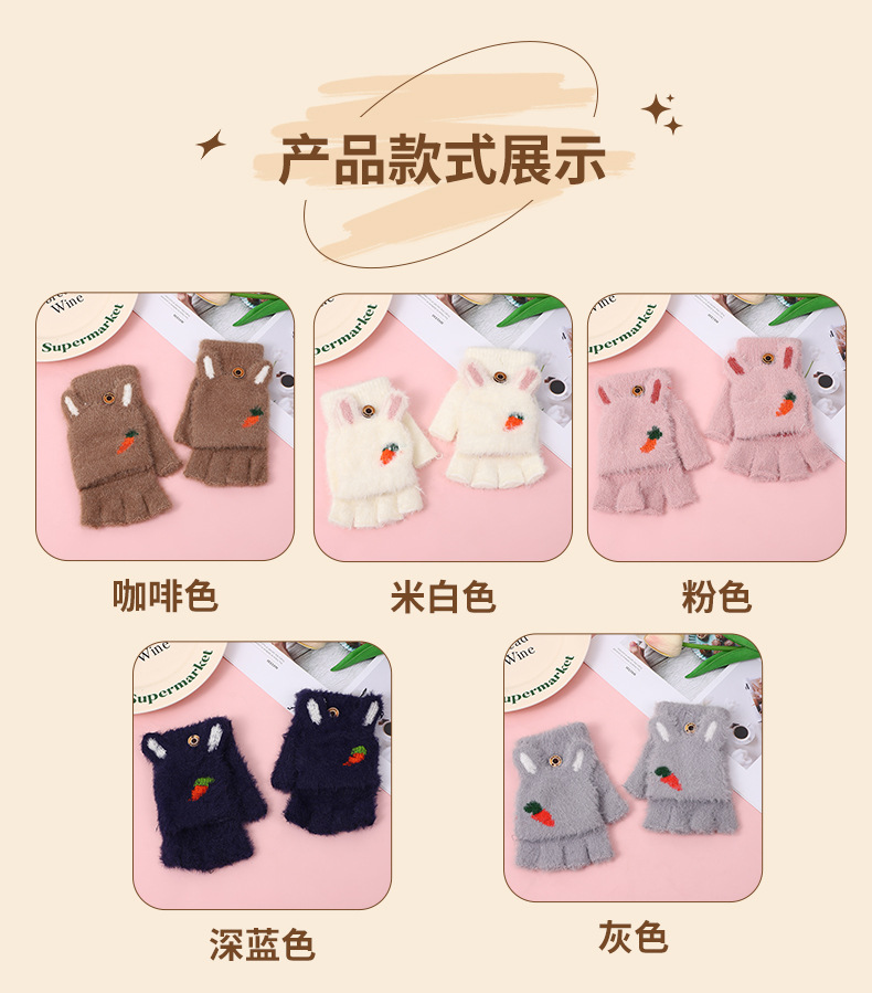 여성용 장갑 겨울 학생 어린이 반 손가락 플립 만화 봉제 가을과 겨울 기모 두꺼운 따뜻한 장갑 도매