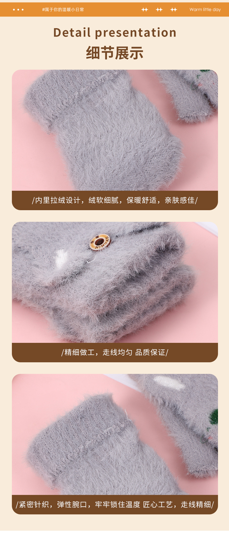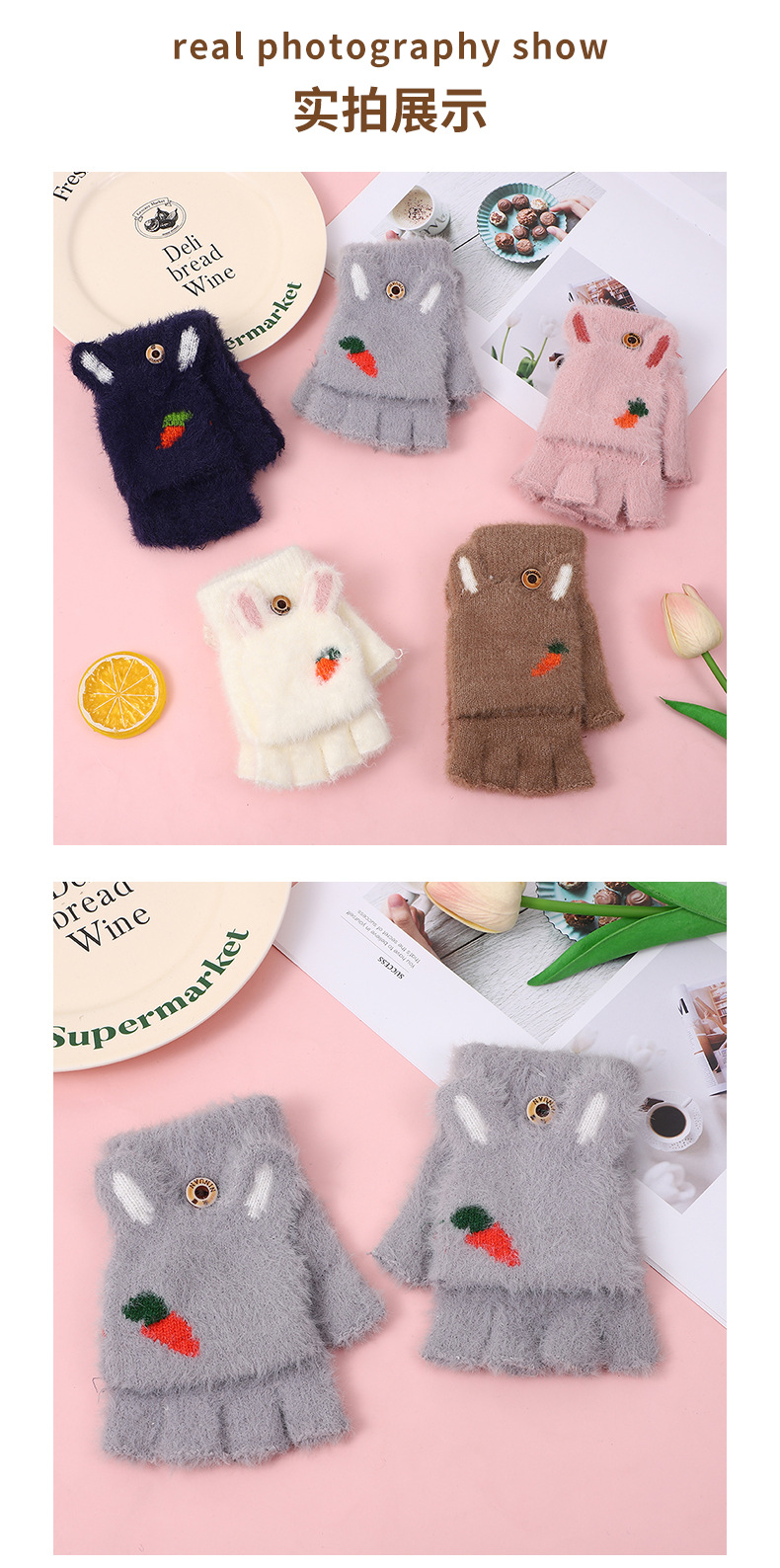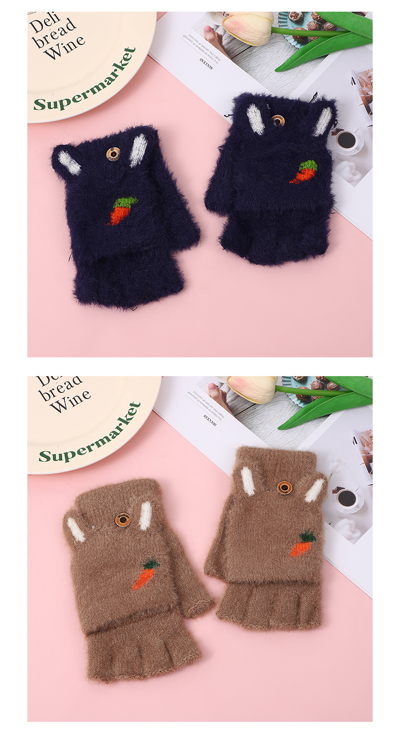 여성용 장갑 겨울 학생 어린이 반 손가락 플립 만화 봉제 가을과 겨울 기모 두꺼운 따뜻한 장갑 도매
