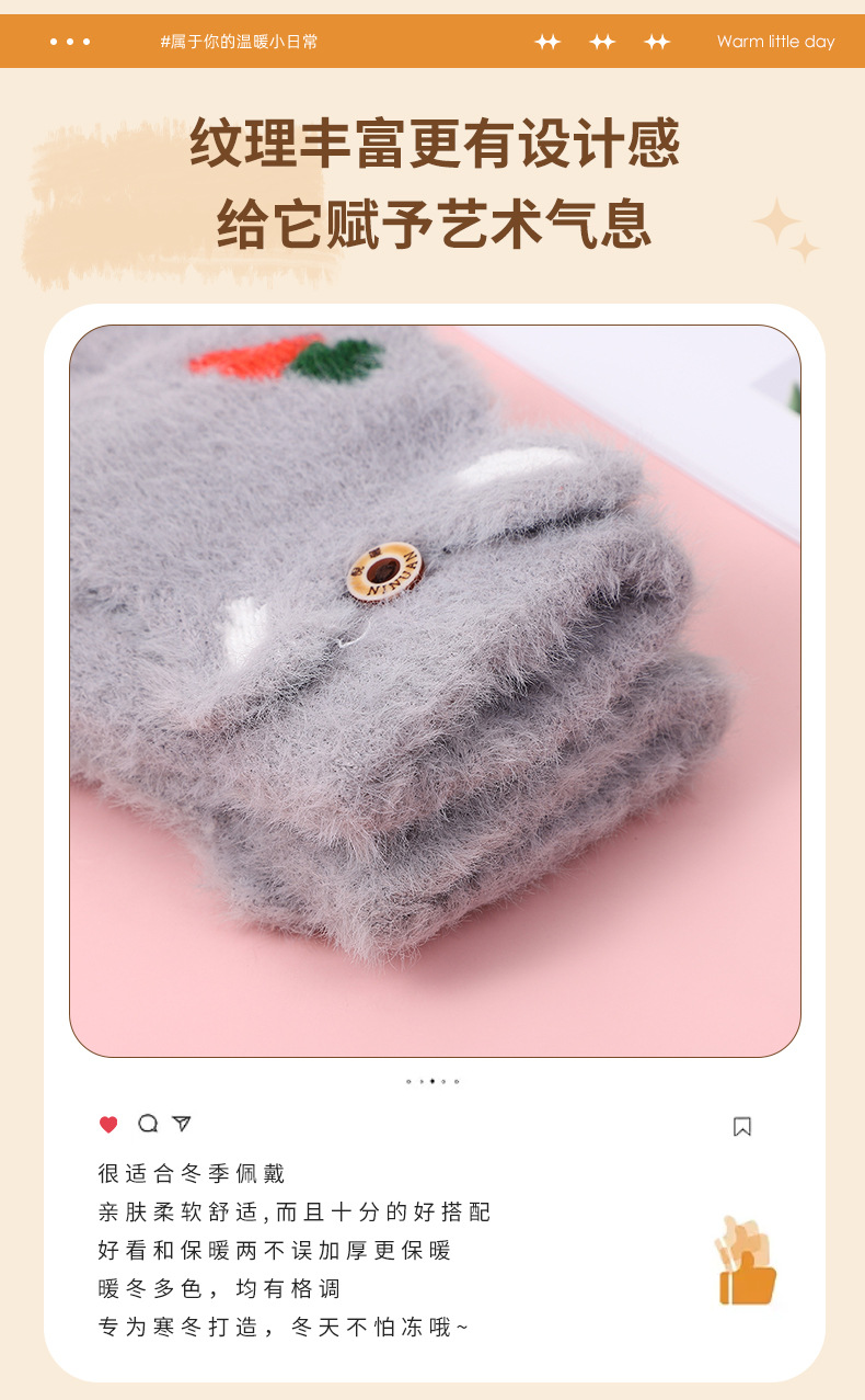 여성용 장갑 겨울 학생 어린이 반 손가락 플립 만화 봉제 가을과 겨울 기모 두꺼운 따뜻한 장갑 도매스토어 가기