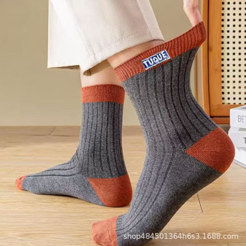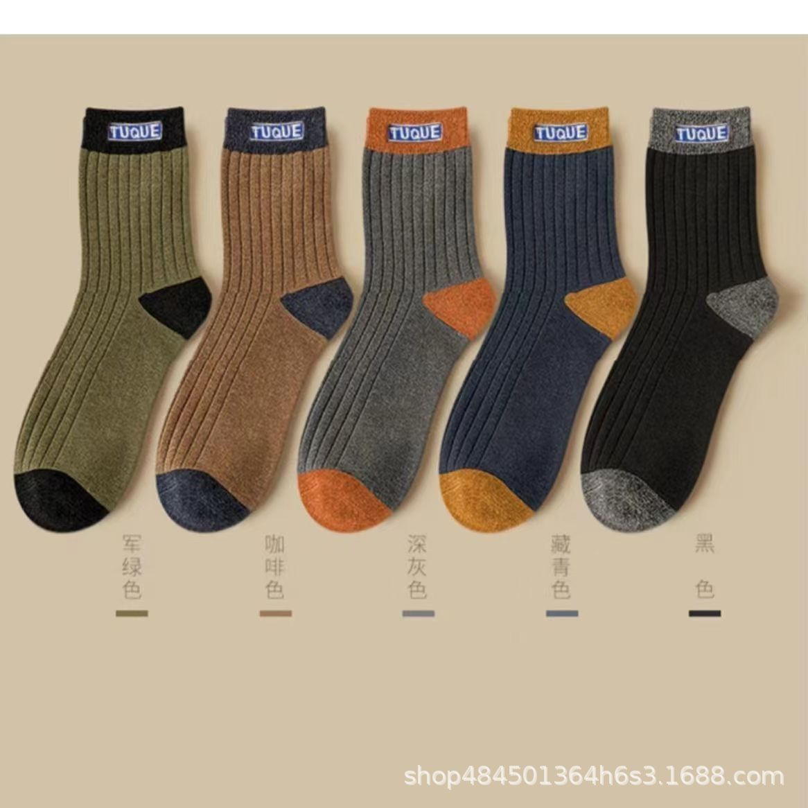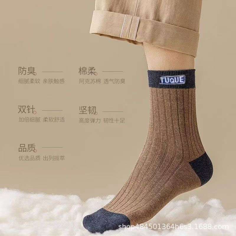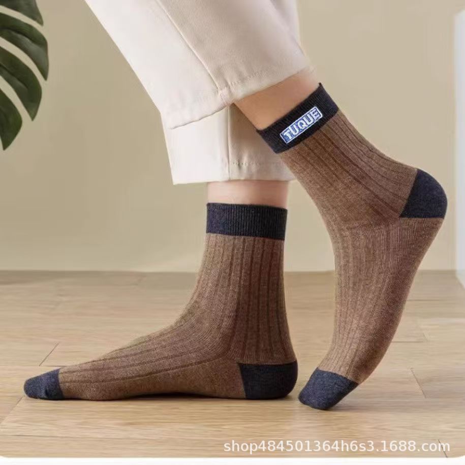 Zhuji Hosiery 중장 양말 땀 흡수 및 탈취제 가을 및 겨울 면 남성 양말 편지 높은 튜브 면 양말 화이트 핏 스포츠 스타킹스토어 가기