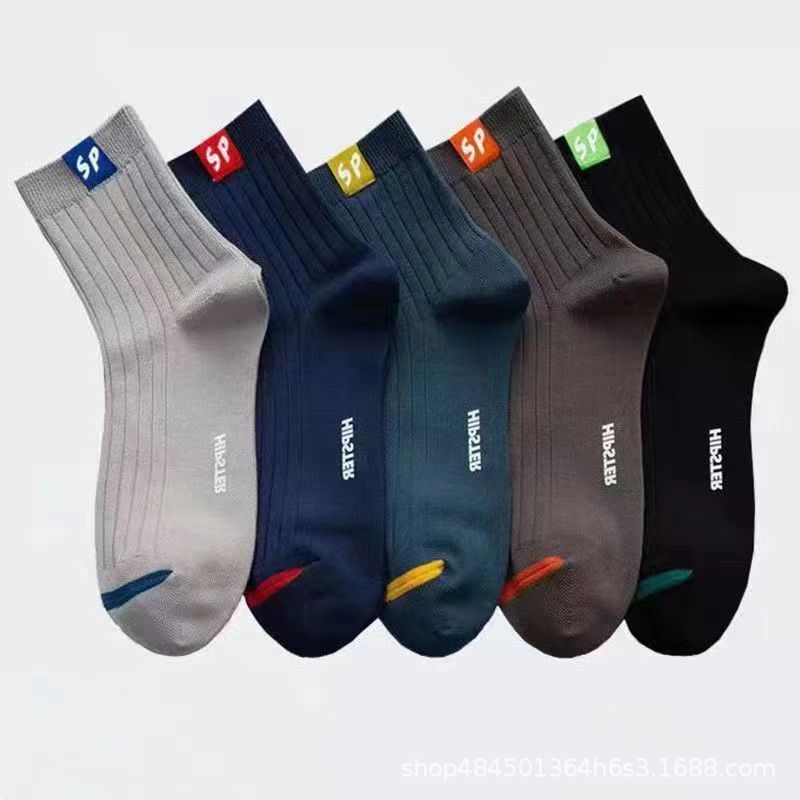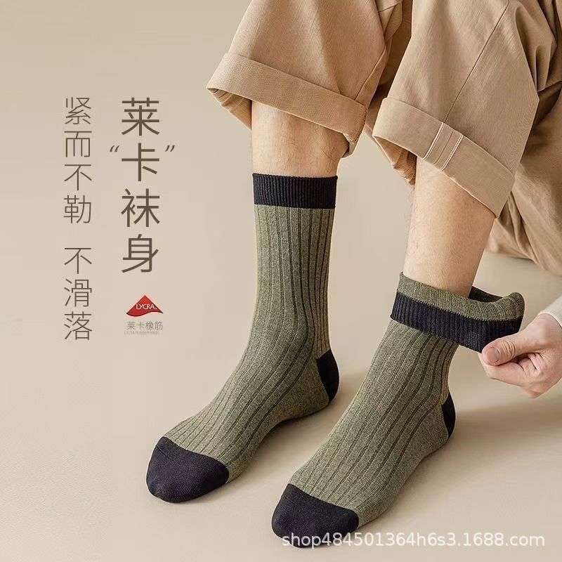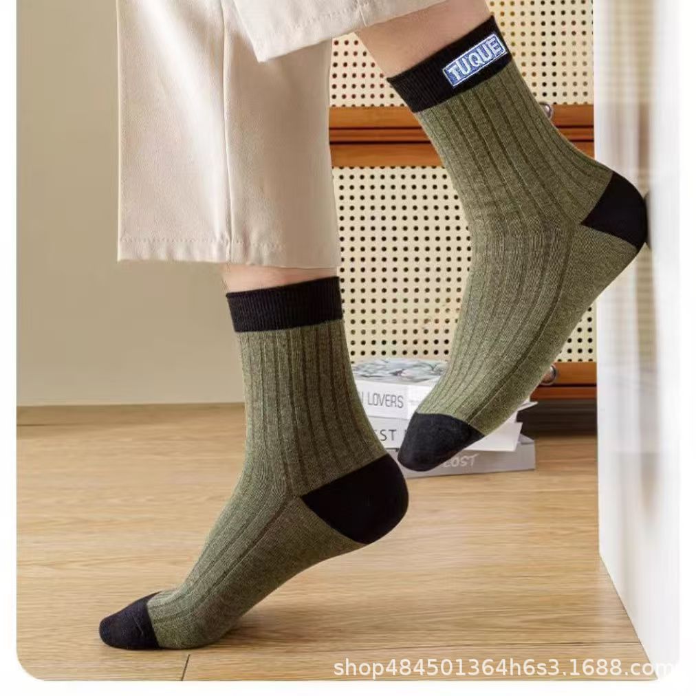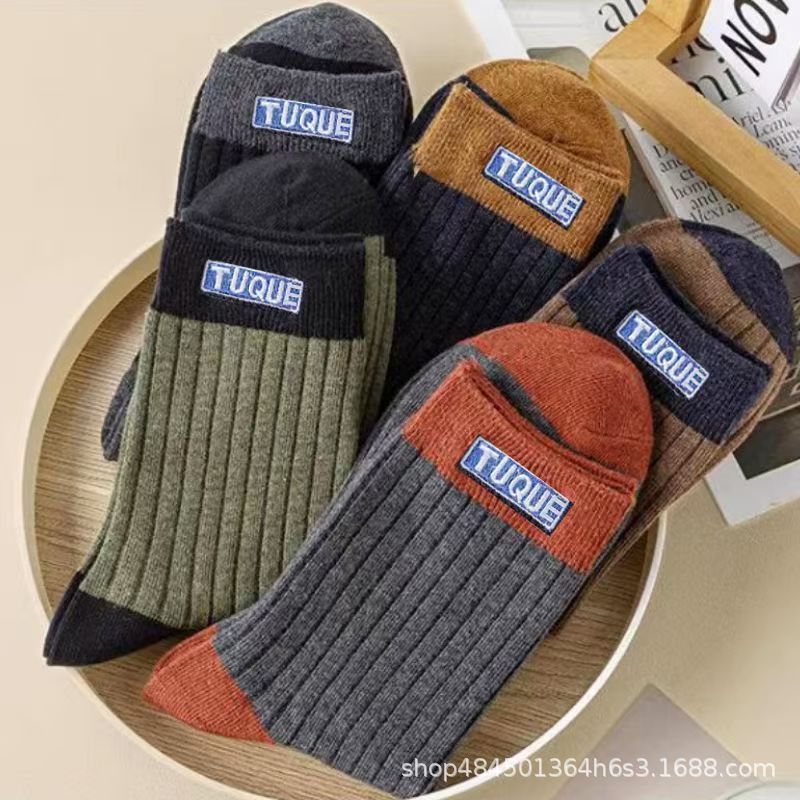 Zhuji Hosiery 중장 양말 땀 흡수 및 탈취제 가을 및 겨울 면 남성 양말 편지 높은 튜브 면 양말 화이트 핏 스포츠 스타킹스토어 가기