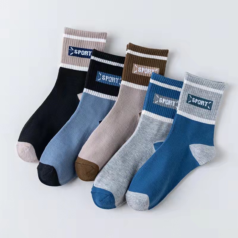 Zhuji Hosiery 중장 양말 땀 흡수 및 탈취제 가을 및 겨울 면 남성 양말 편지 높은 튜브 면 양말 화이트 핏 스포츠 스타킹
