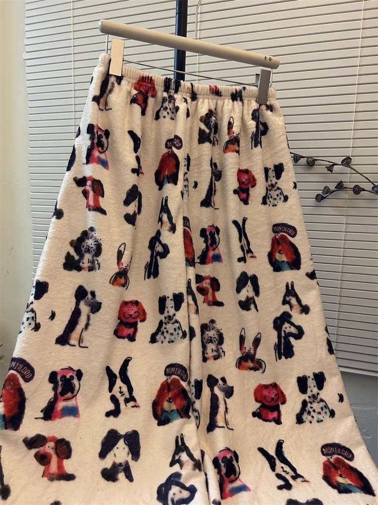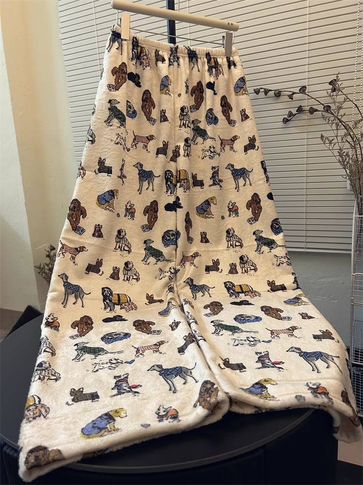 키가 큰 줄 파자마 바지 만화 두꺼운 플란넬 스트레이트 와이드 레그 인 겨울 바지 귀여운 강아지 바지