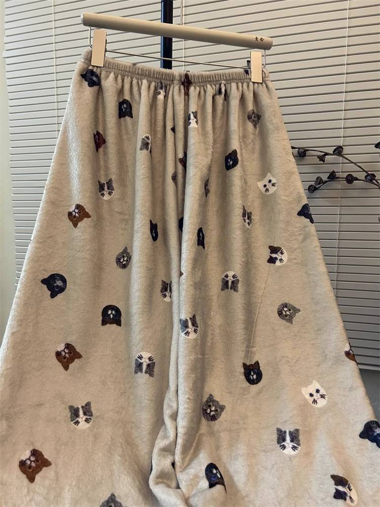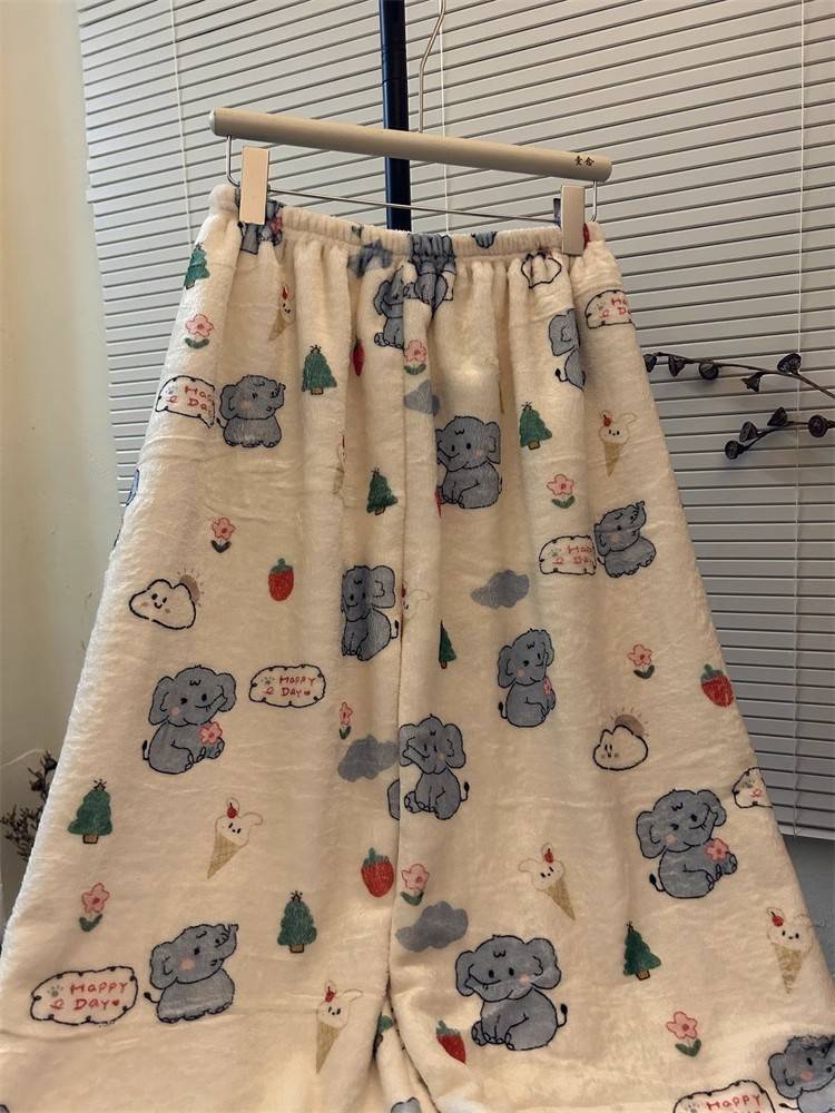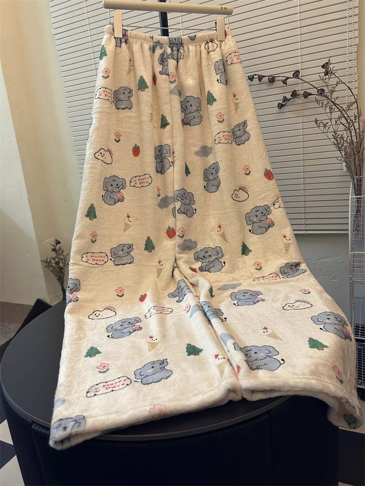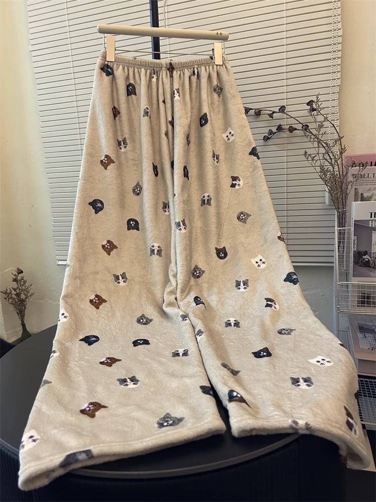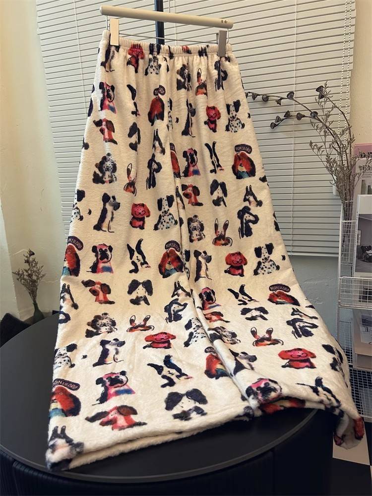 키가 큰 줄 파자마 바지 만화 두꺼운 플란넬 스트레이트 와이드 레그 인 겨울 바지 귀여운 강아지 바지스토어 가기