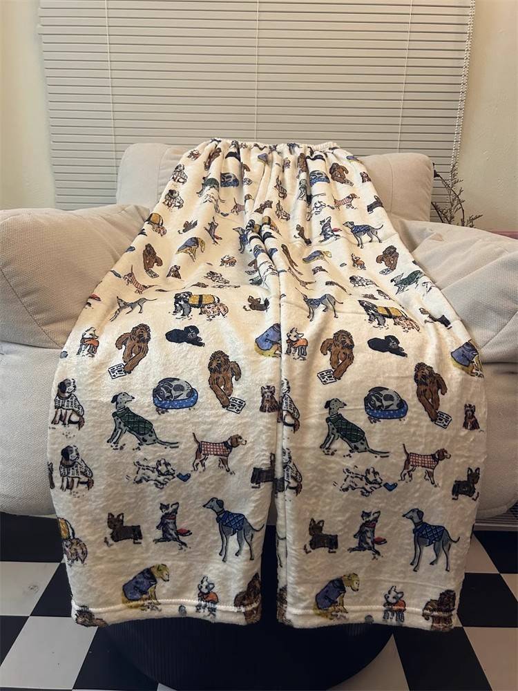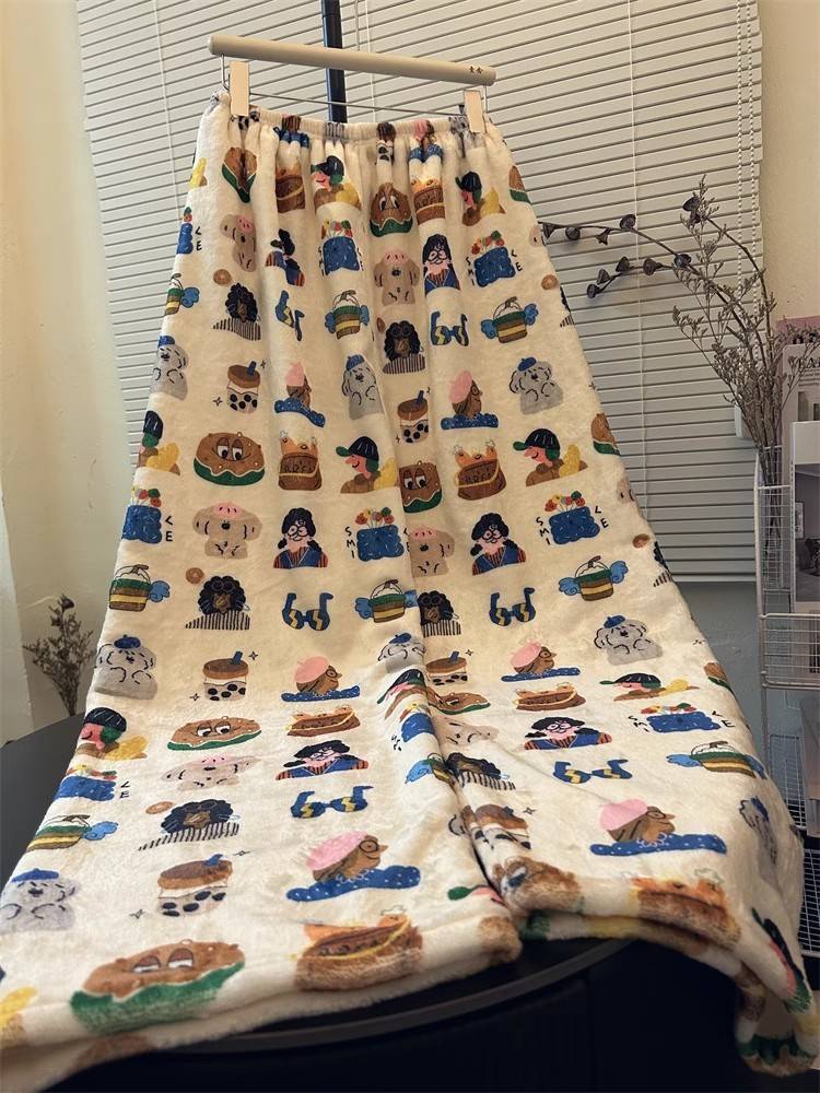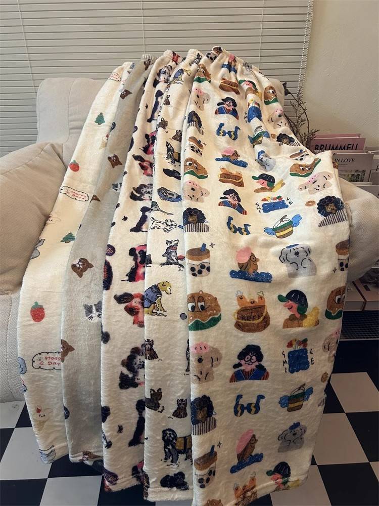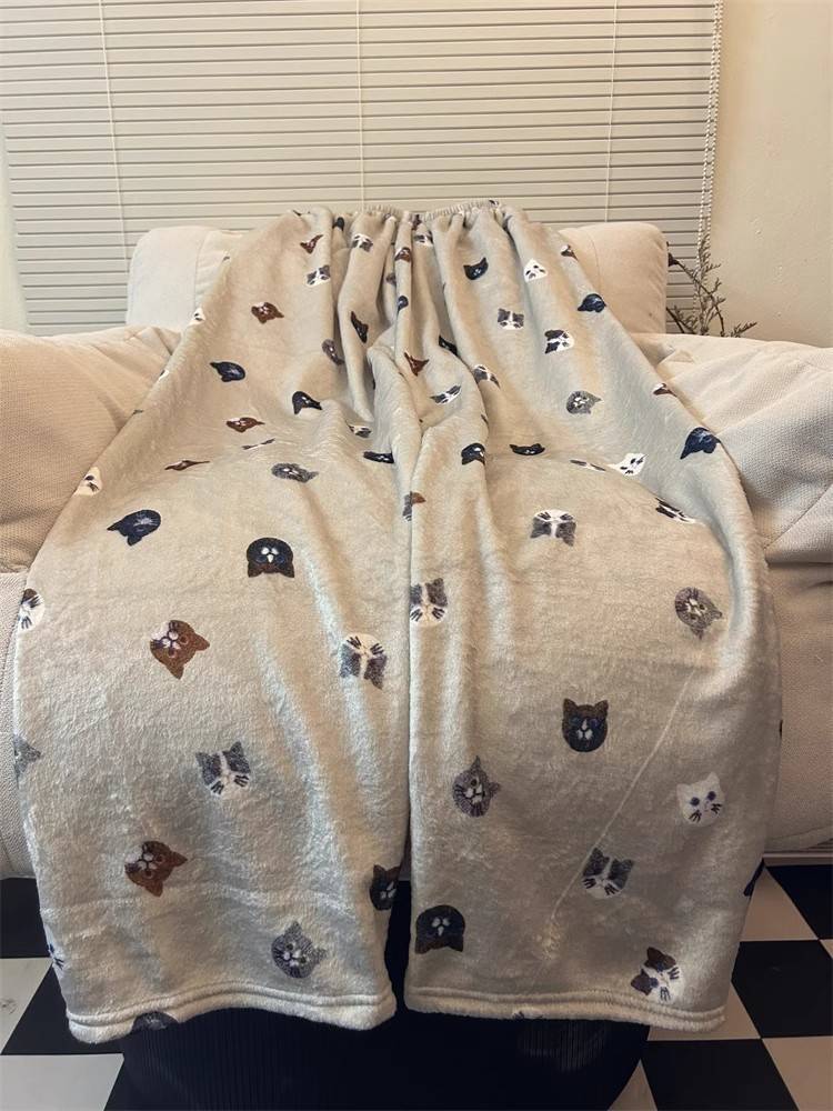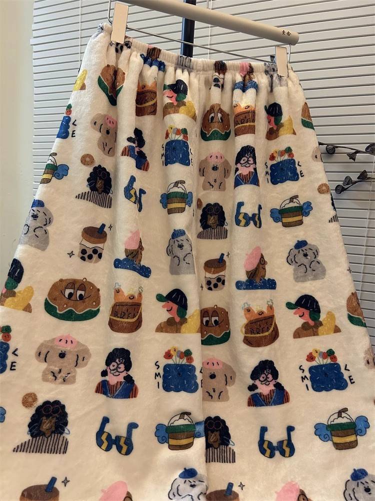 키가 큰 줄 파자마 바지 만화 두꺼운 플란넬 스트레이트 와이드 레그 인 겨울 바지 귀여운 강아지 바지스토어 가기