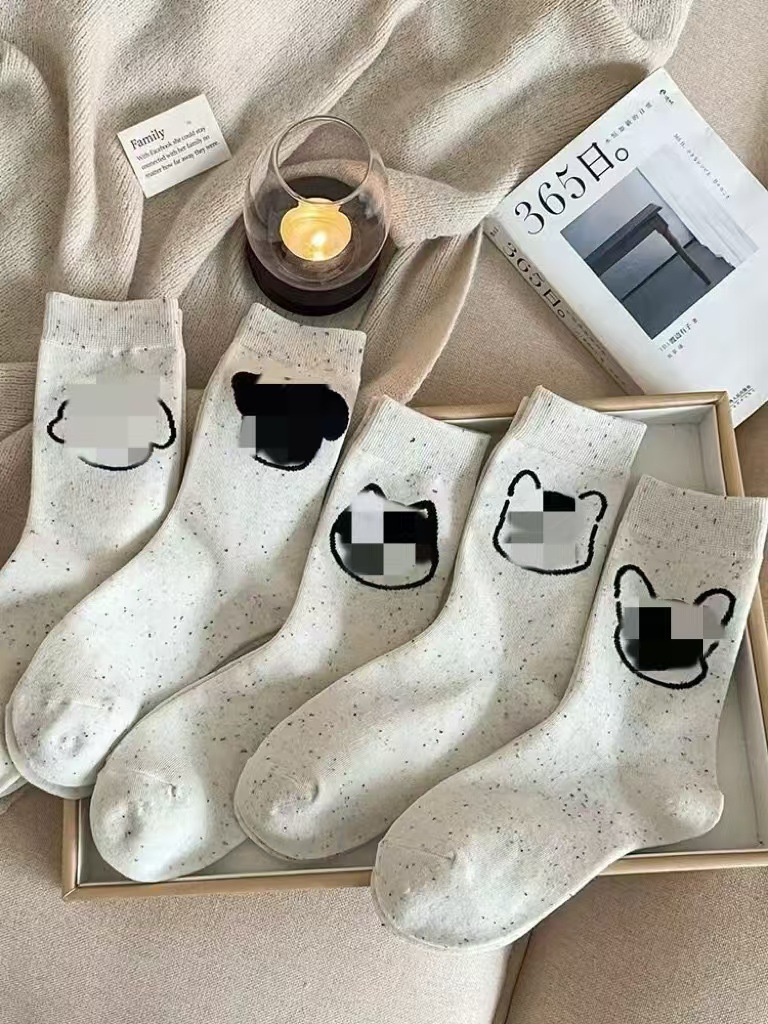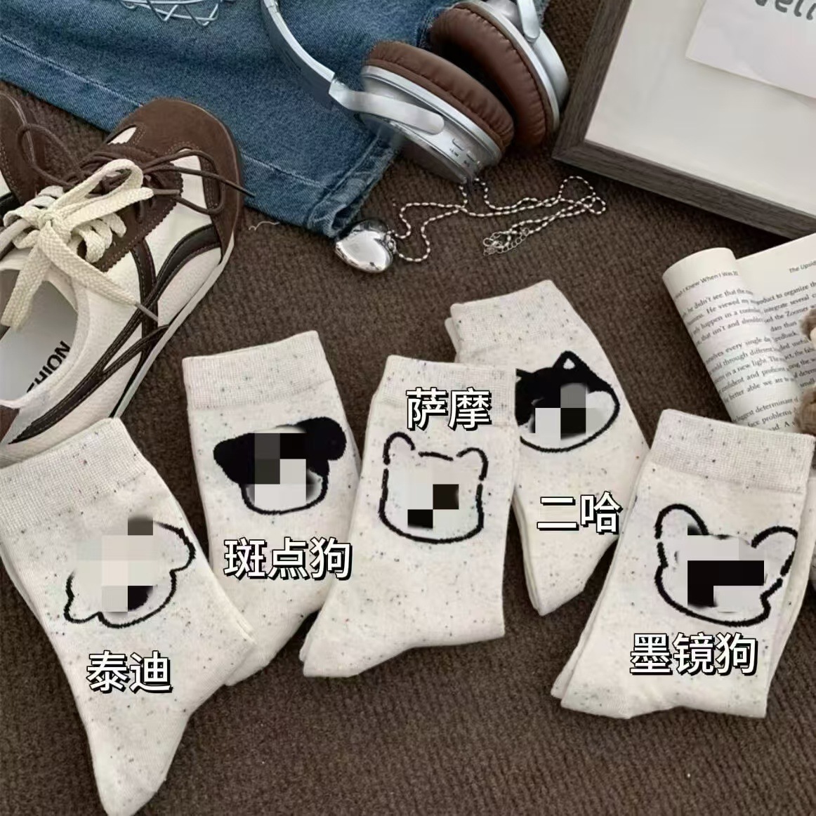 Ins 트렌디 한 강아지 양말 포인트 원사 여성용 중간 길이 양말 귀여운 일본 스타일 봄과 가을 다양한 학생 스포츠 스타킹